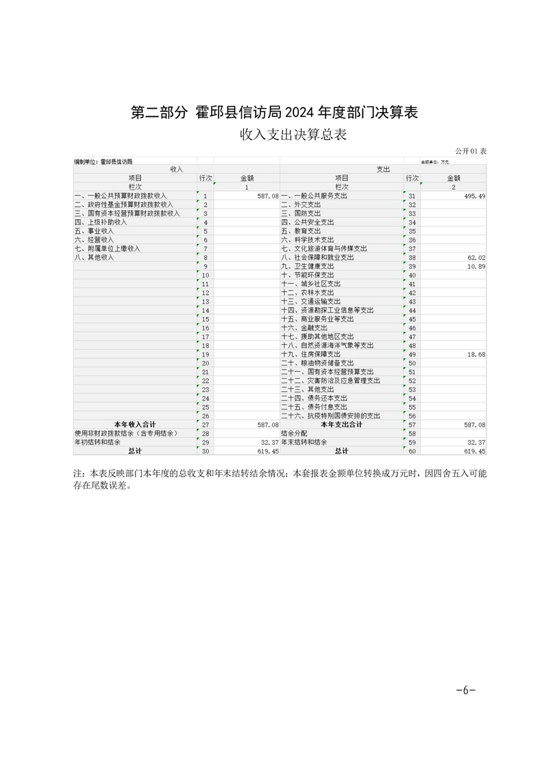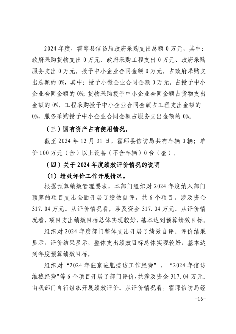 霍邱县信访局2024年决算公开