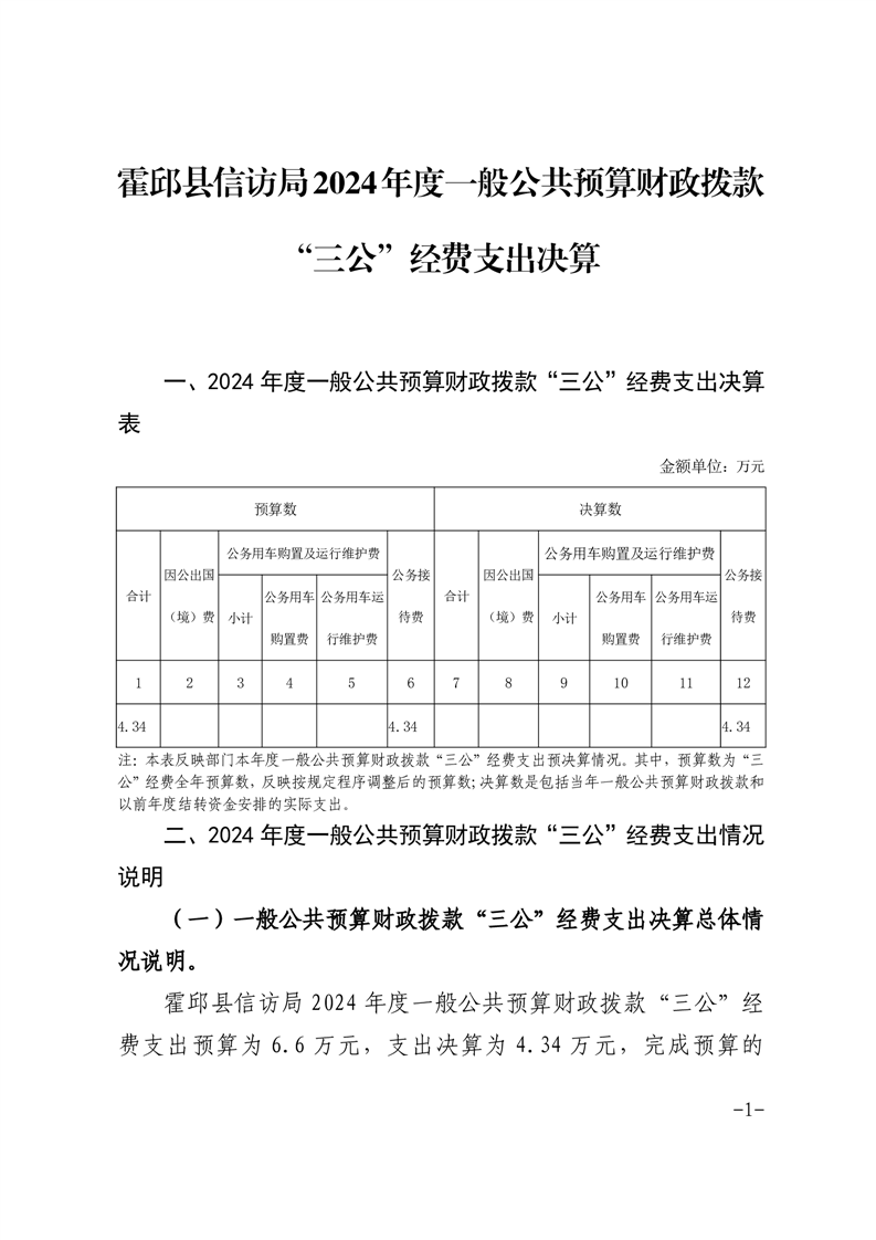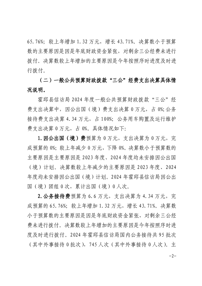 霍邱县信访局2024年度一般公共预算财政拨款“三公”经费支出决算
