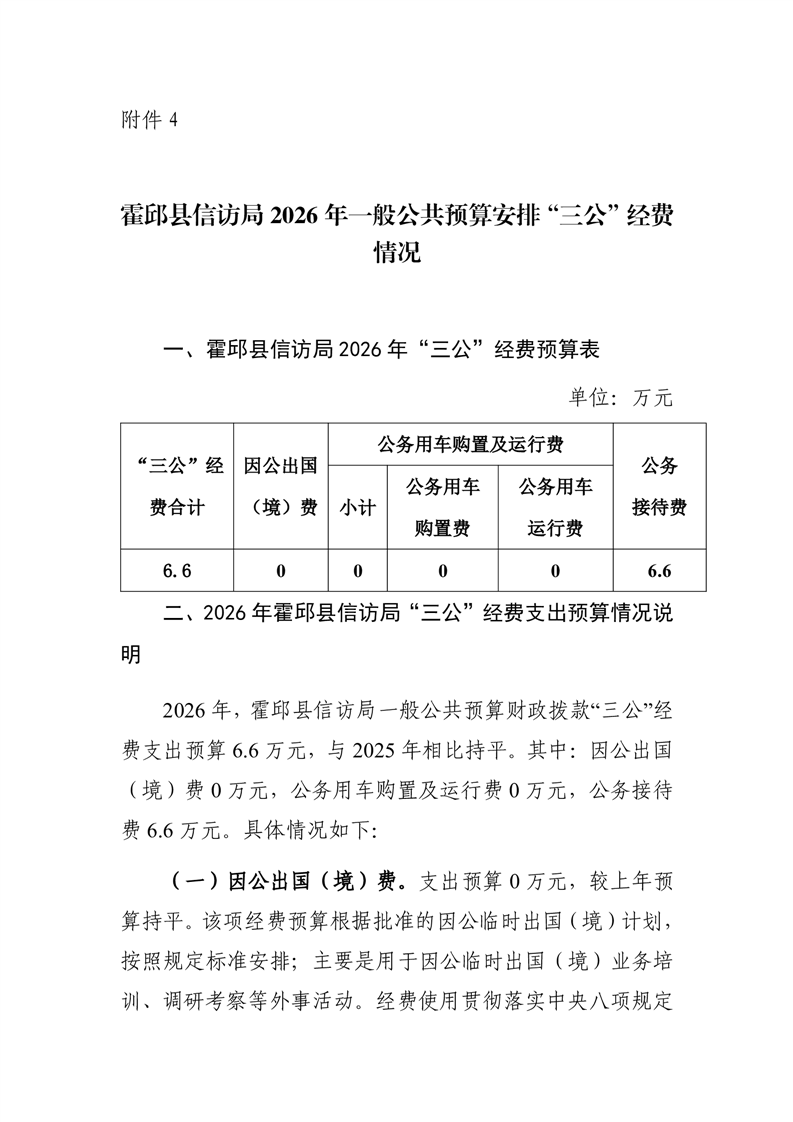 霍邱县信访局2026年一般公共预算安排“三公”经费情况公开