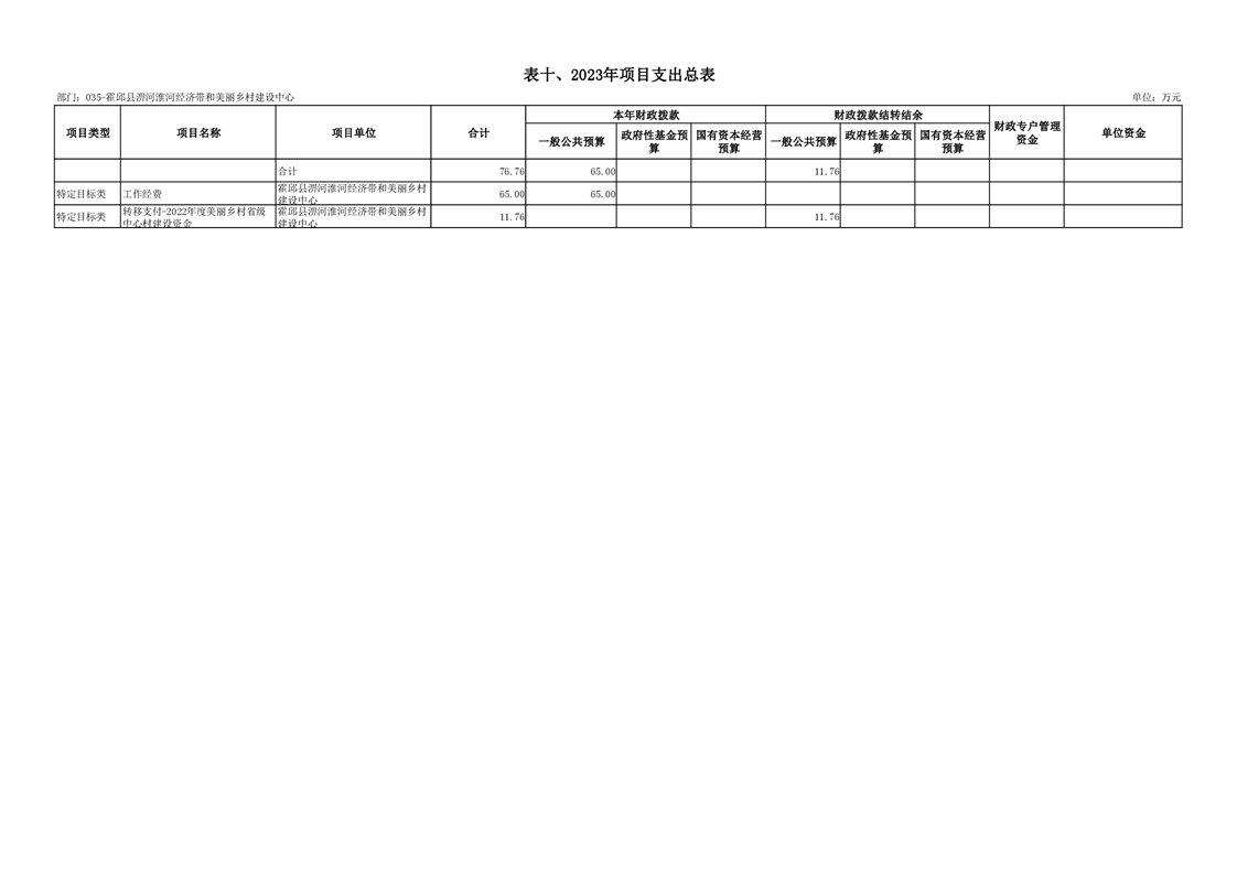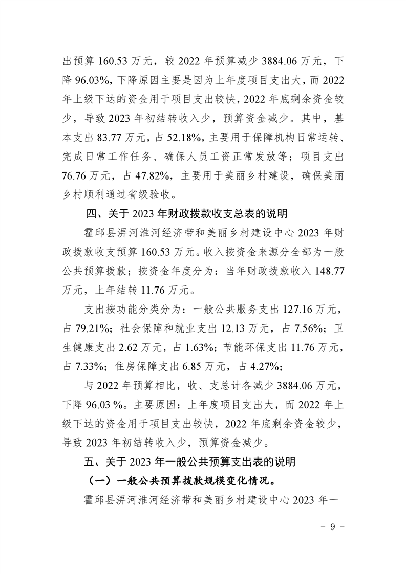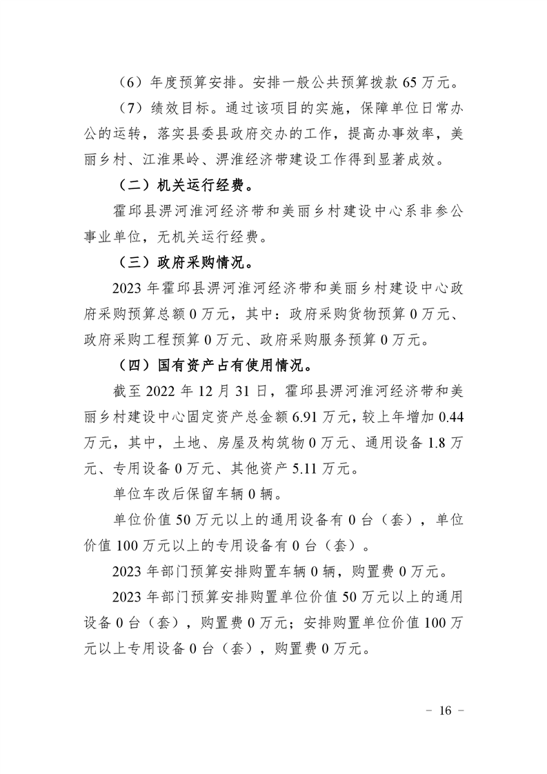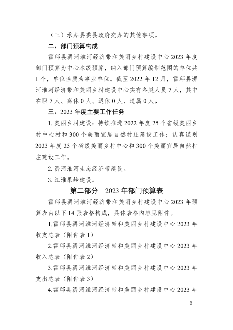 霍邱县淠河淮河经济带和美丽乡村建设中心2023年部门预算公开