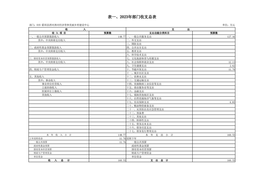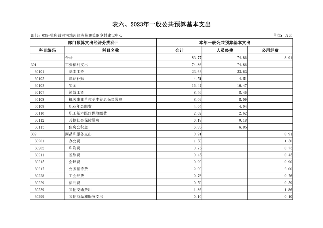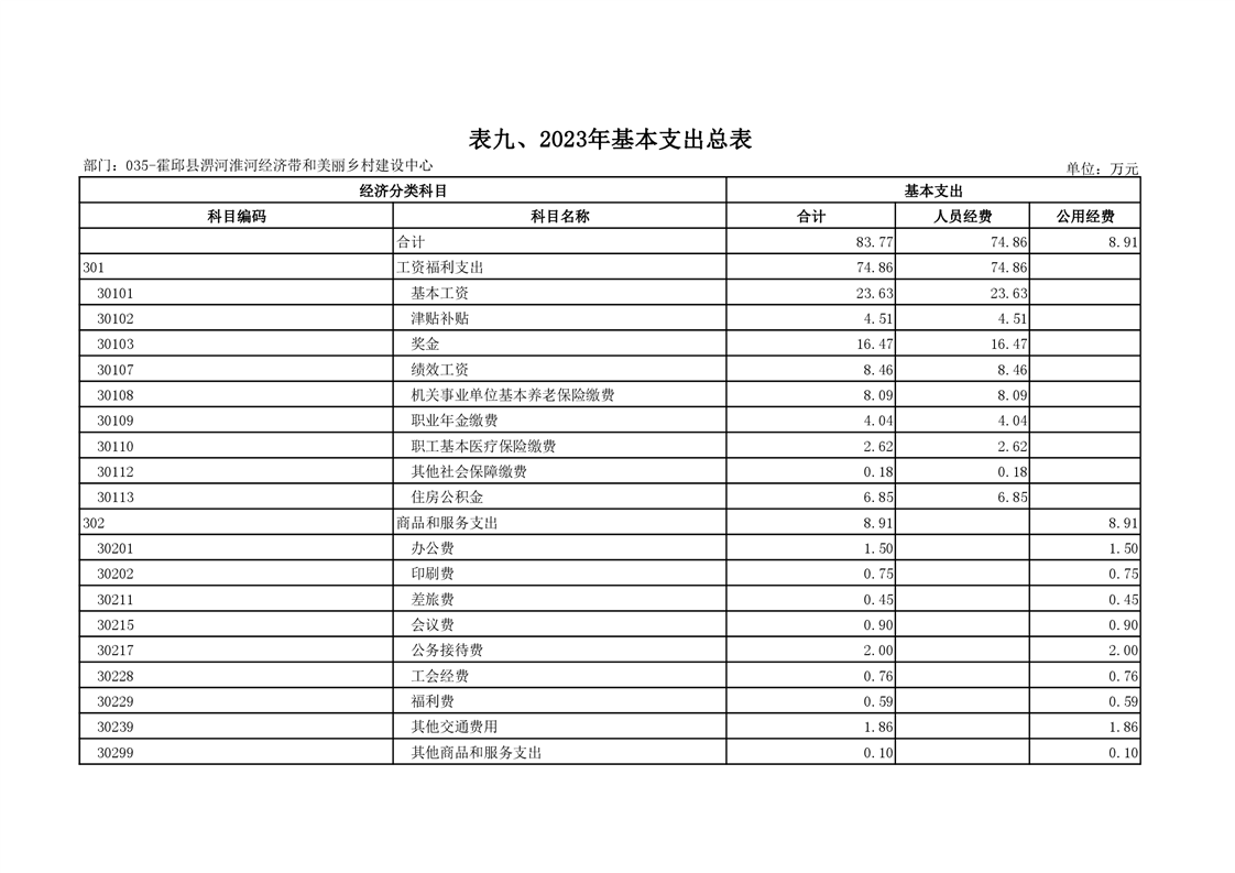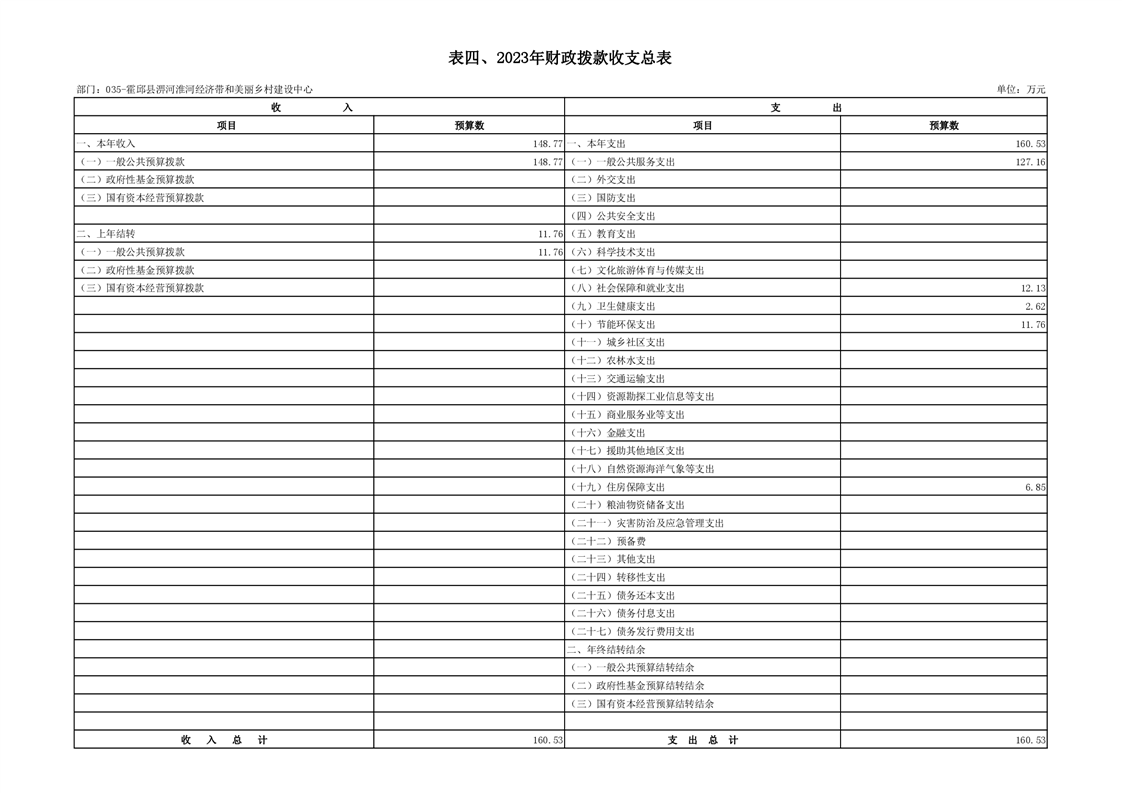 霍邱县淠河淮河经济带和美丽乡村建设中心2023年部门预算公开