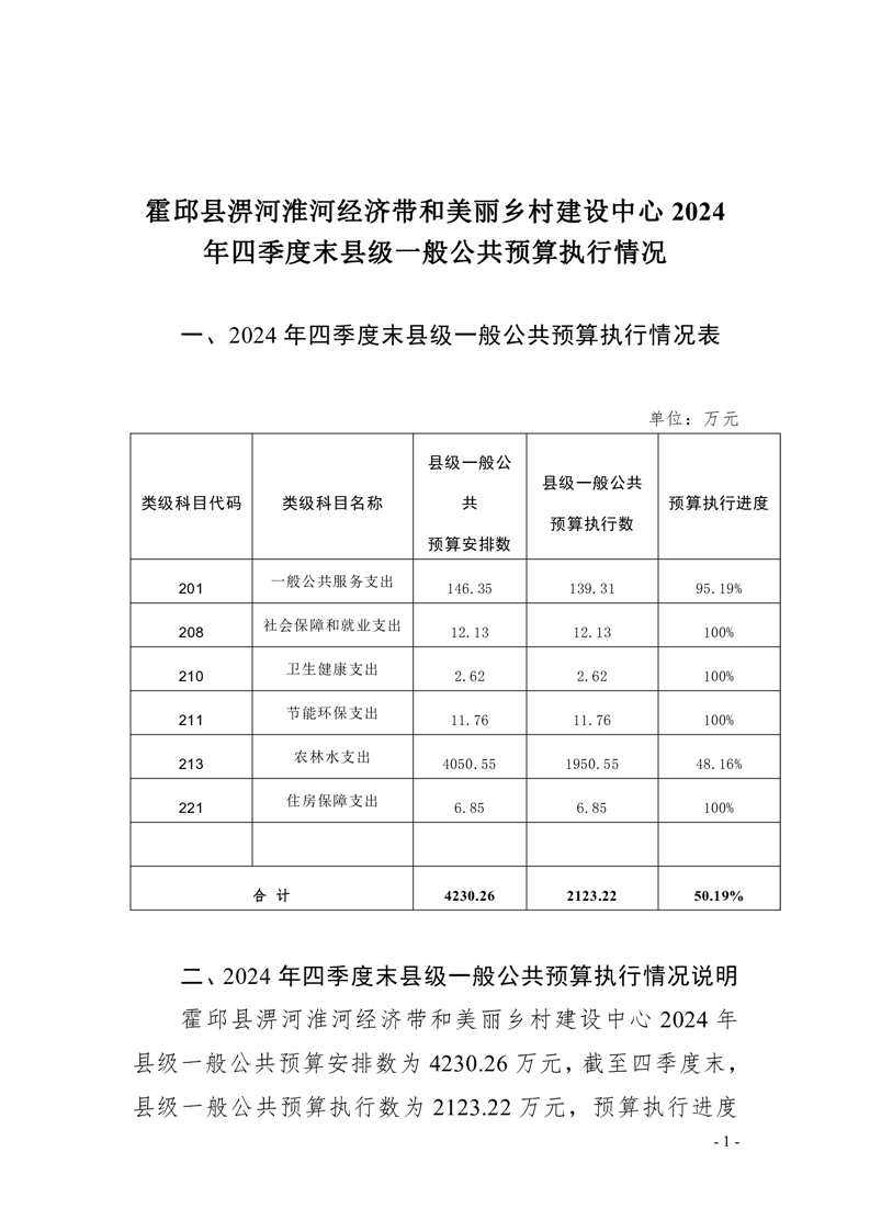 霍邱县淠河淮河经济带和美丽乡村建设中心2023年四季度县级一般公共预算执行情况公开