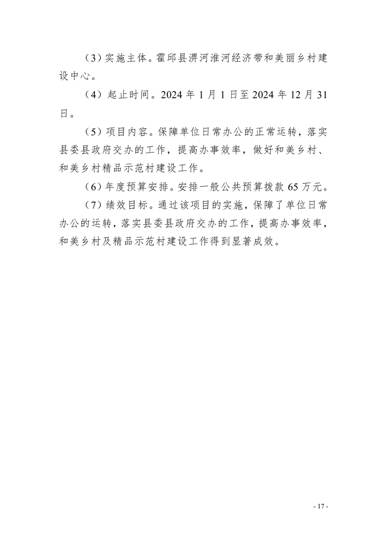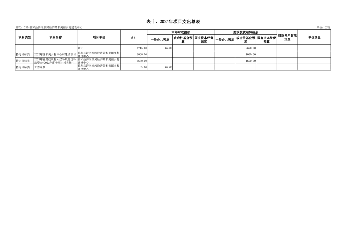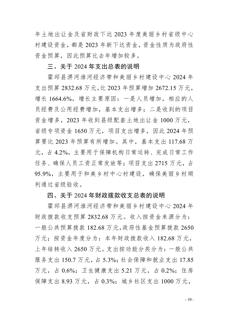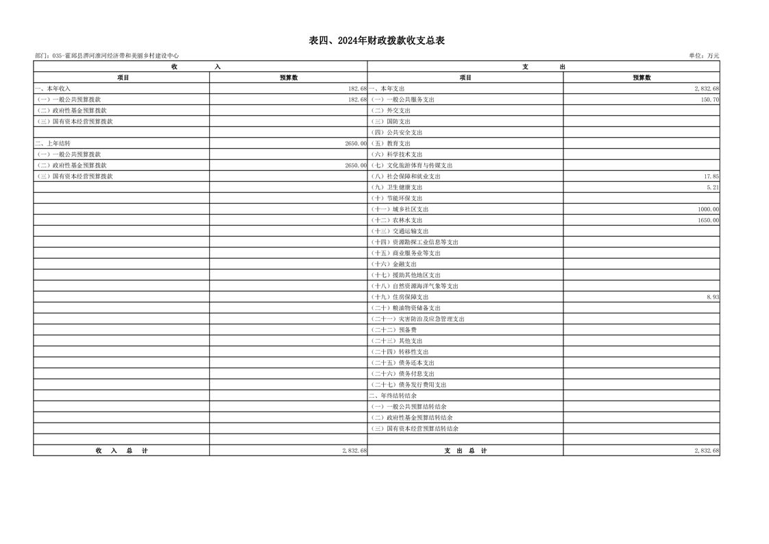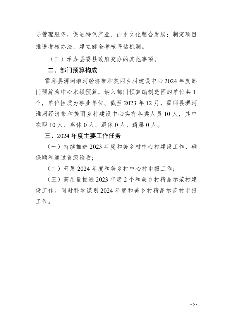 霍邱县淠河淮河经济带和美丽乡村建设中心2024年部门预算公开