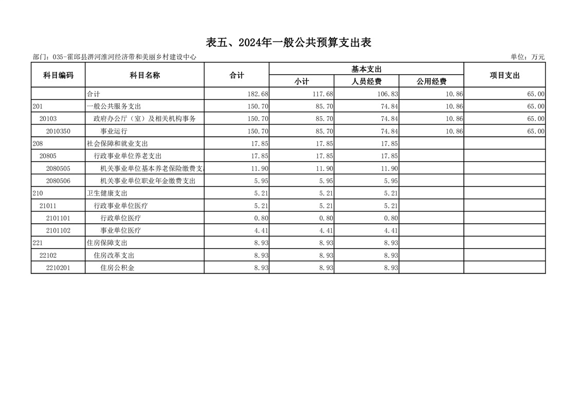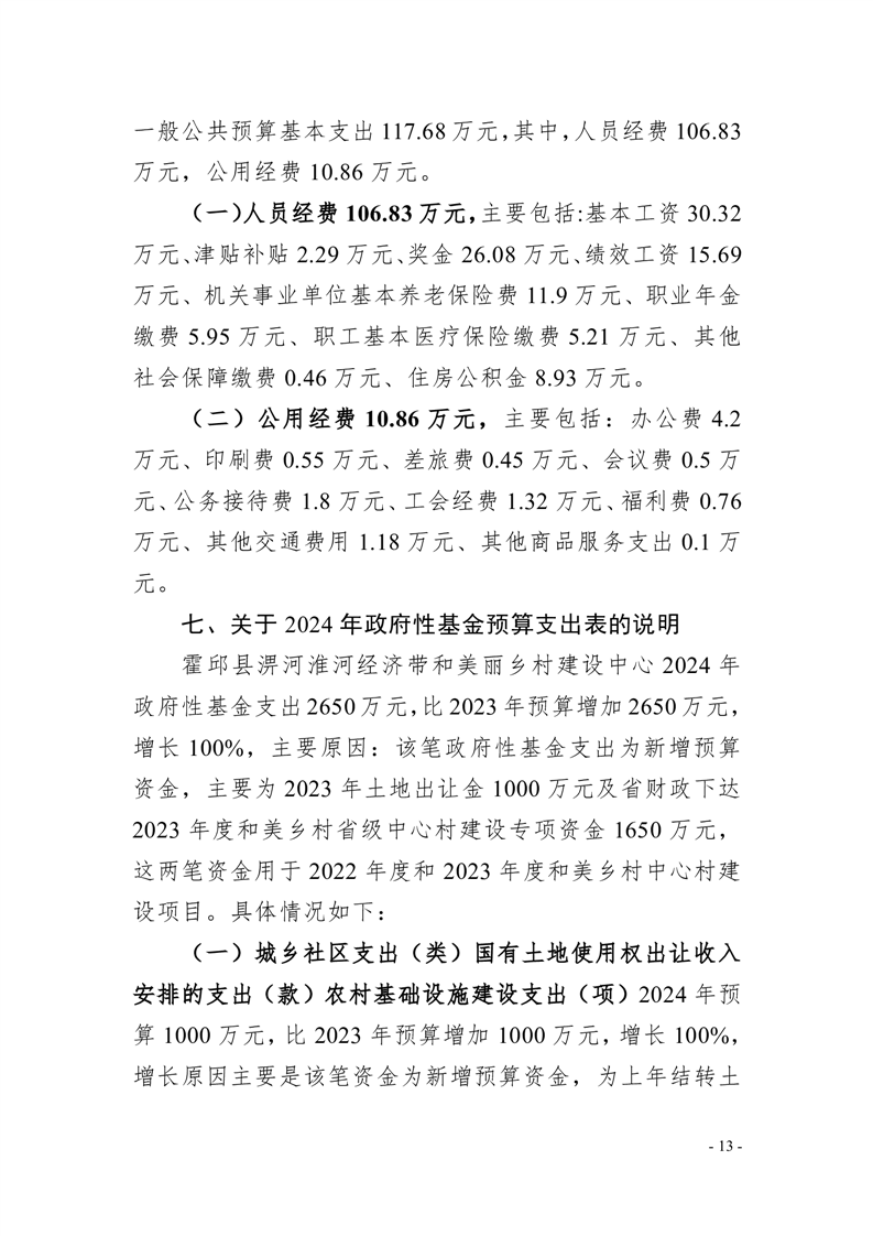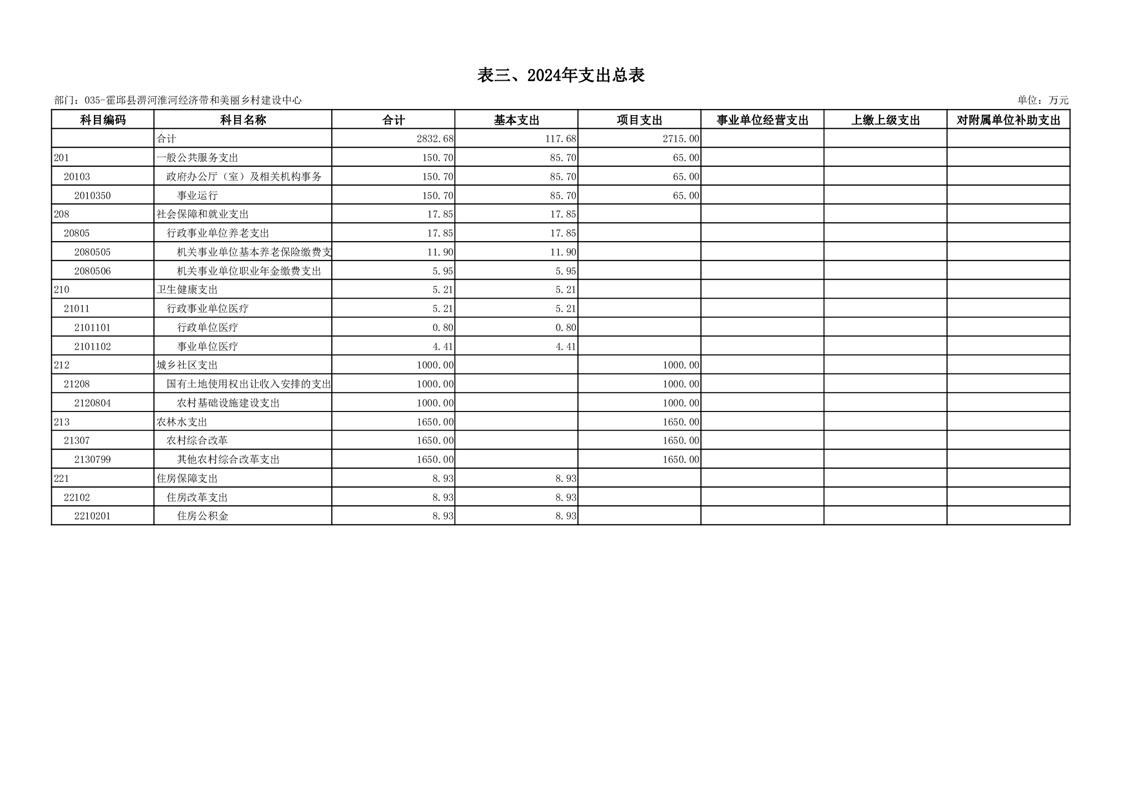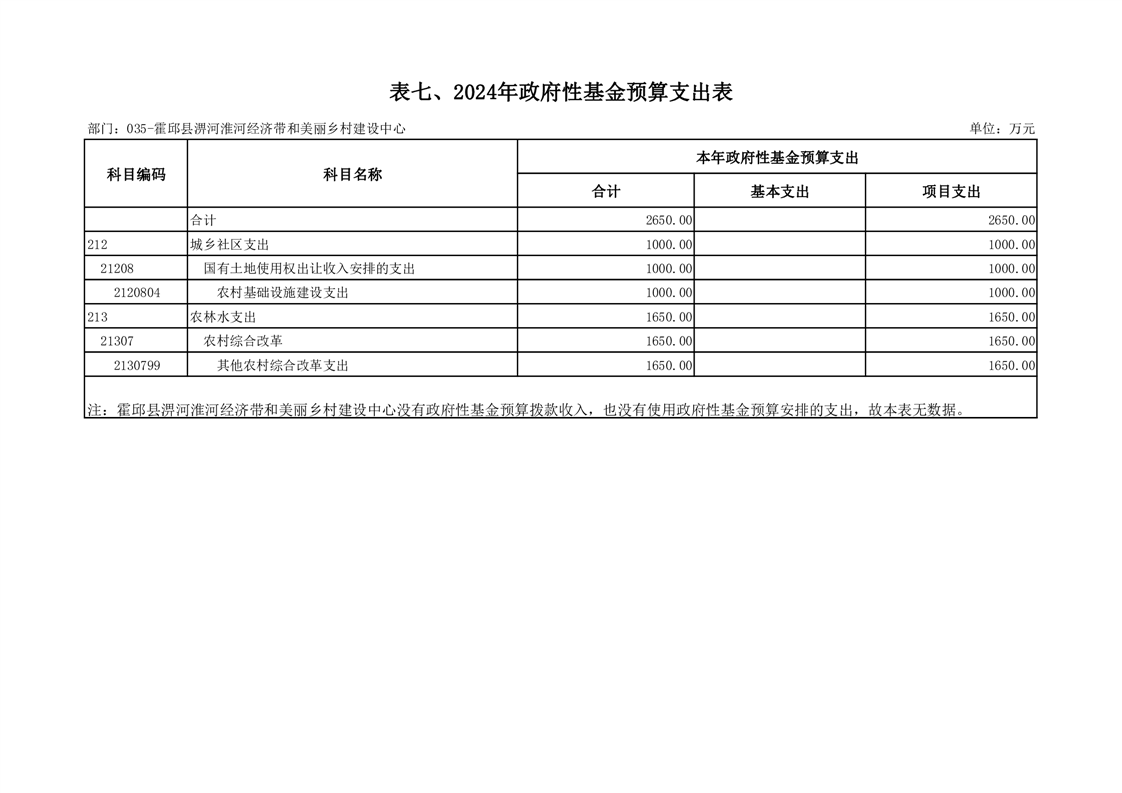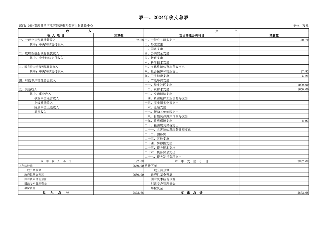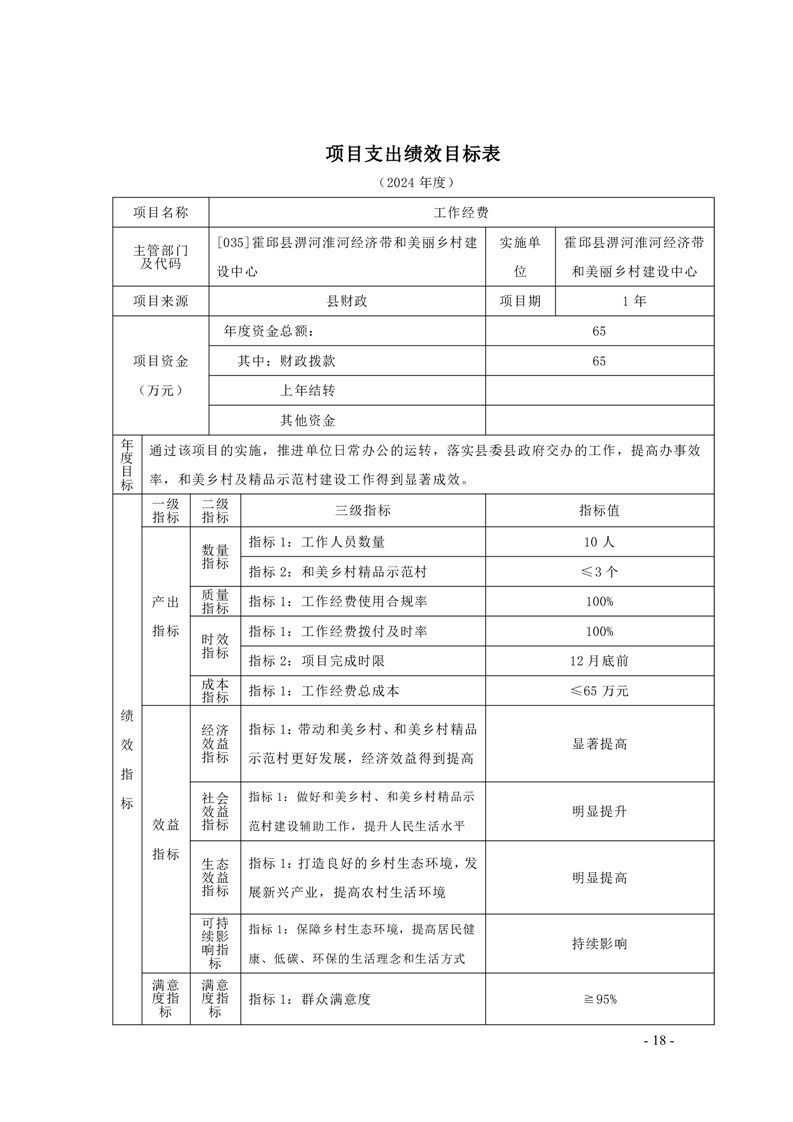 霍邱县淠河淮河经济带和美丽乡村建设中心2024年部门预算公开