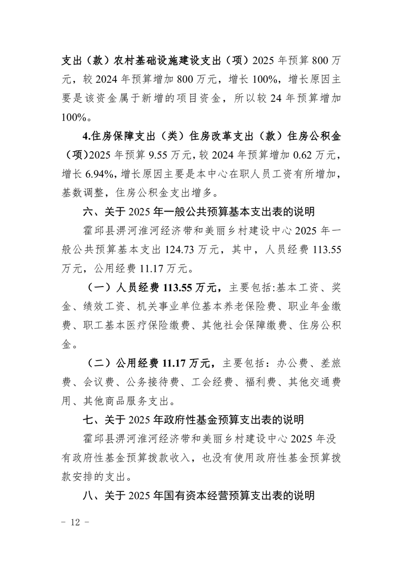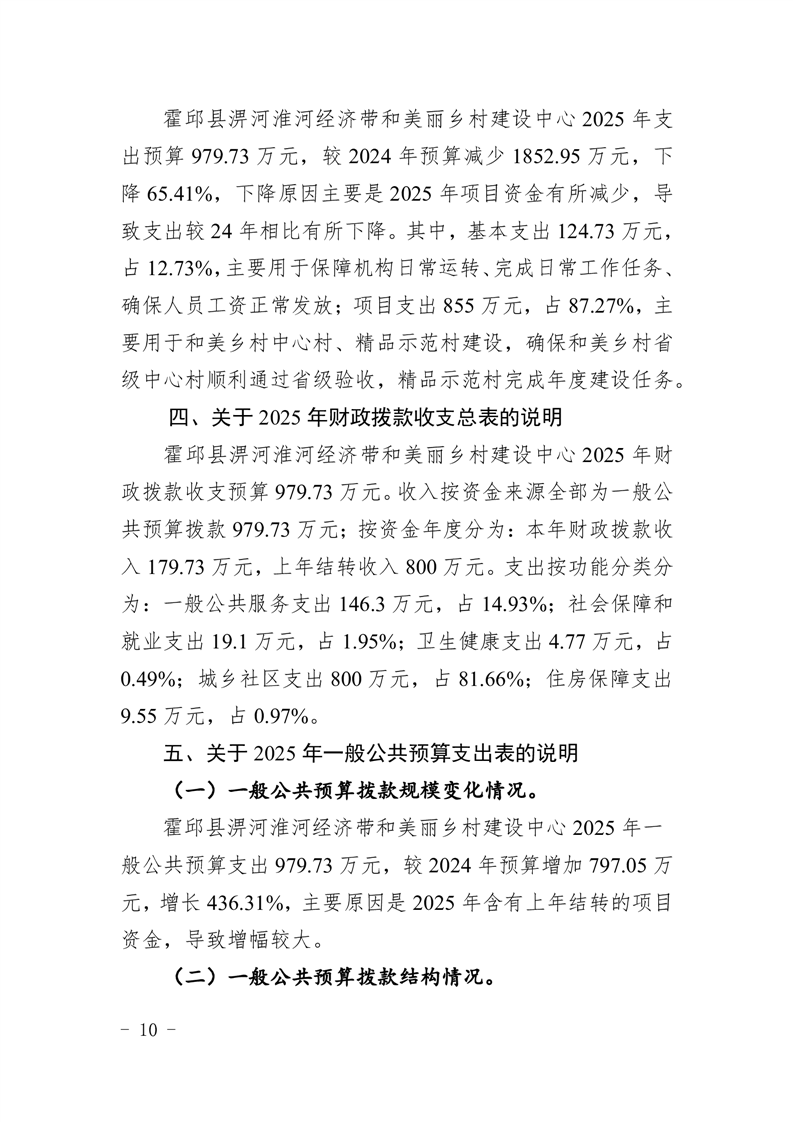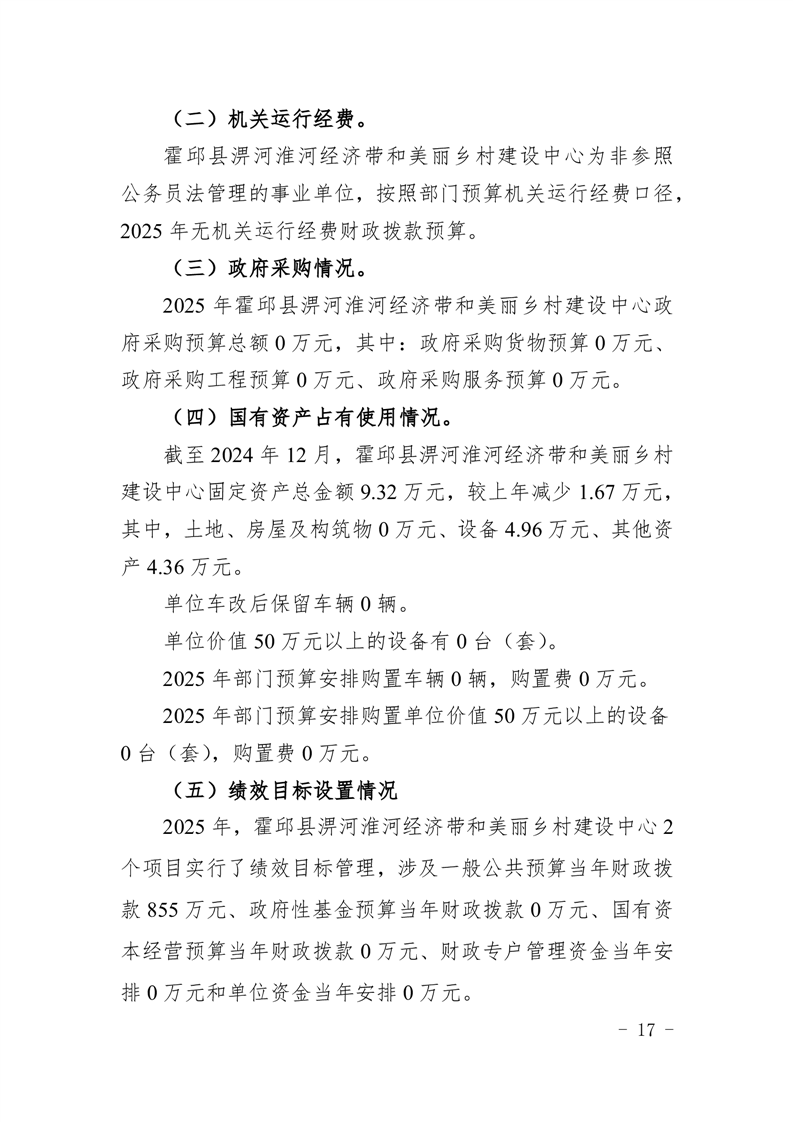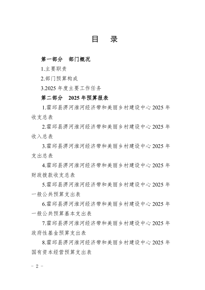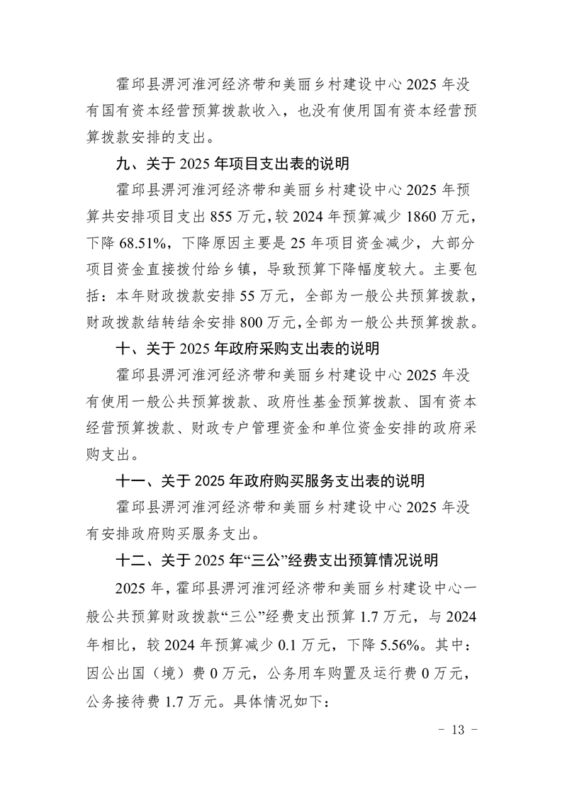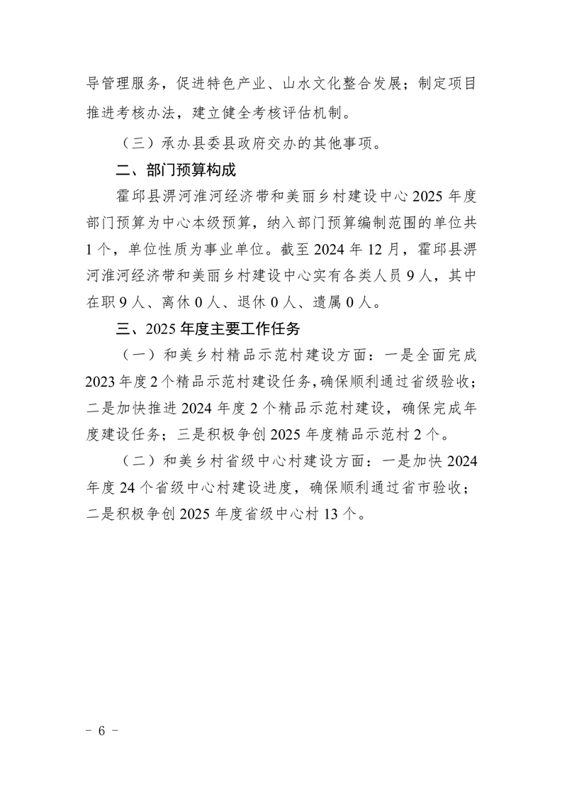 霍邱县淠河淮河经济带和美丽乡村建设中心2025年部门预算公开