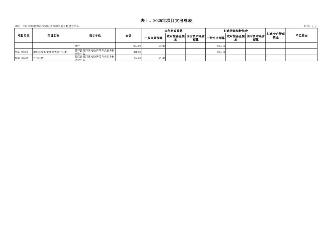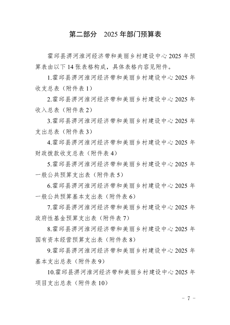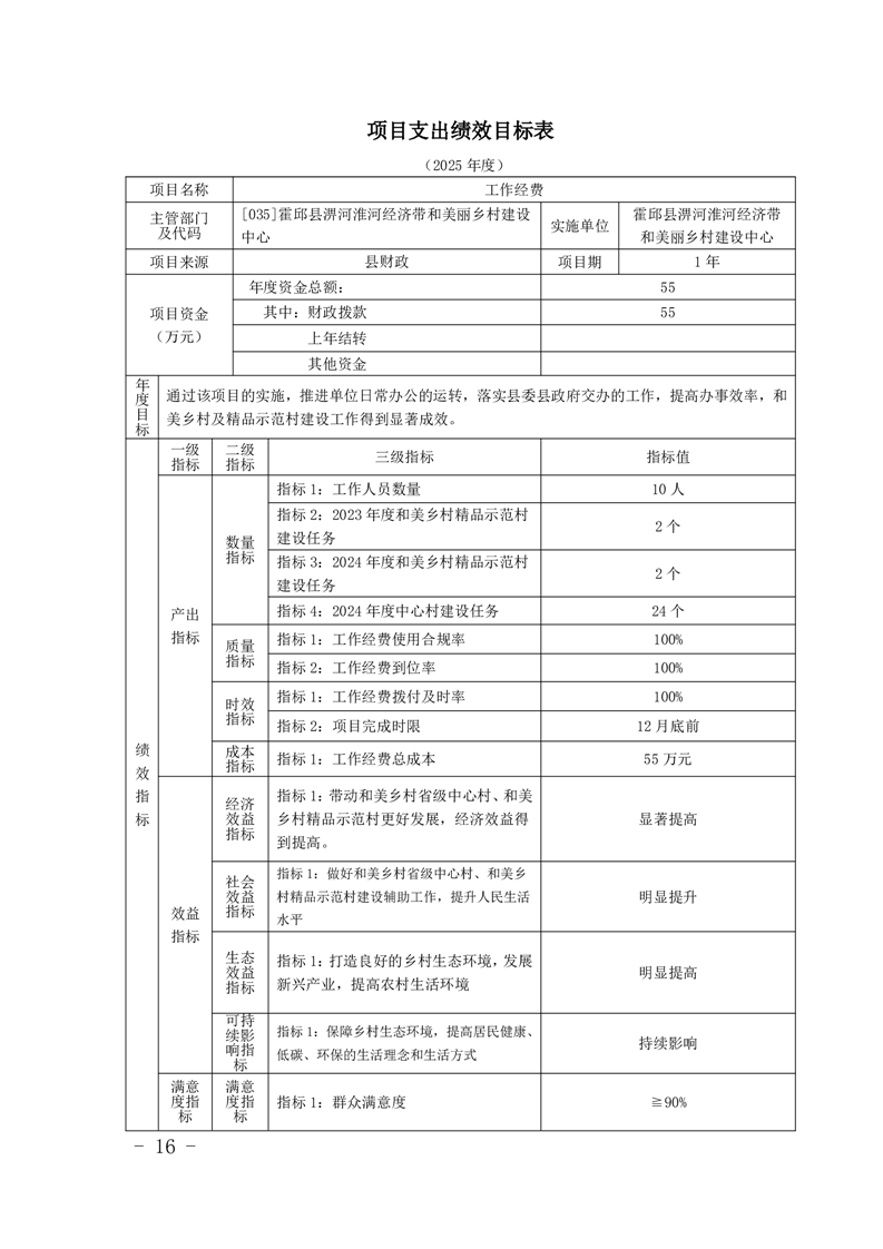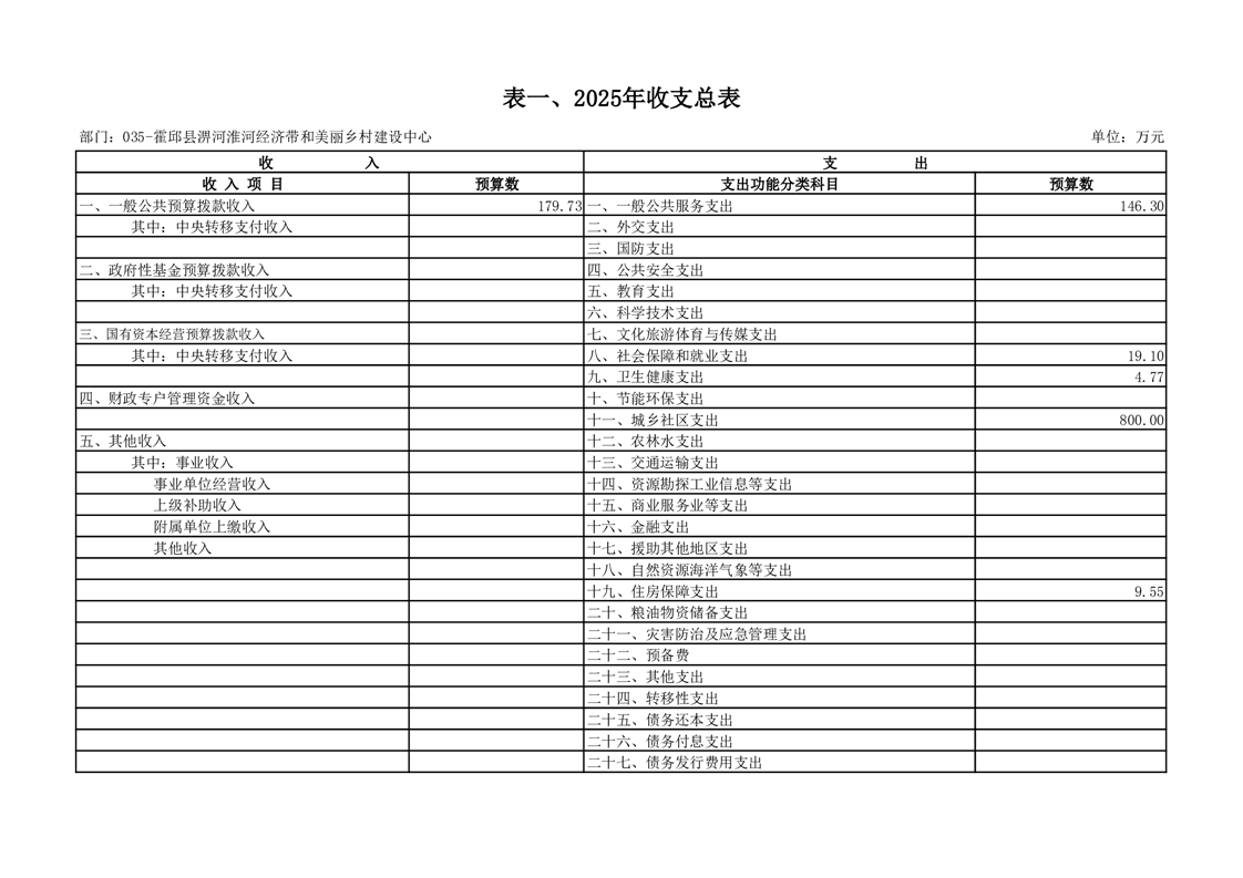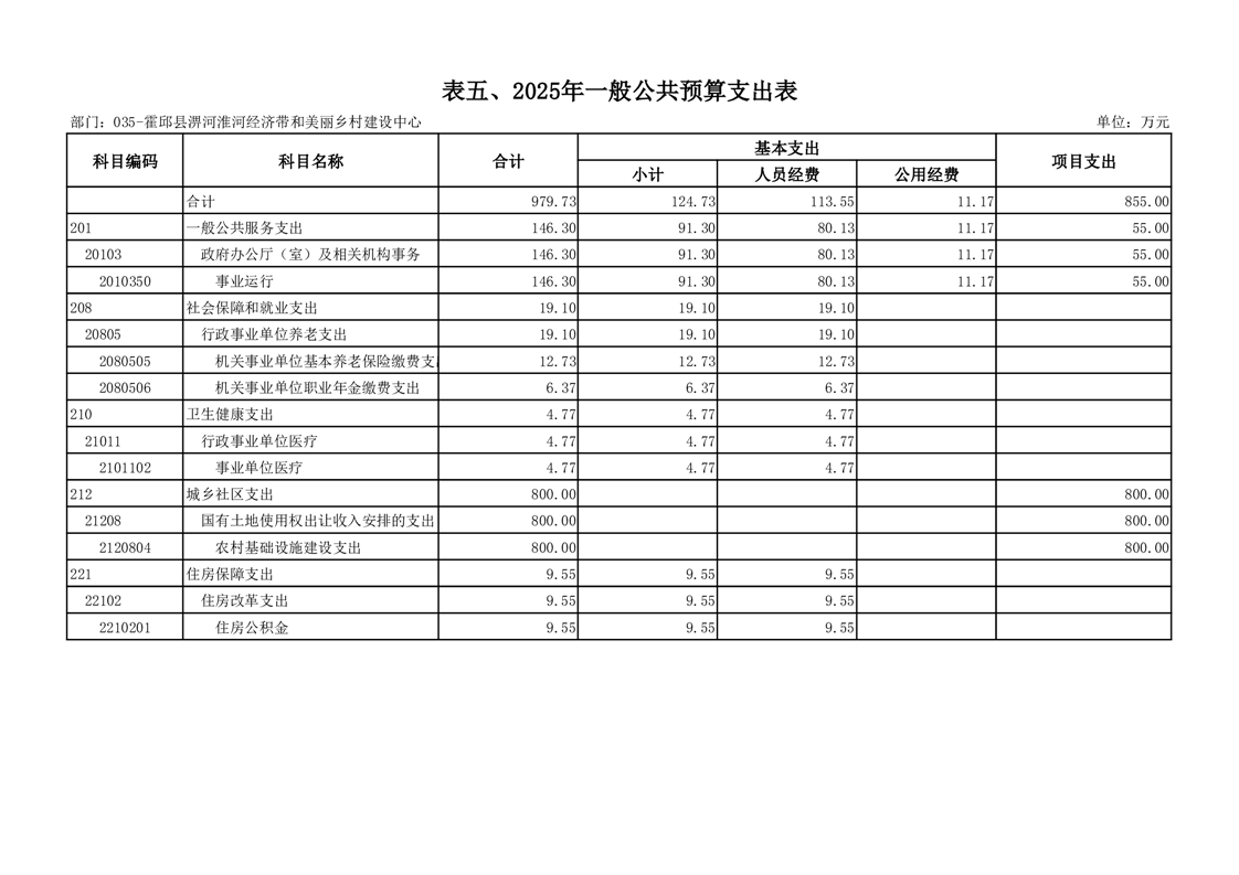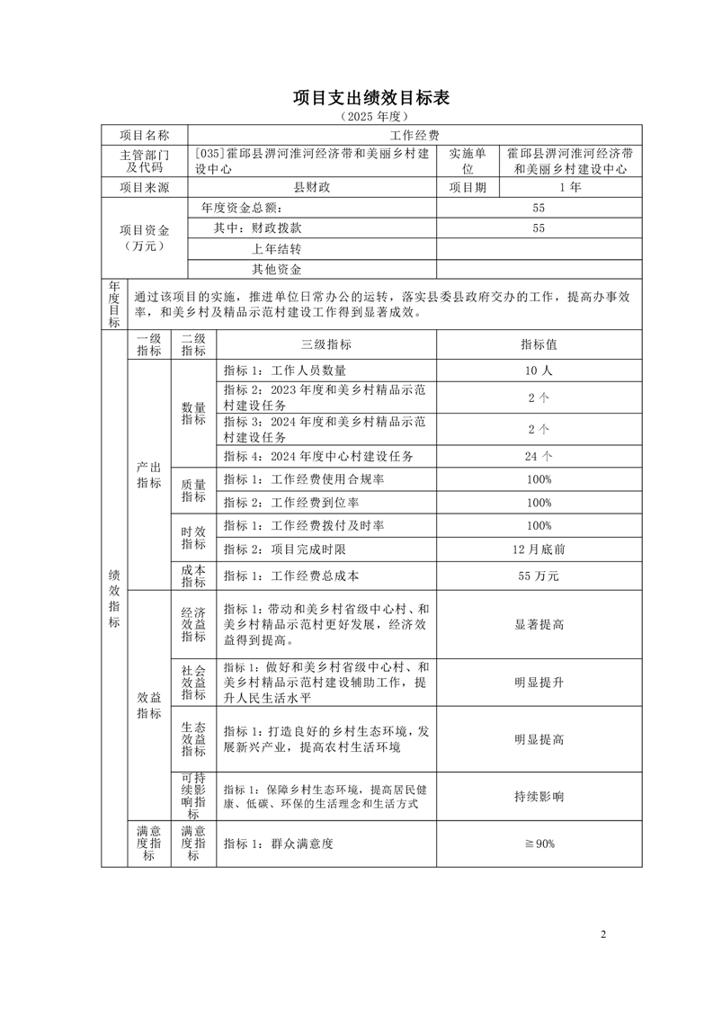 霍邱县淠河淮河经济带和美丽乡村建设中心2025年部门预算公开