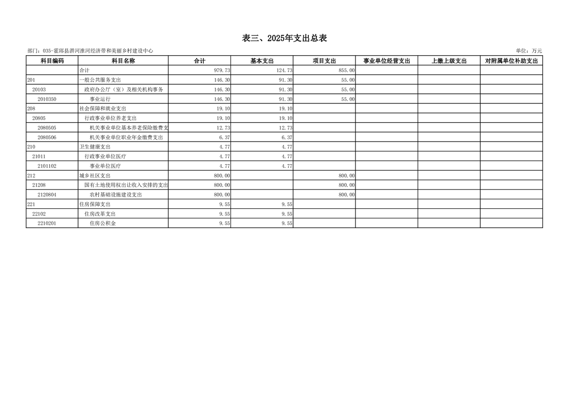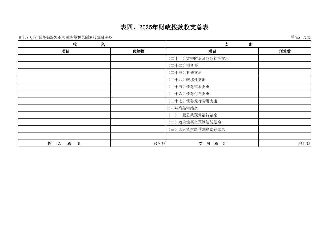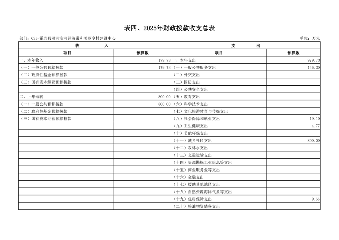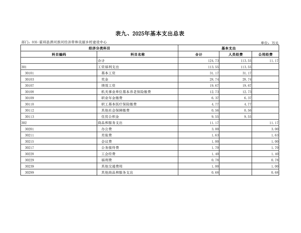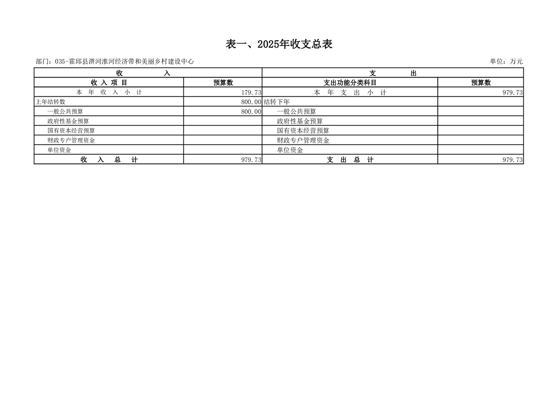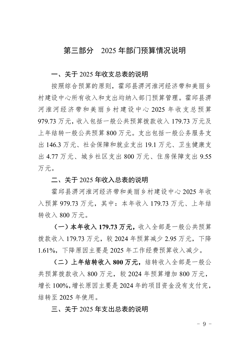 霍邱县淠河淮河经济带和美丽乡村建设中心2025年部门预算公开