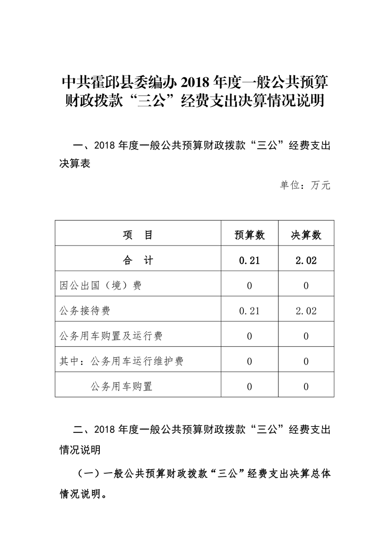 中共霍邱县委编办2018年度一般公共预算财政拨款“三公”经费支出决算情况说明