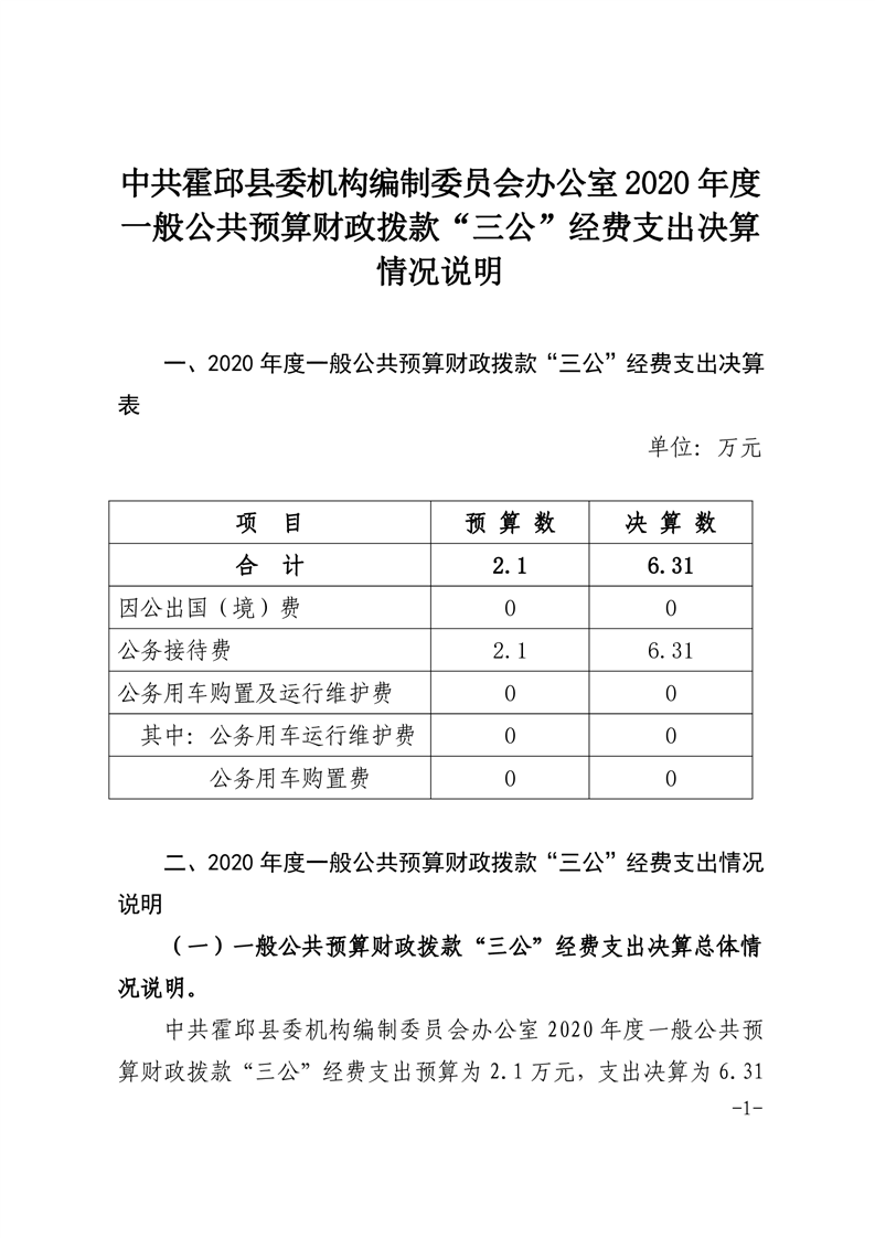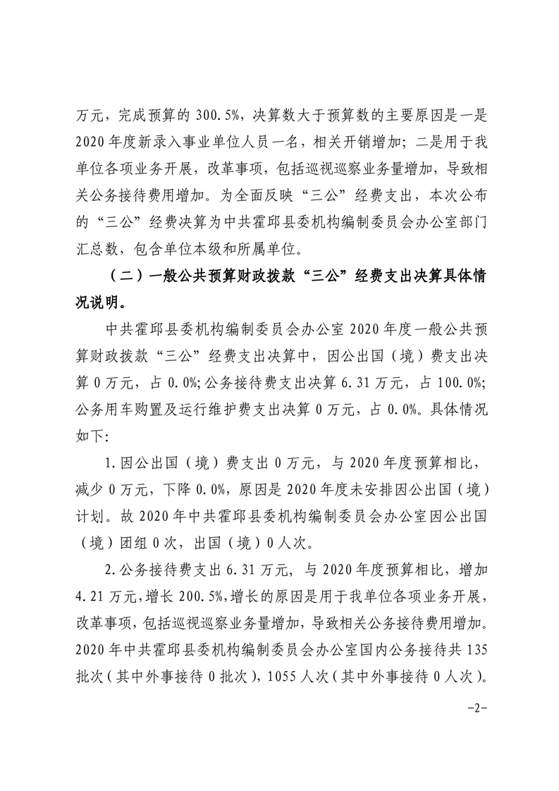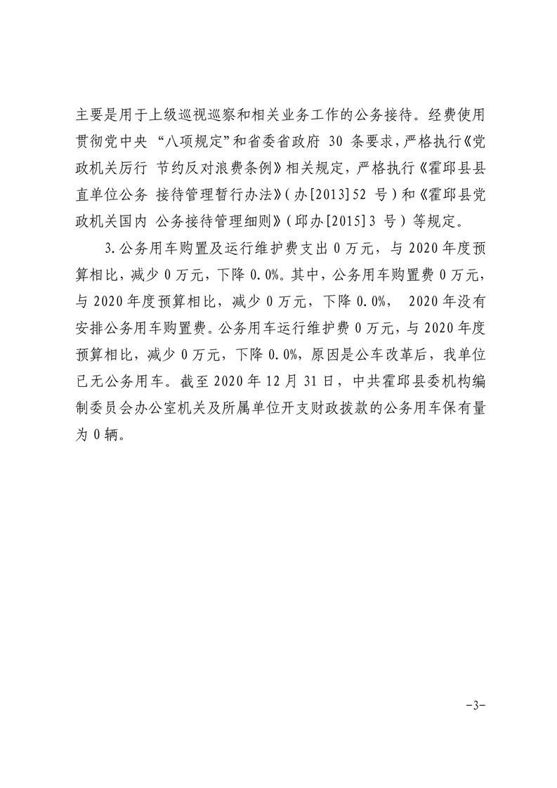 2020年度中共霍邱县委机构编制委员会办公室“三公”经费公开