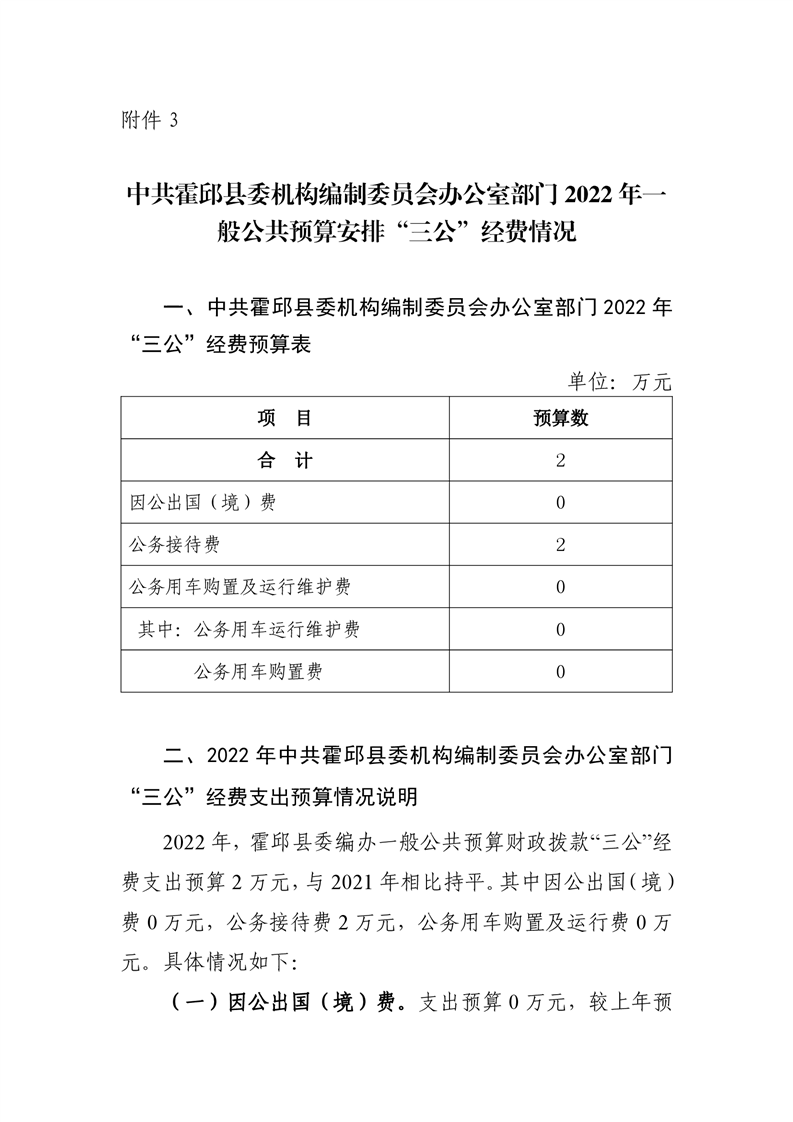 中共霍邱县委机构编制委员会办公室部门2022年一般公共预算安排“三公”经费情况