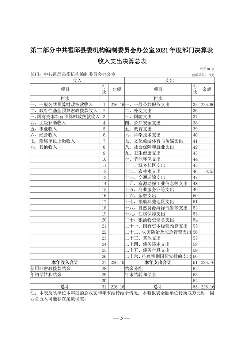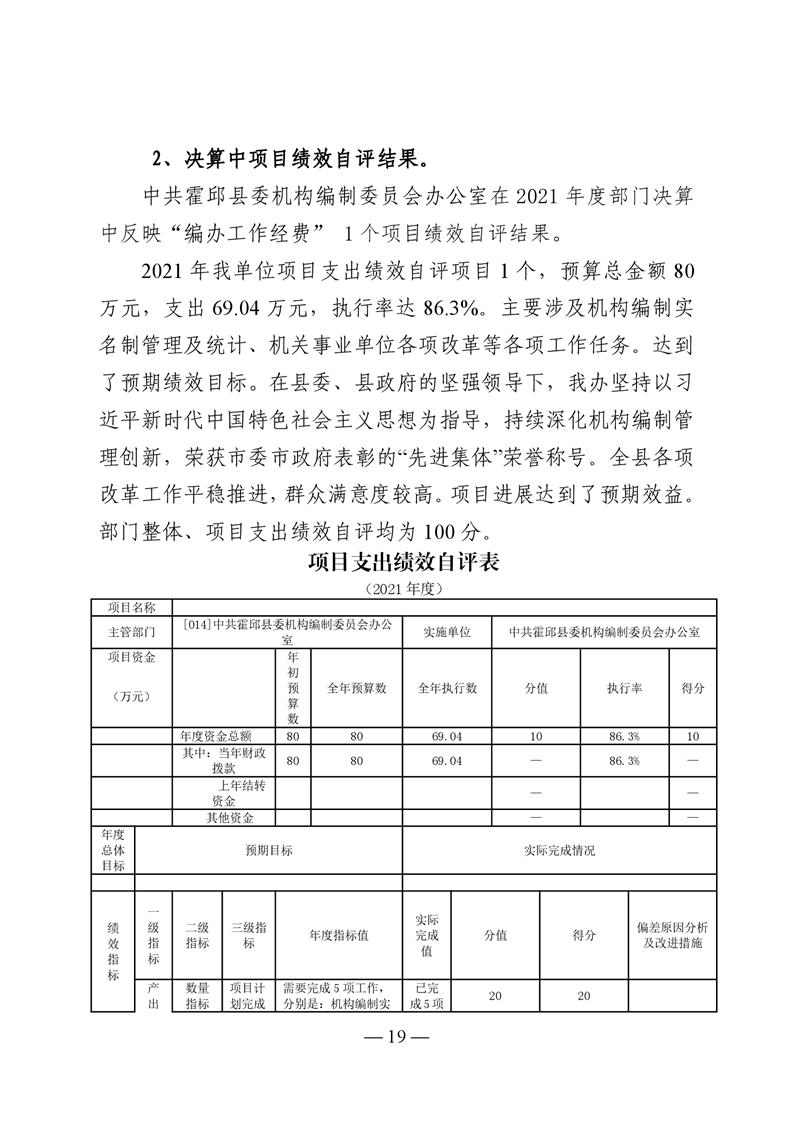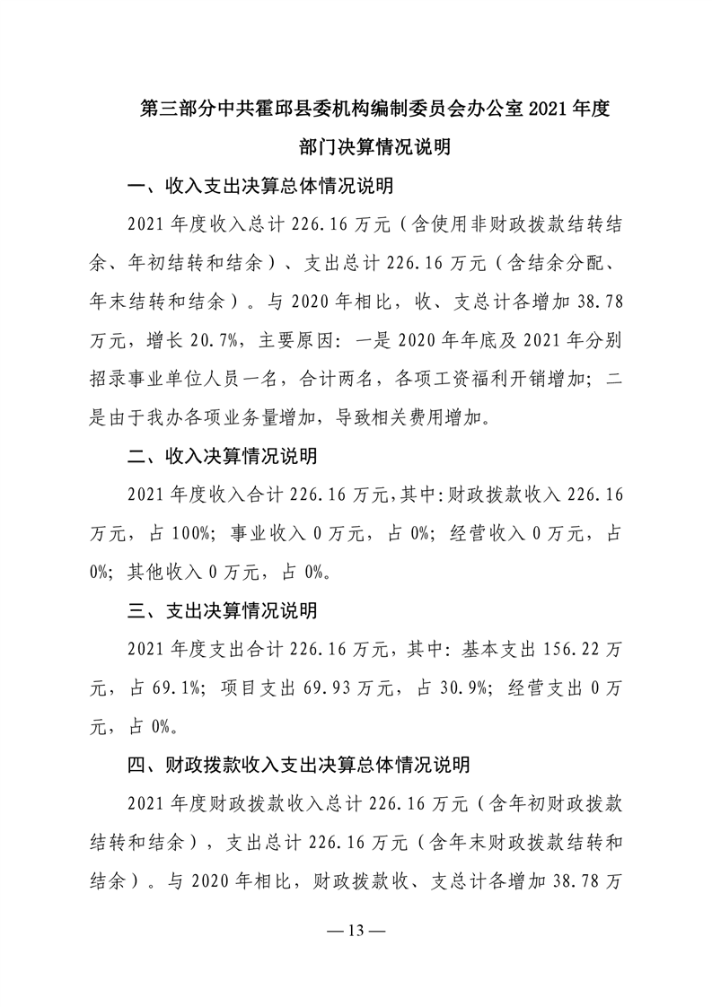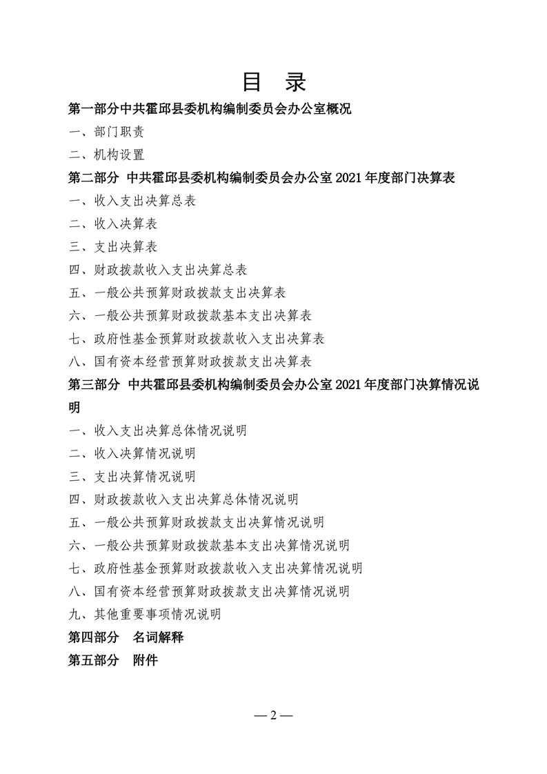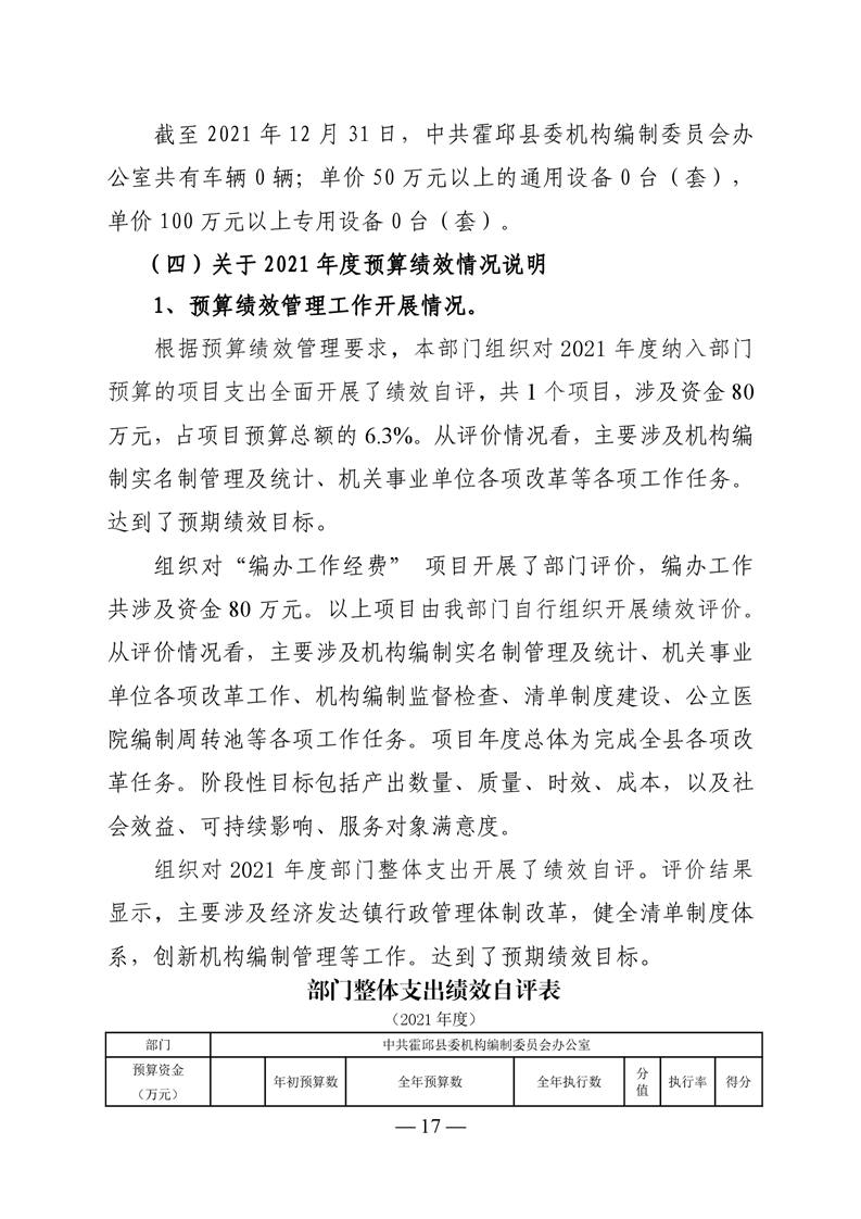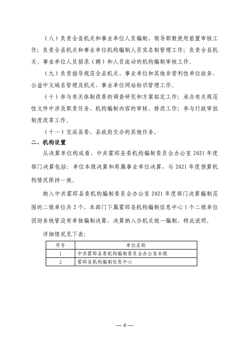 中共霍邱县委机构编制委员会办公室2021年度部门决算