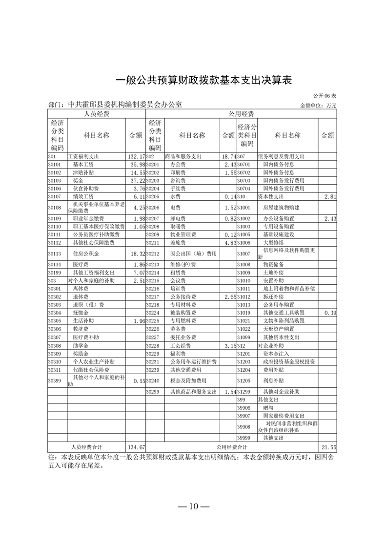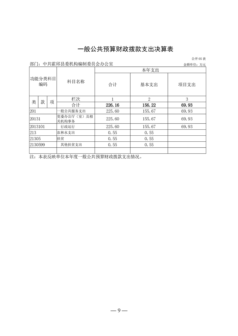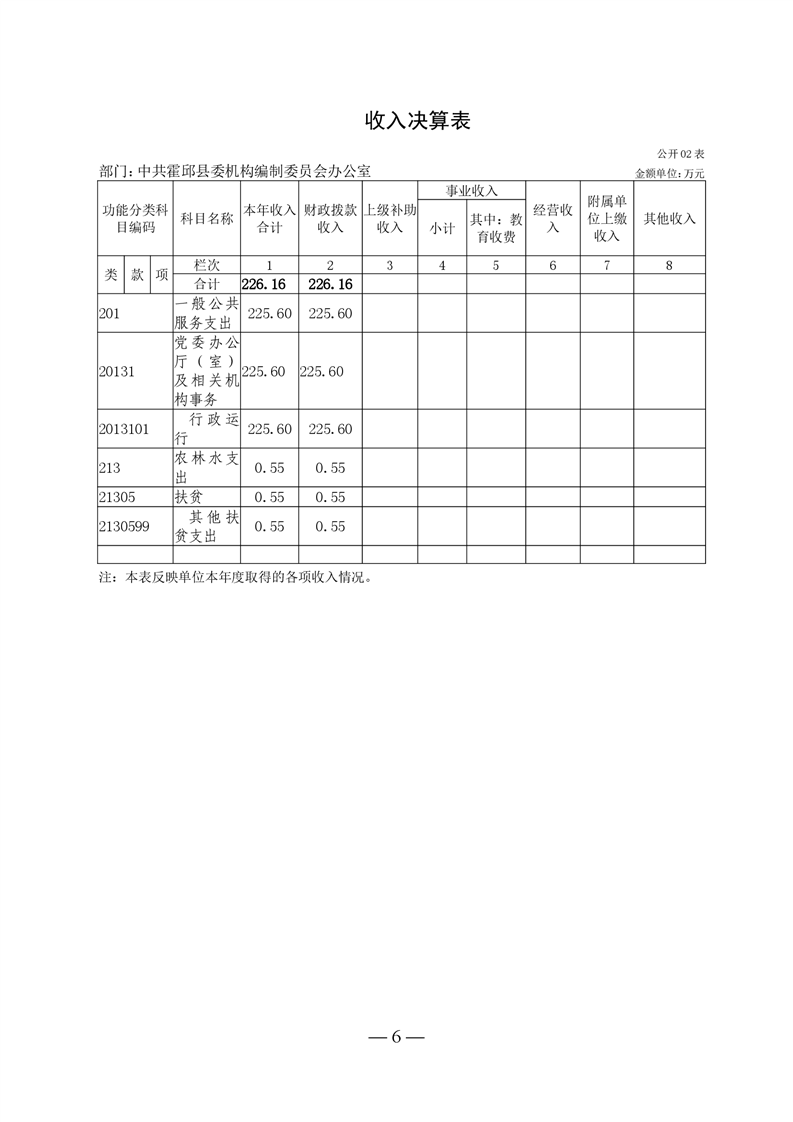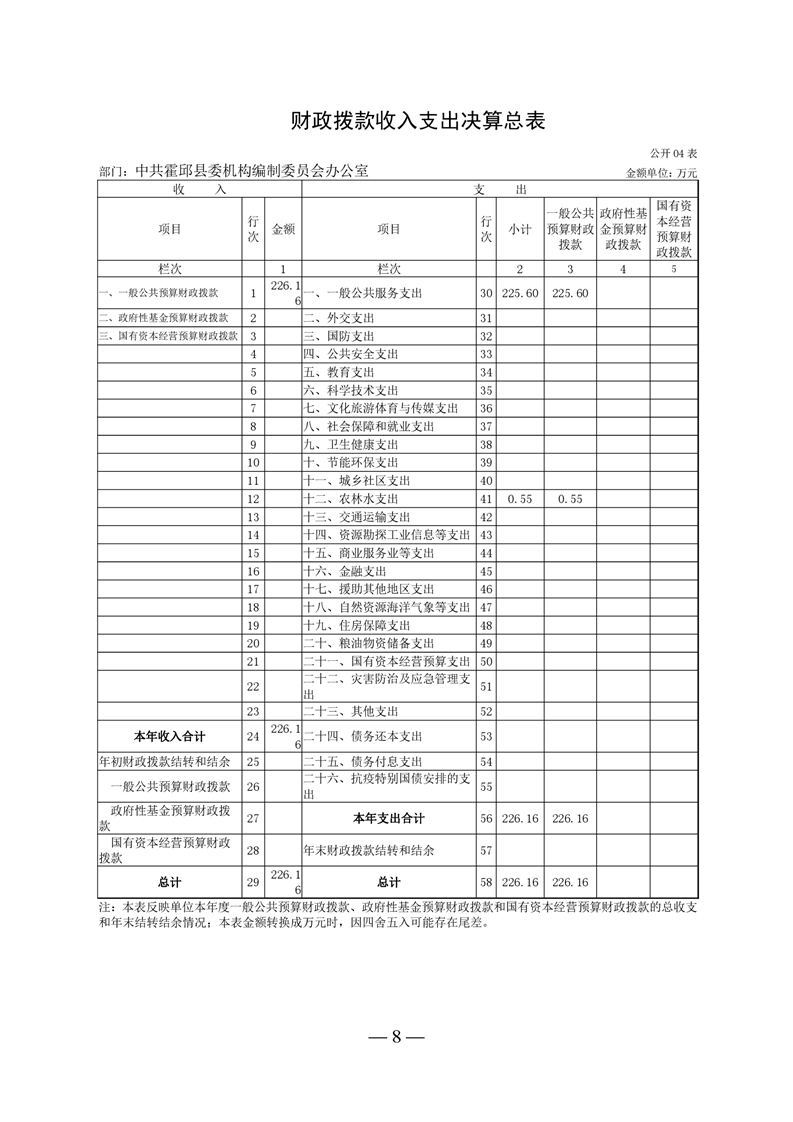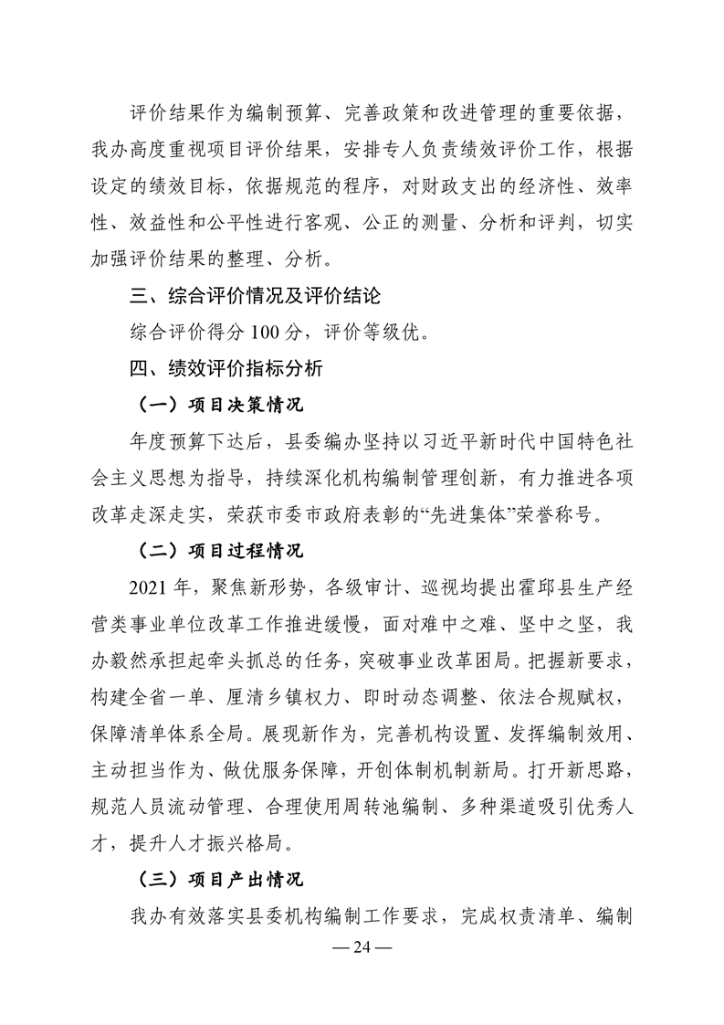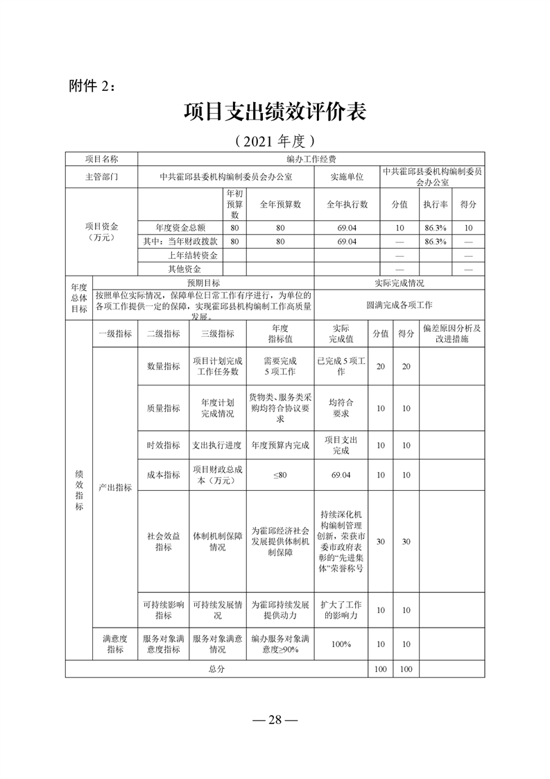 中共霍邱县委机构编制委员会办公室2021年度部门决算