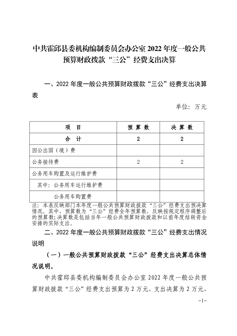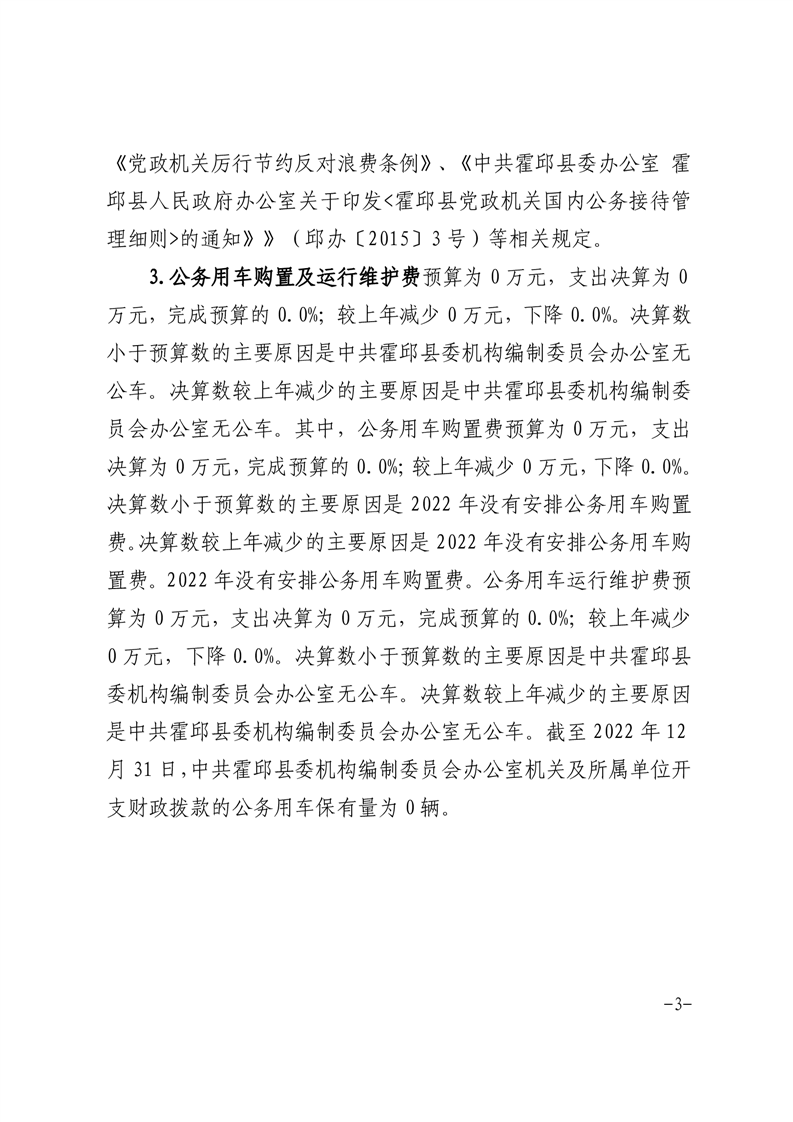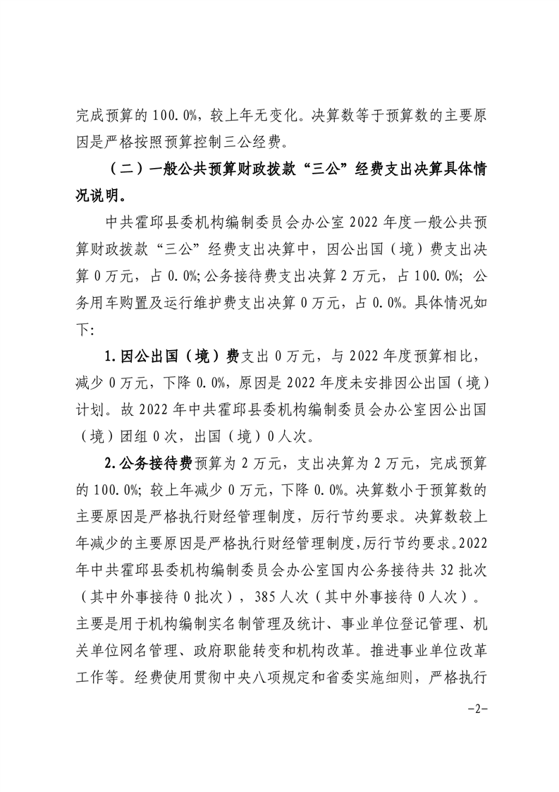 中共霍邱县委机构编制委员会办公室2022年度一般公共预算财政拨款“三公”经费支出决算