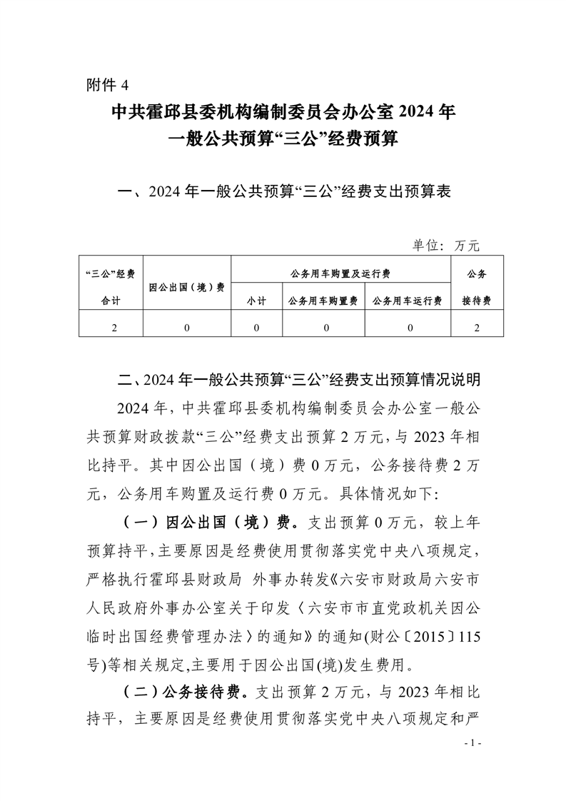 中共霍邱县委机构编制委员会办公室部门2024年一般公共预算安排“三公”经费情况