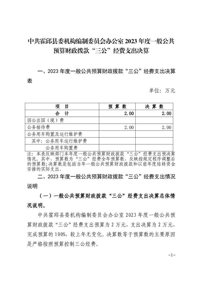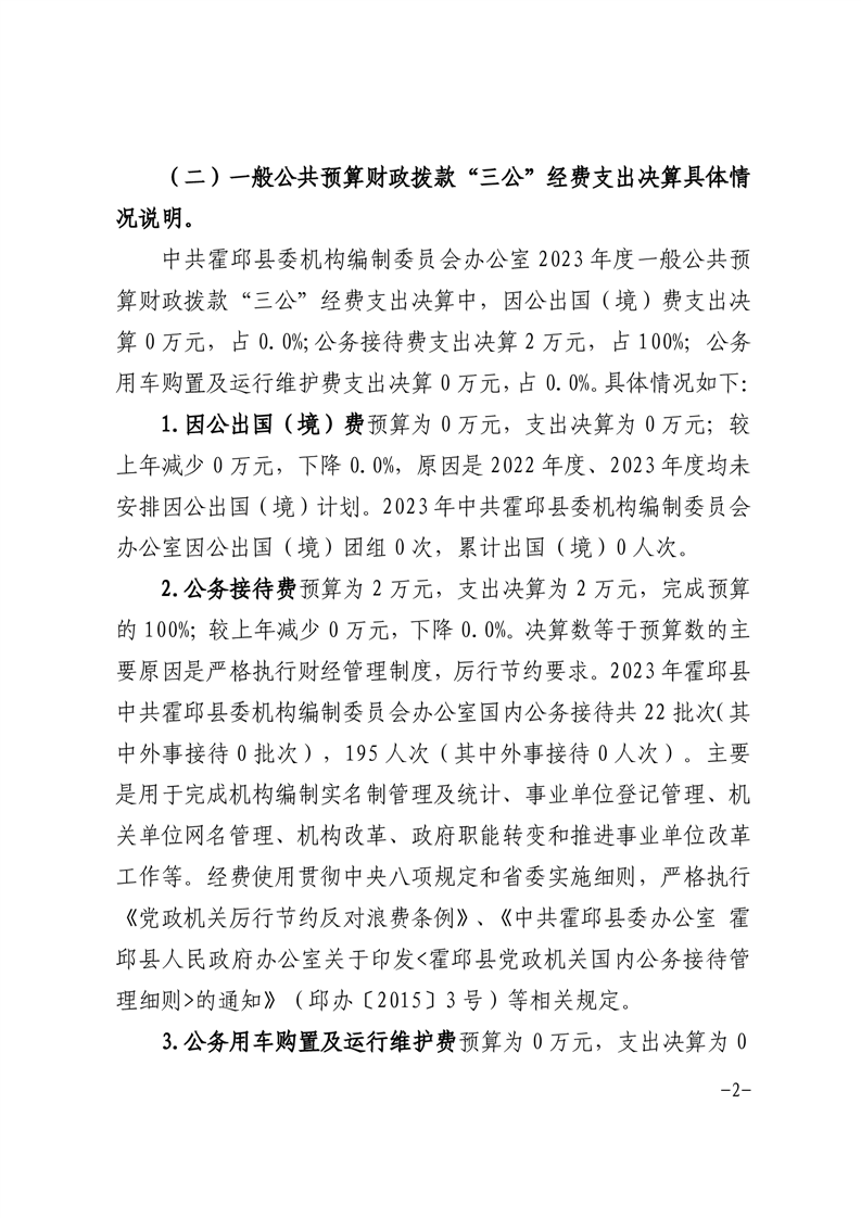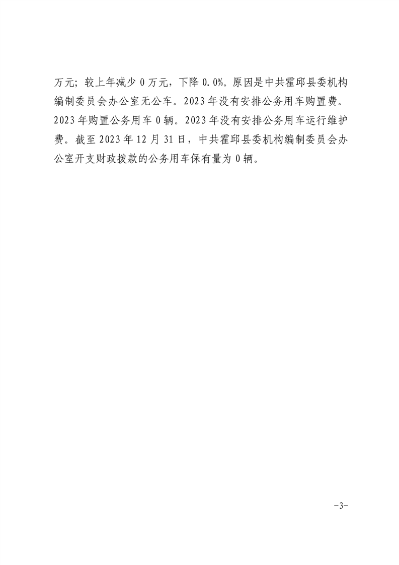 中共霍邱县委机构编制委员会办公室2023年度一般公共预算财政拨款“三公”经费支出决算