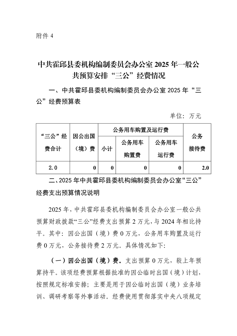 中共霍邱县委机构编制委员会办公室部门2025年一般公共预算安排“三公”经费情况