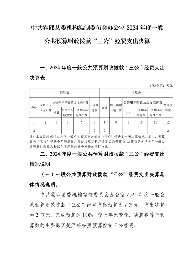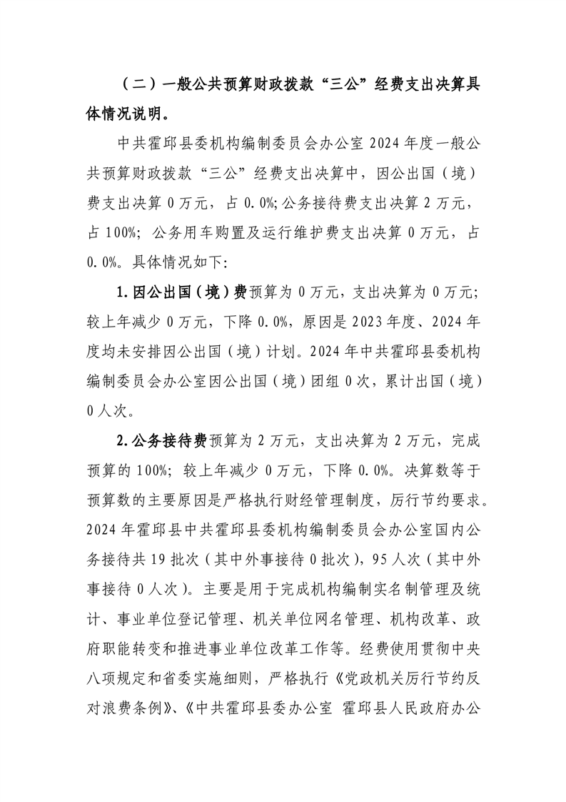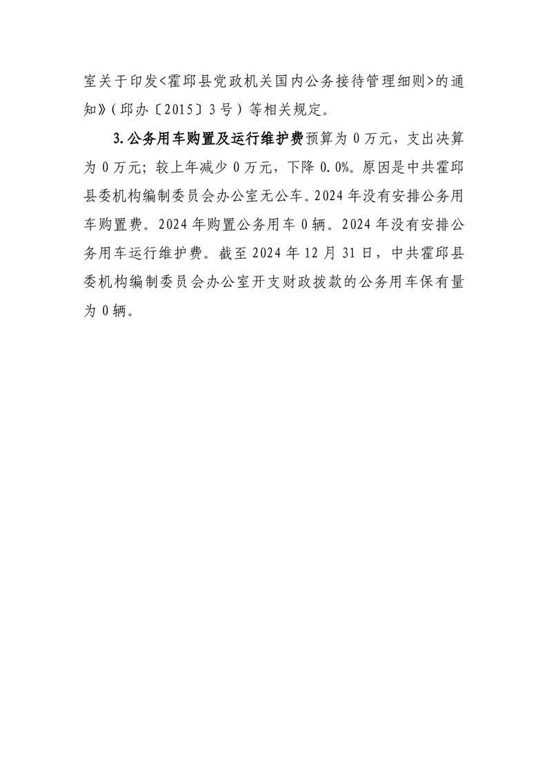 中共霍邱县委机构编制委员会办公室2024年度一般公共预算财政拨款“三公”经费支出决算