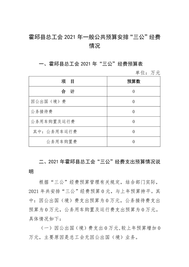 霍邱县总工会2021年“三公经费”预算公开