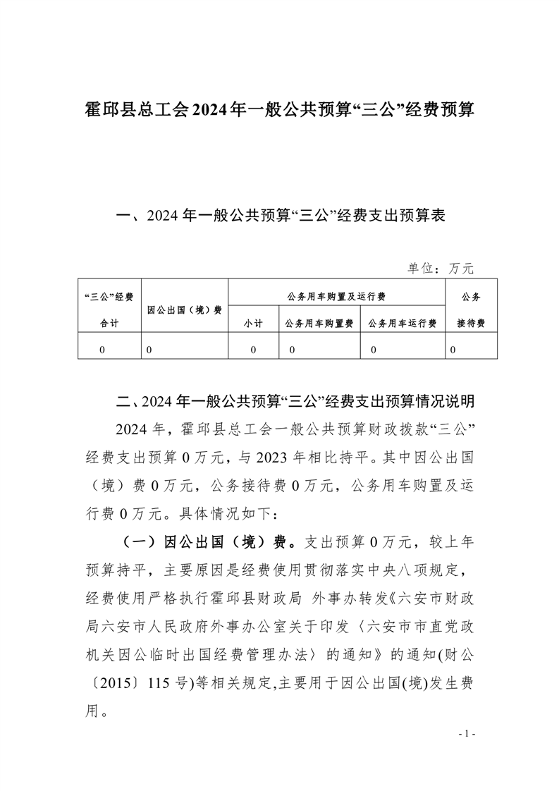 霍邱县总工会2024年一般公共预算“三公”经费预算