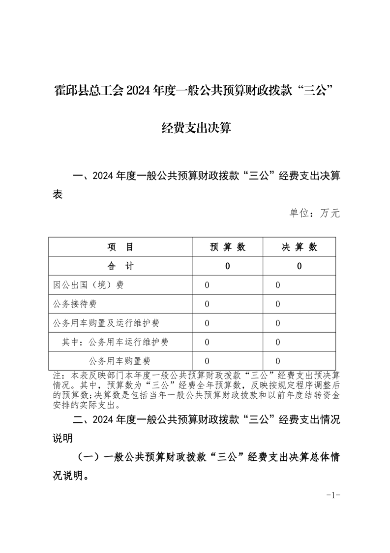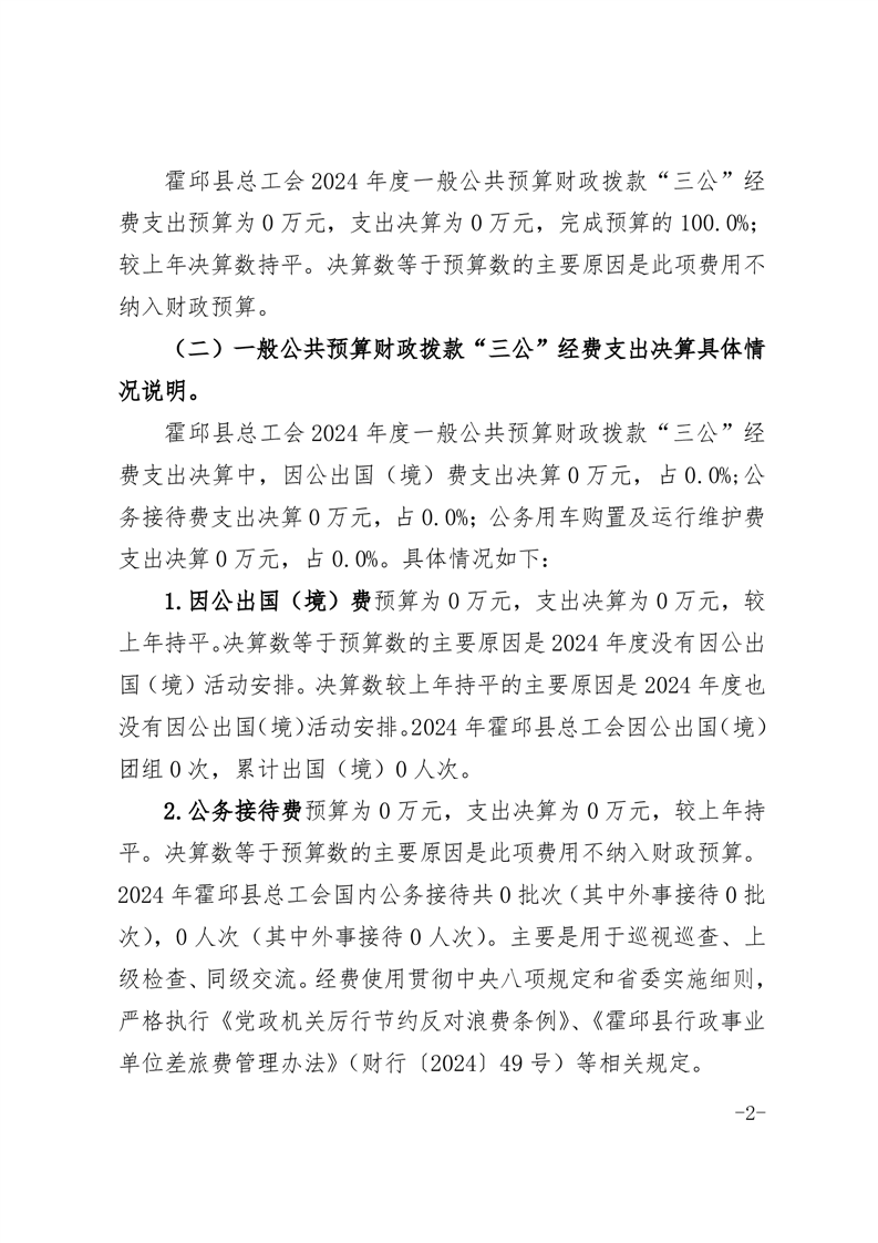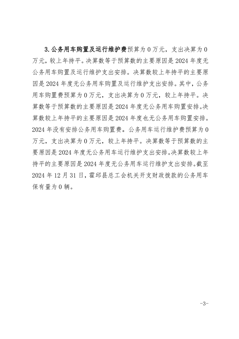 霍邱县总工会2024年度一般公共预算财政拨款“三公”经费支出决算