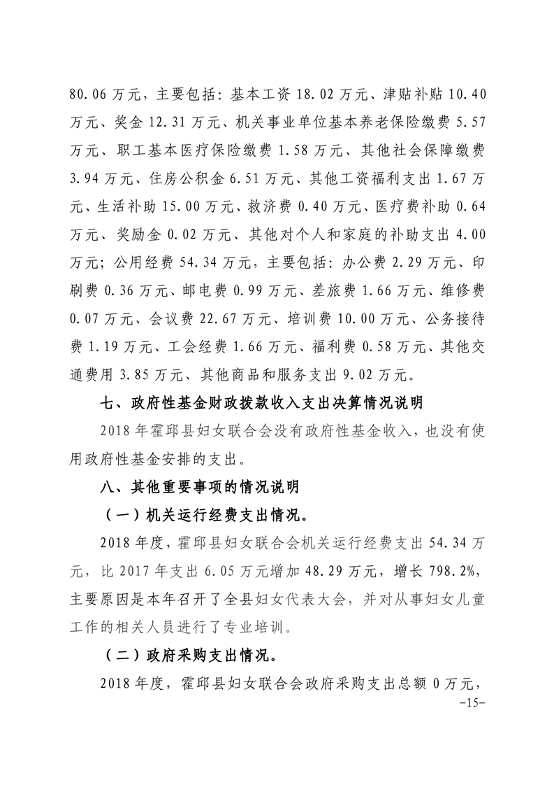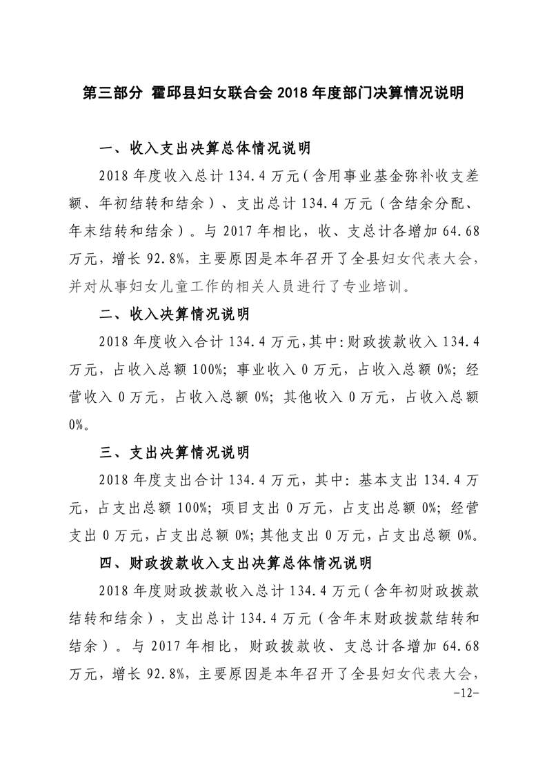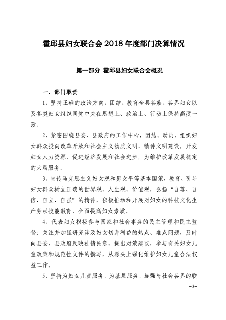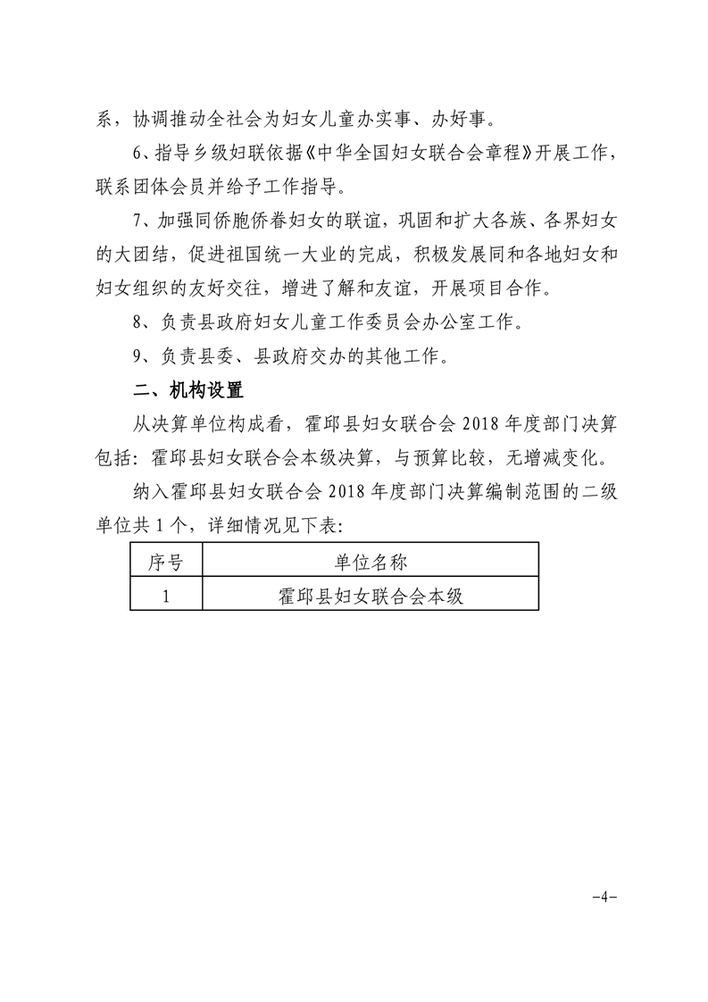 霍邱县妇女联合会2018年度部门决算
