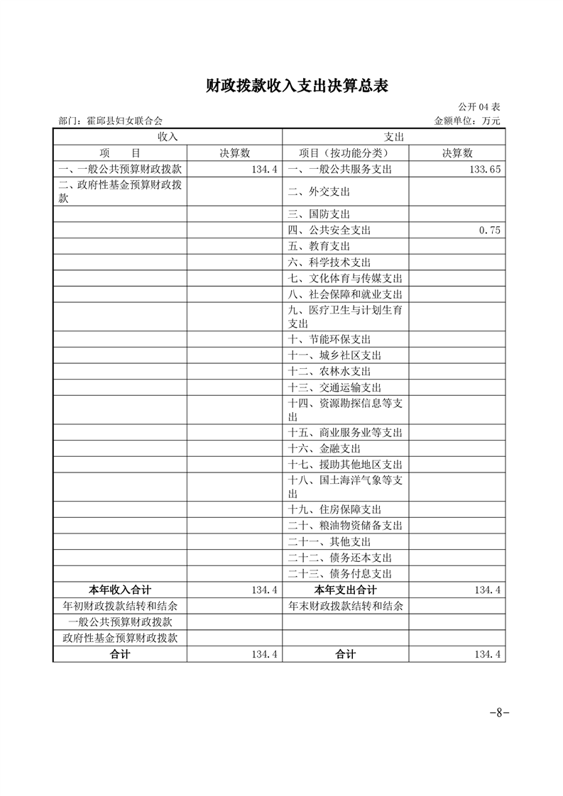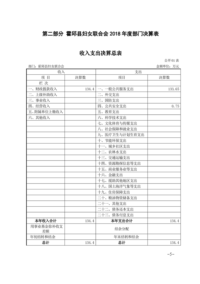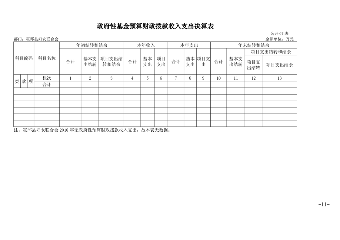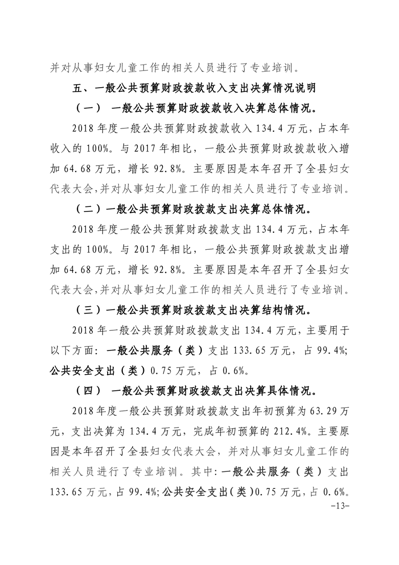 霍邱县妇女联合会2018年度部门决算