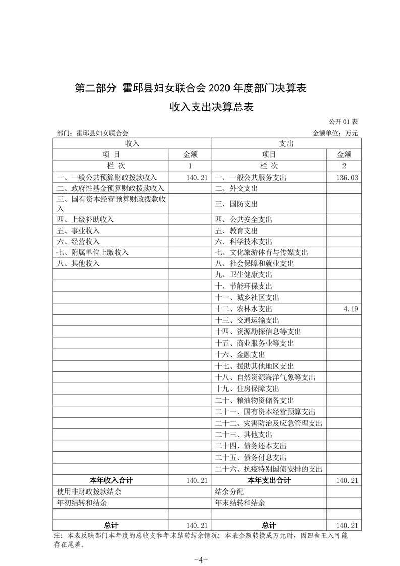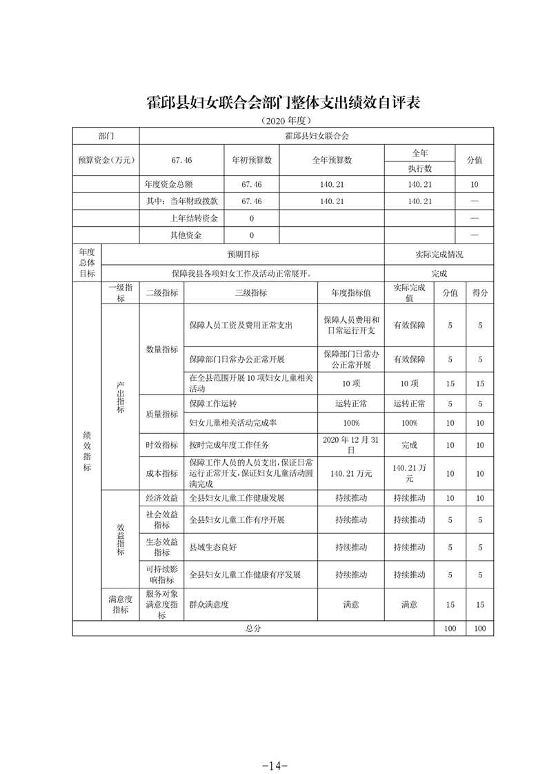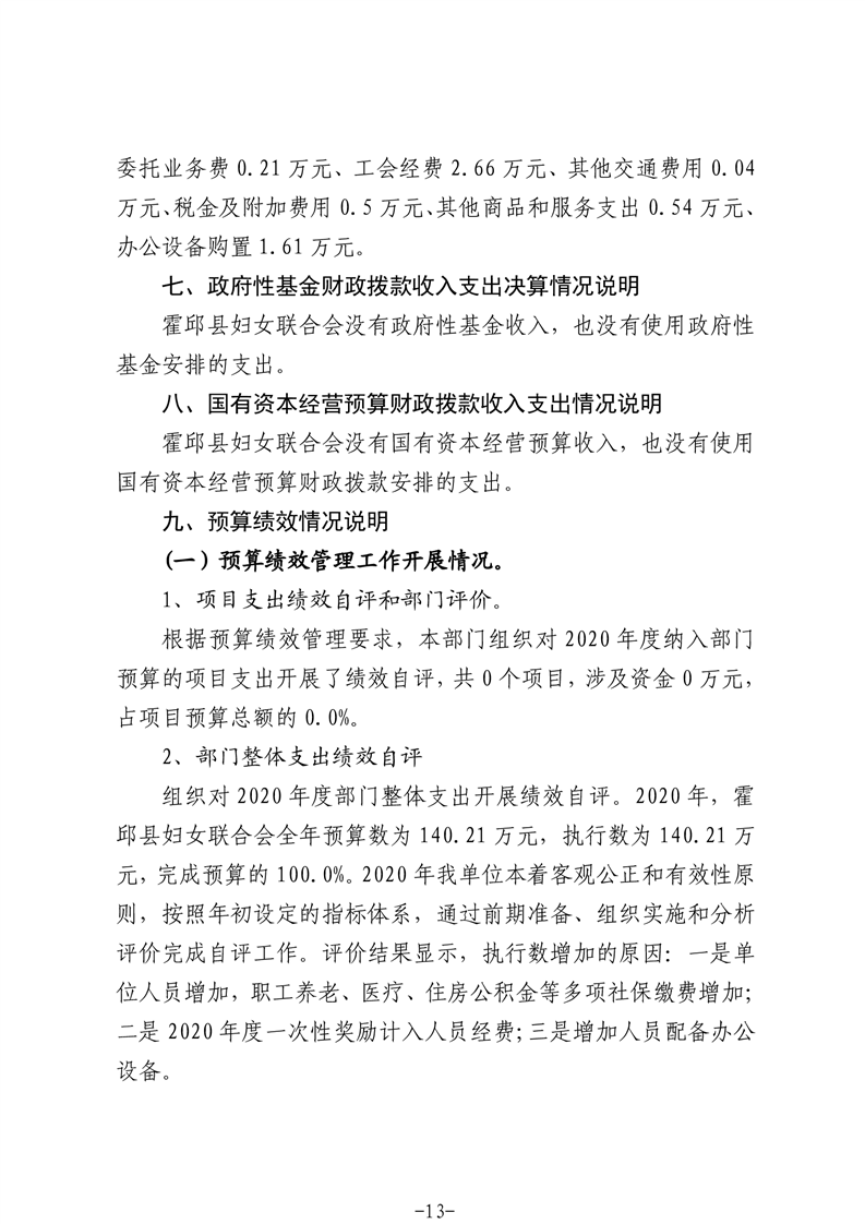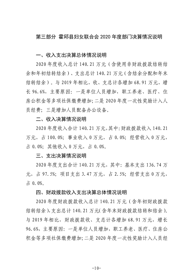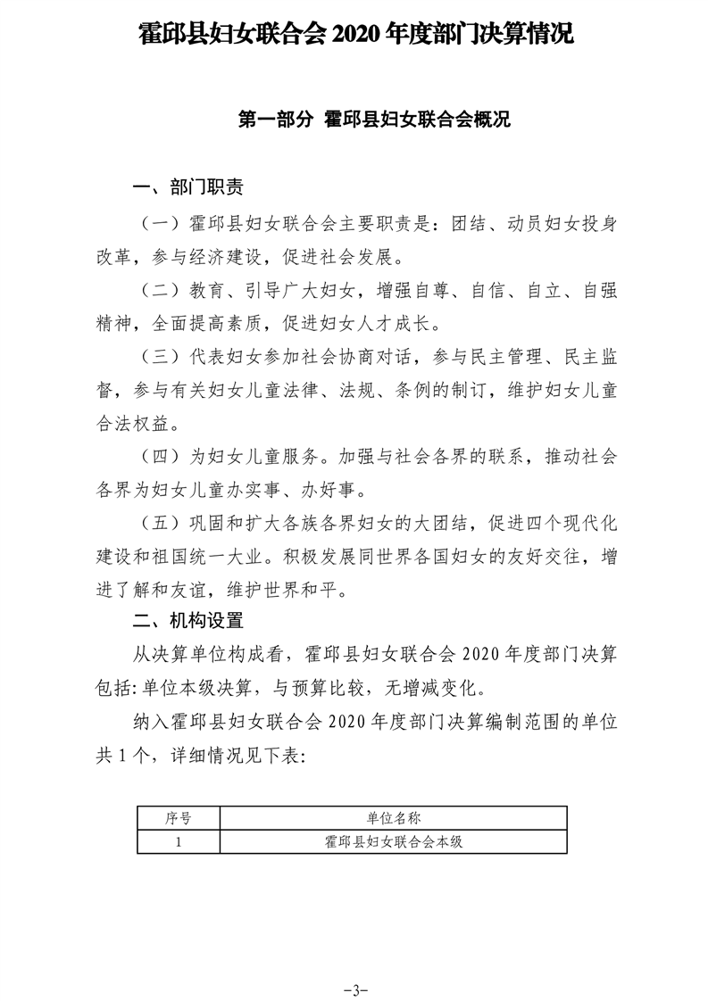 霍邱县妇女联合会2020年度部门决算
