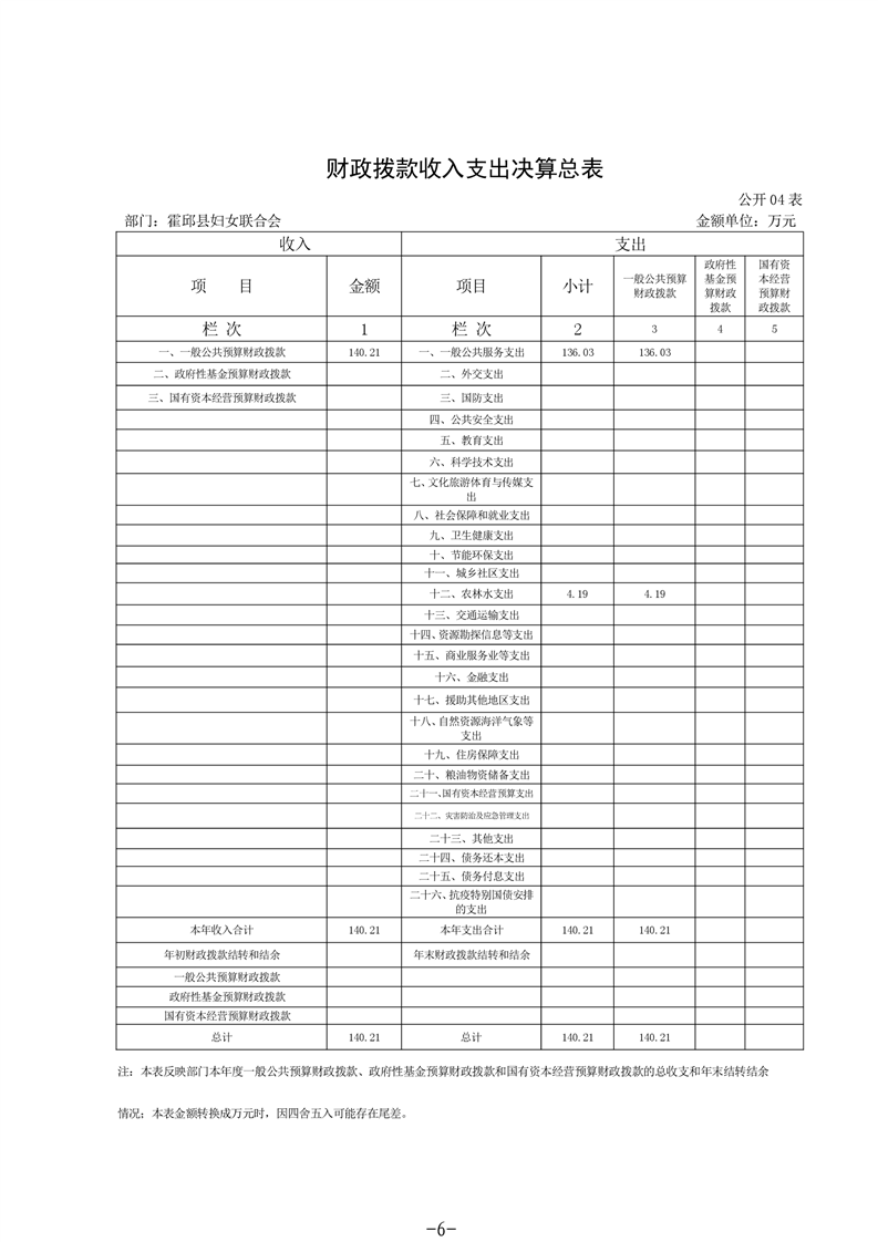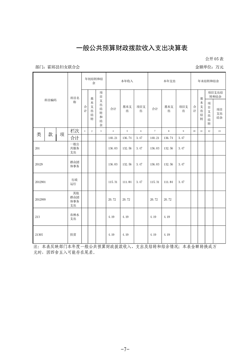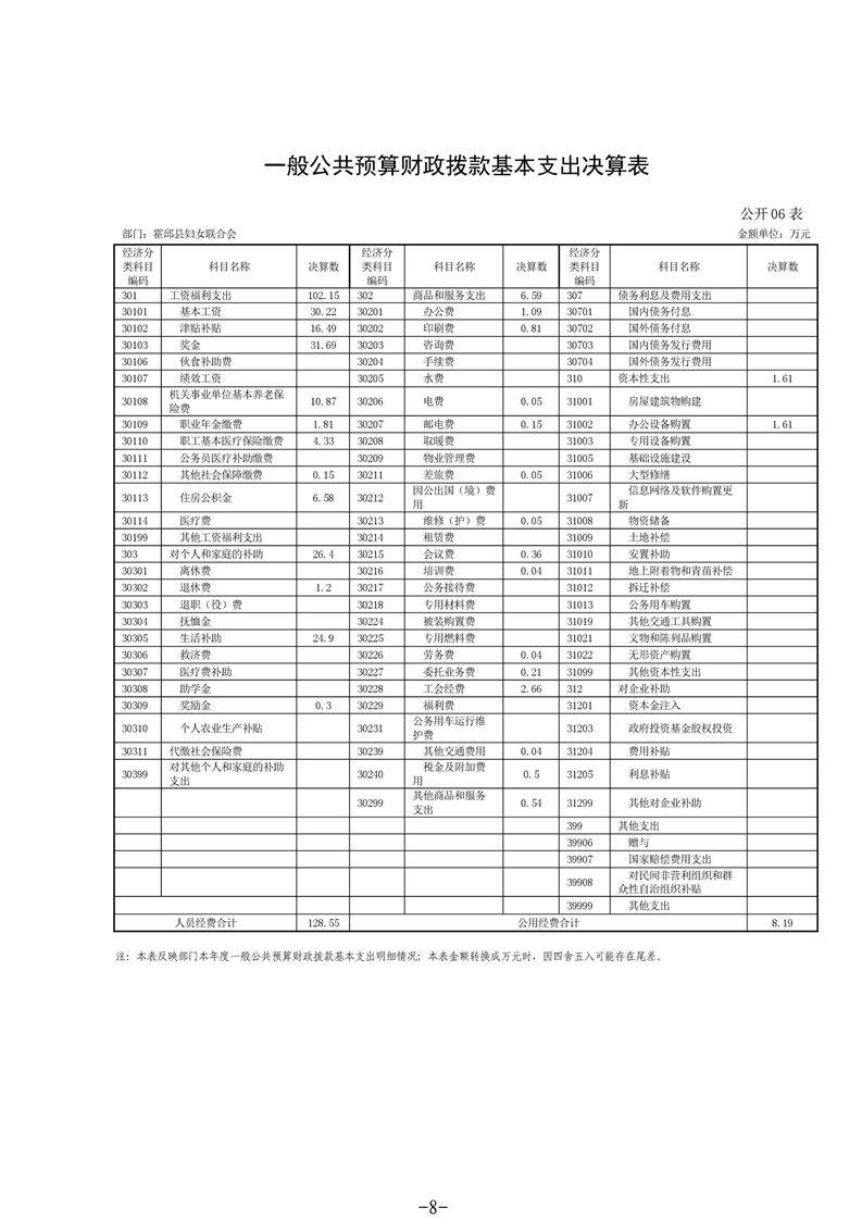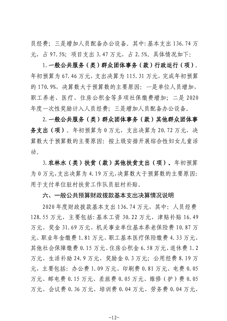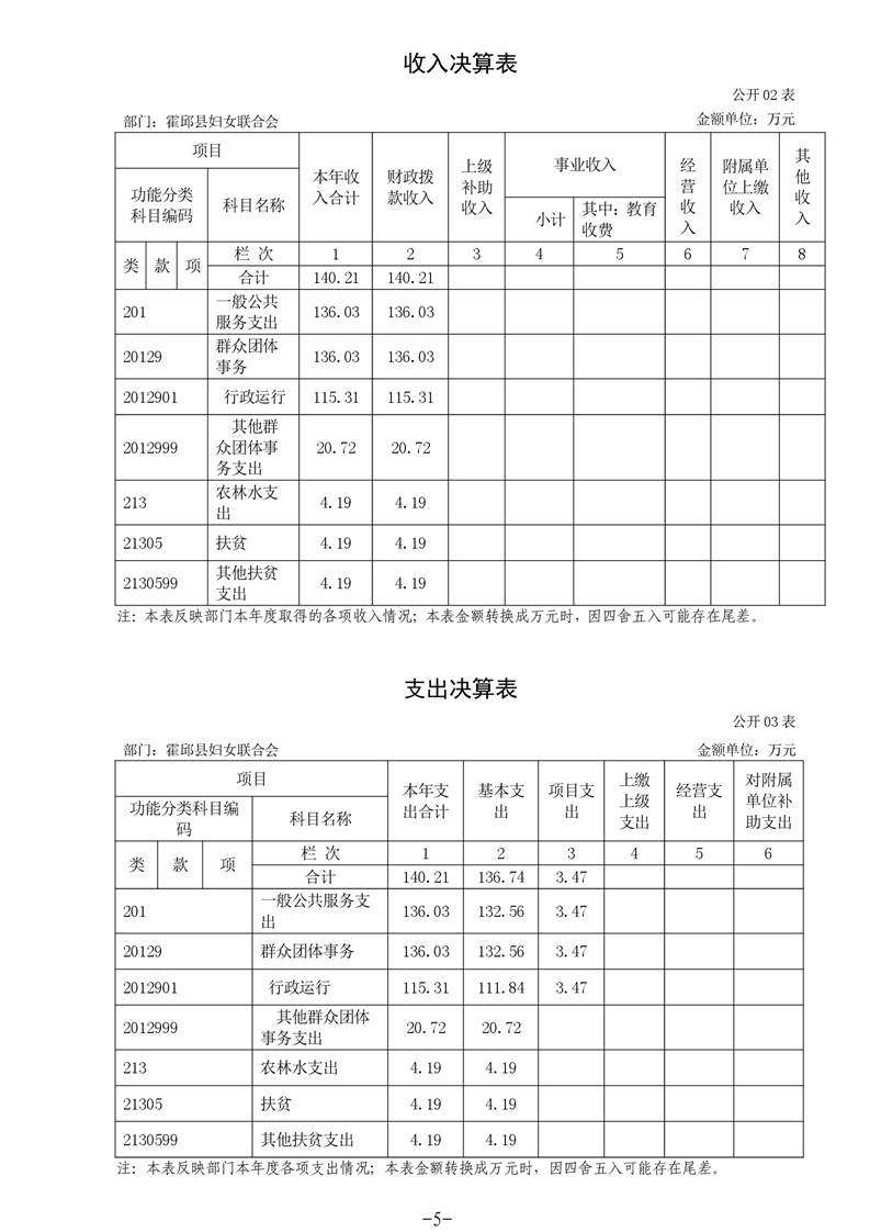霍邱县妇女联合会2020年度部门决算