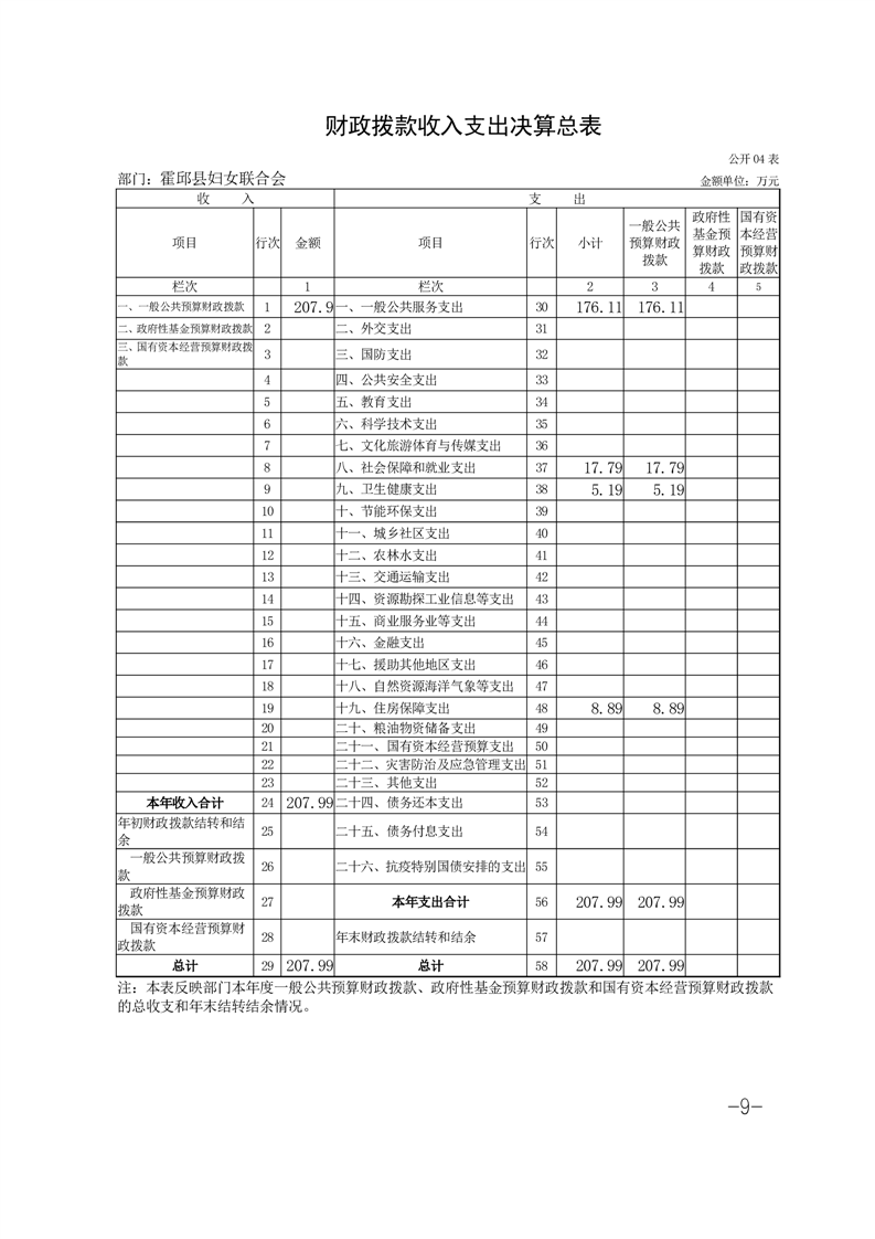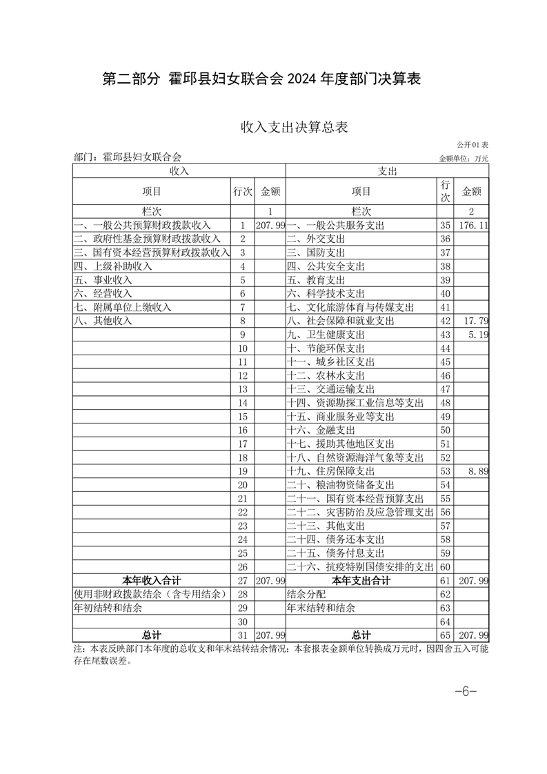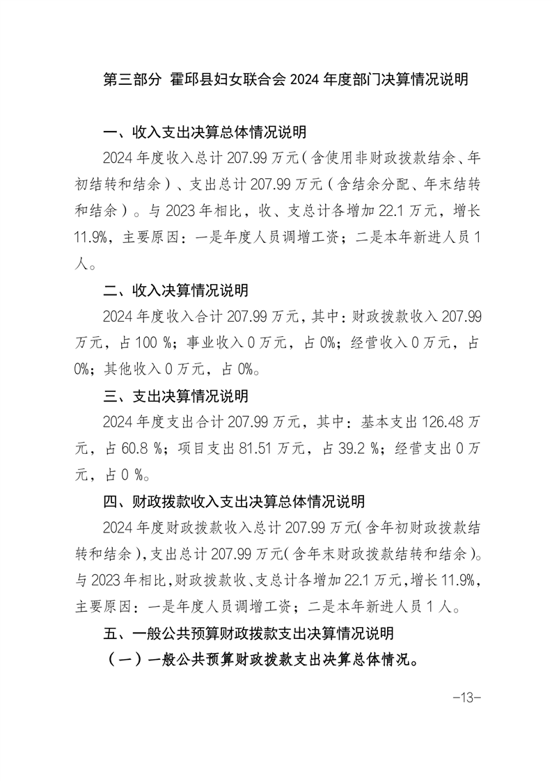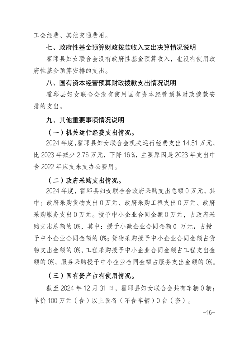 霍邱县妇女联合会 2024 年度部门决算