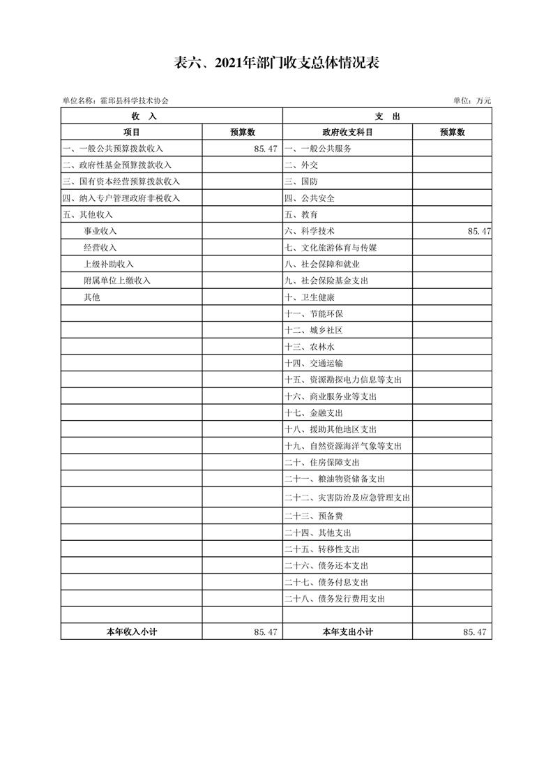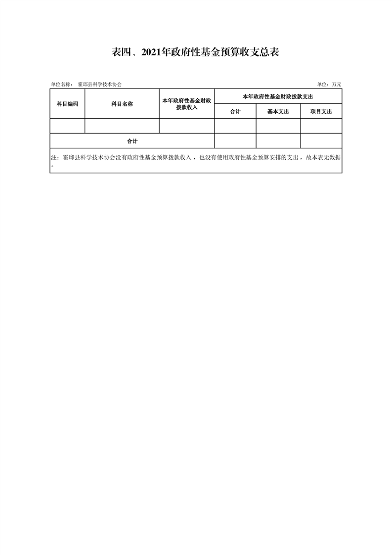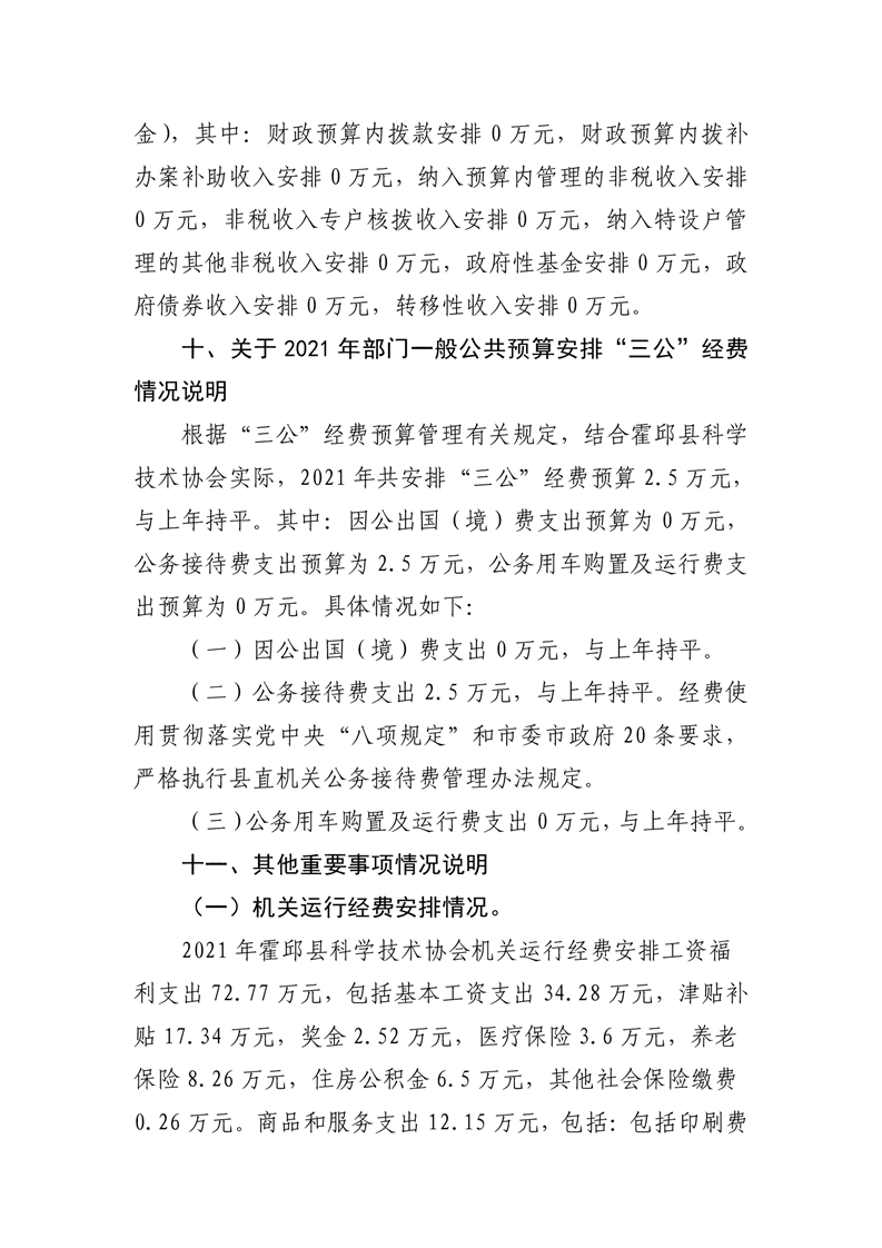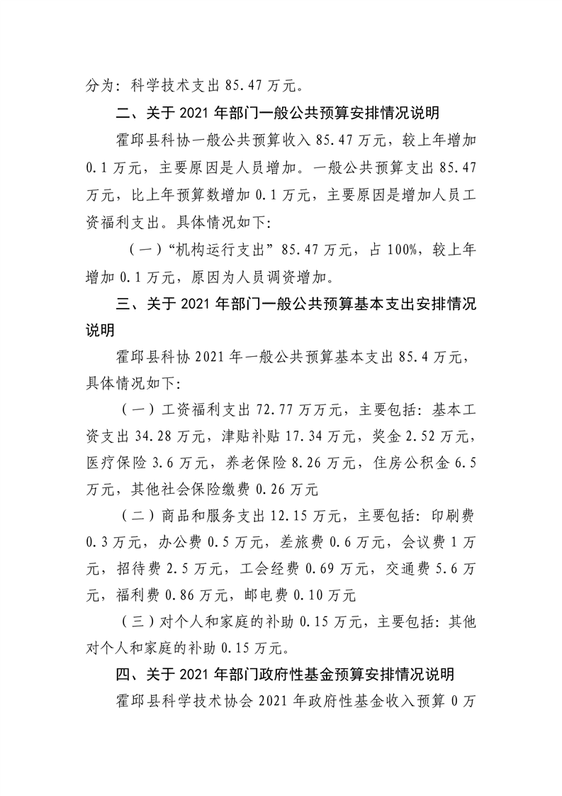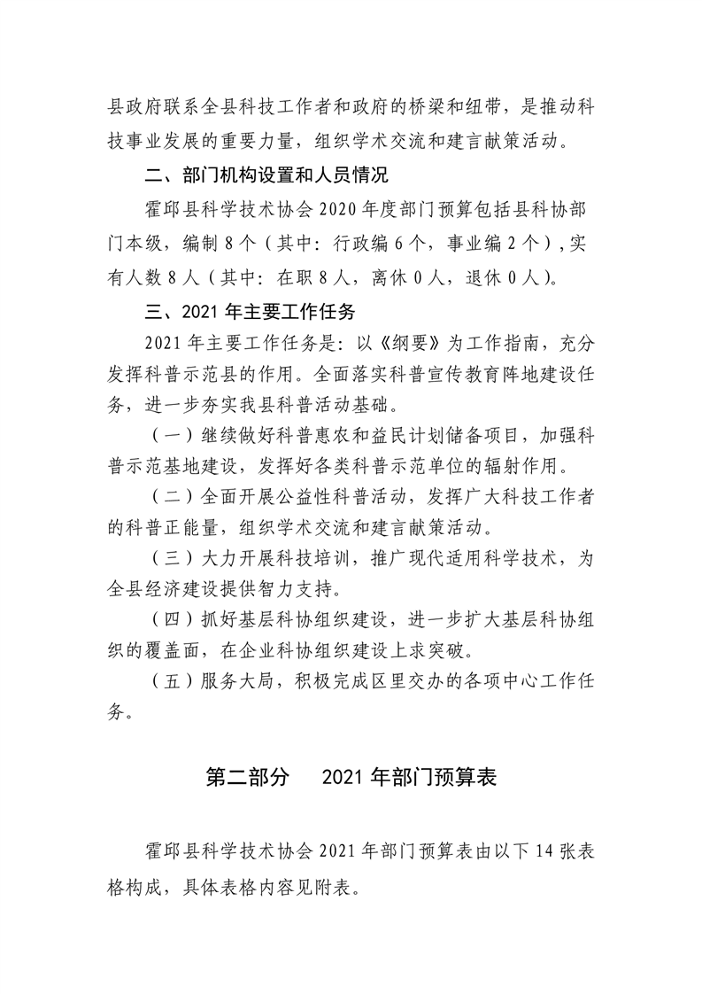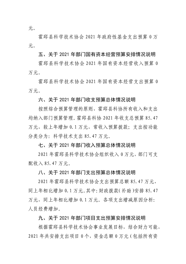 霍邱县科学技术协会2021年预算公开