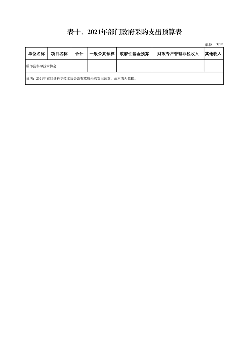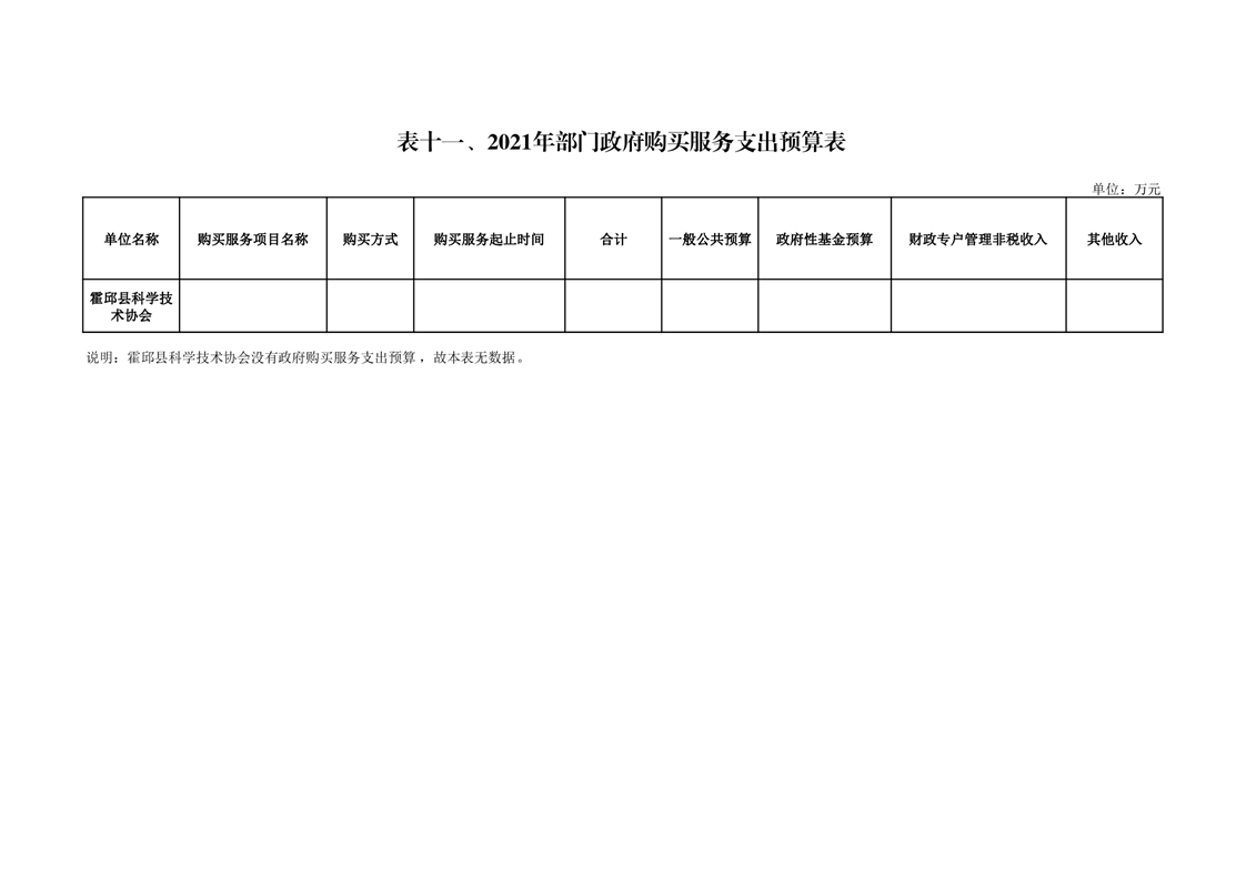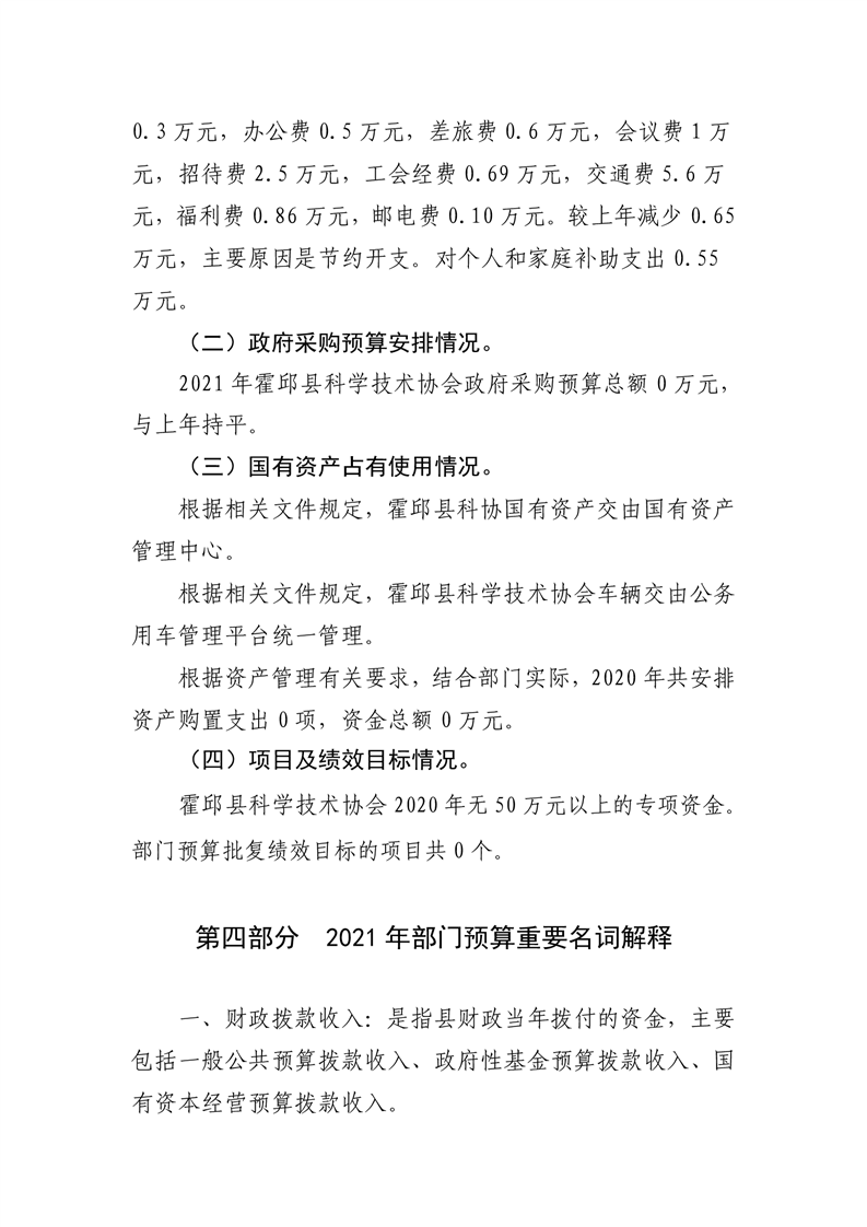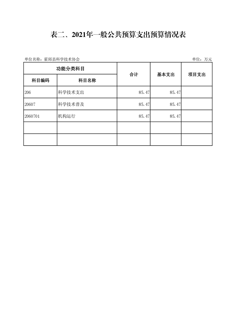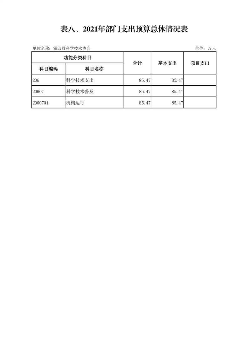 霍邱县科学技术协会2021年预算公开