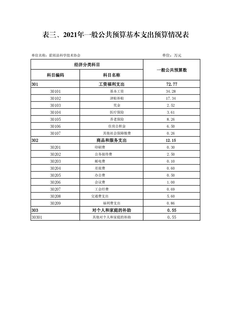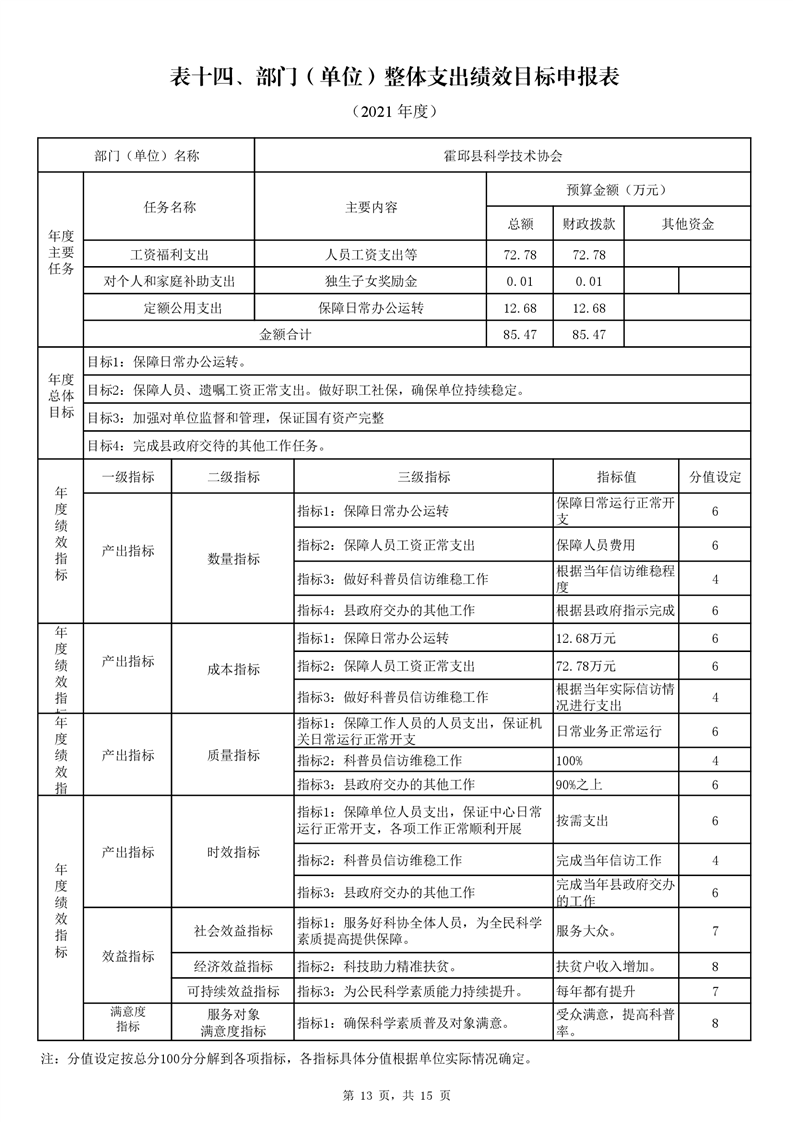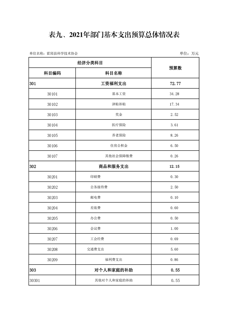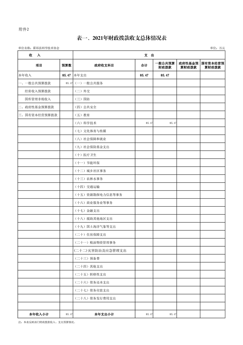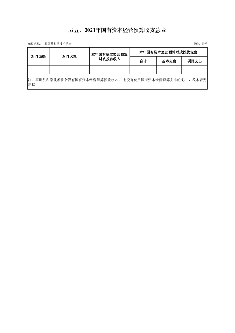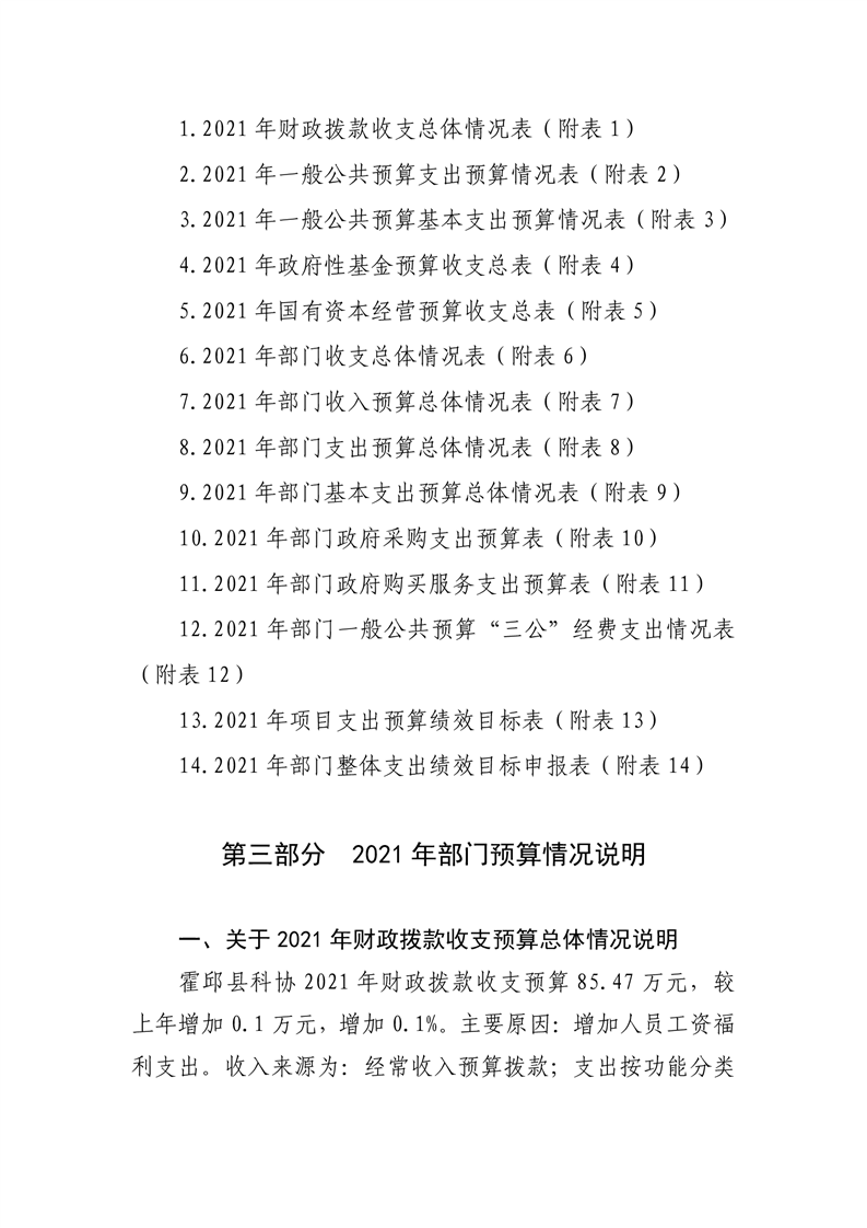 霍邱县科学技术协会2021年预算公开
