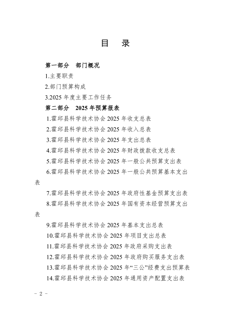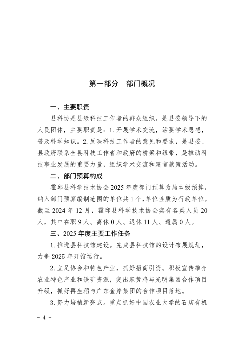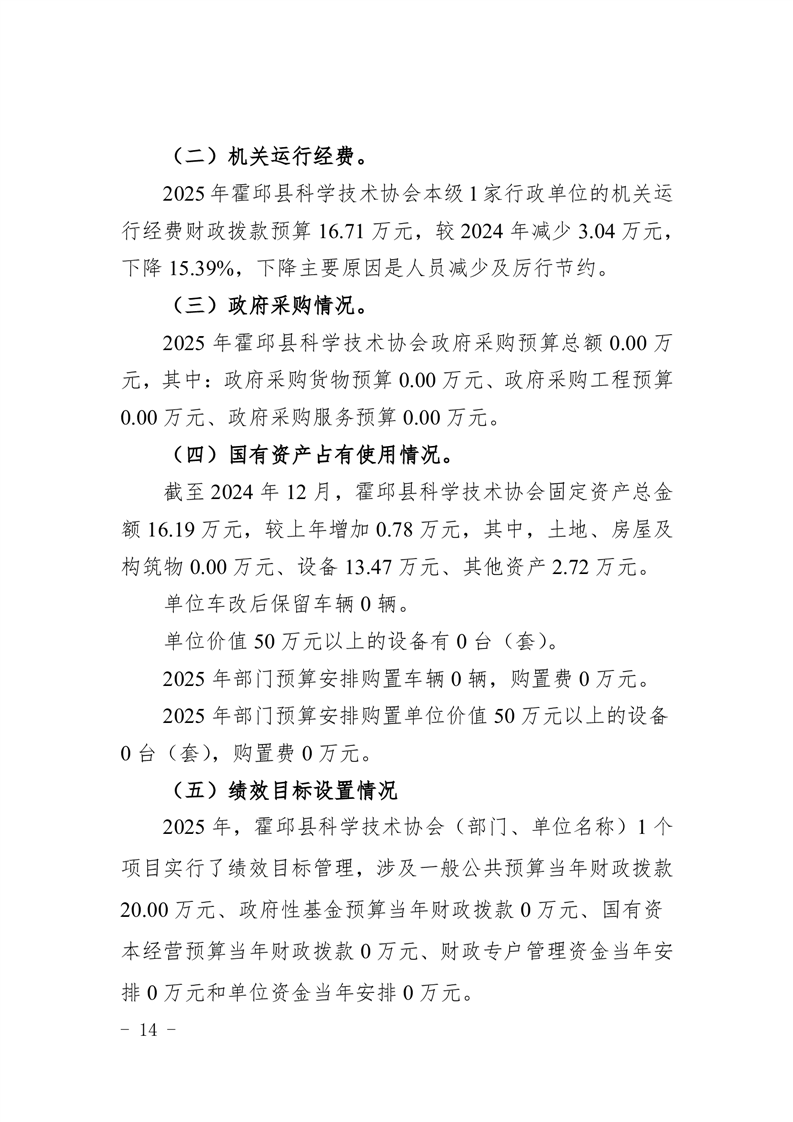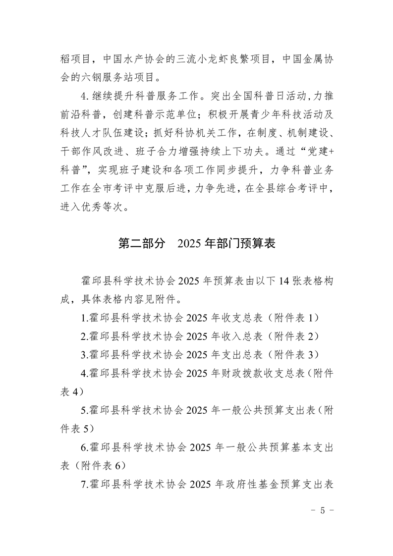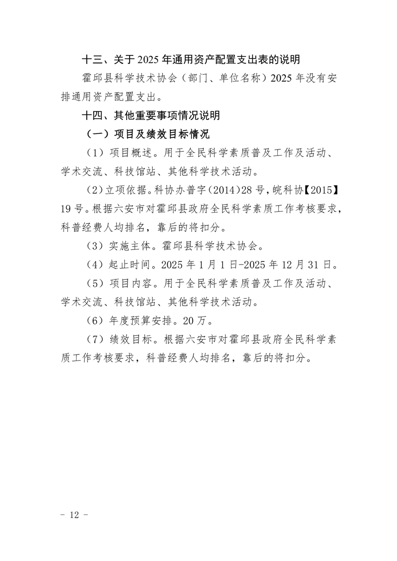 霍邱县科学技术协会2025年部门预算公开