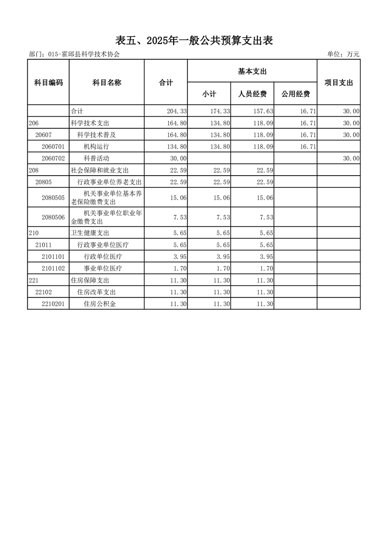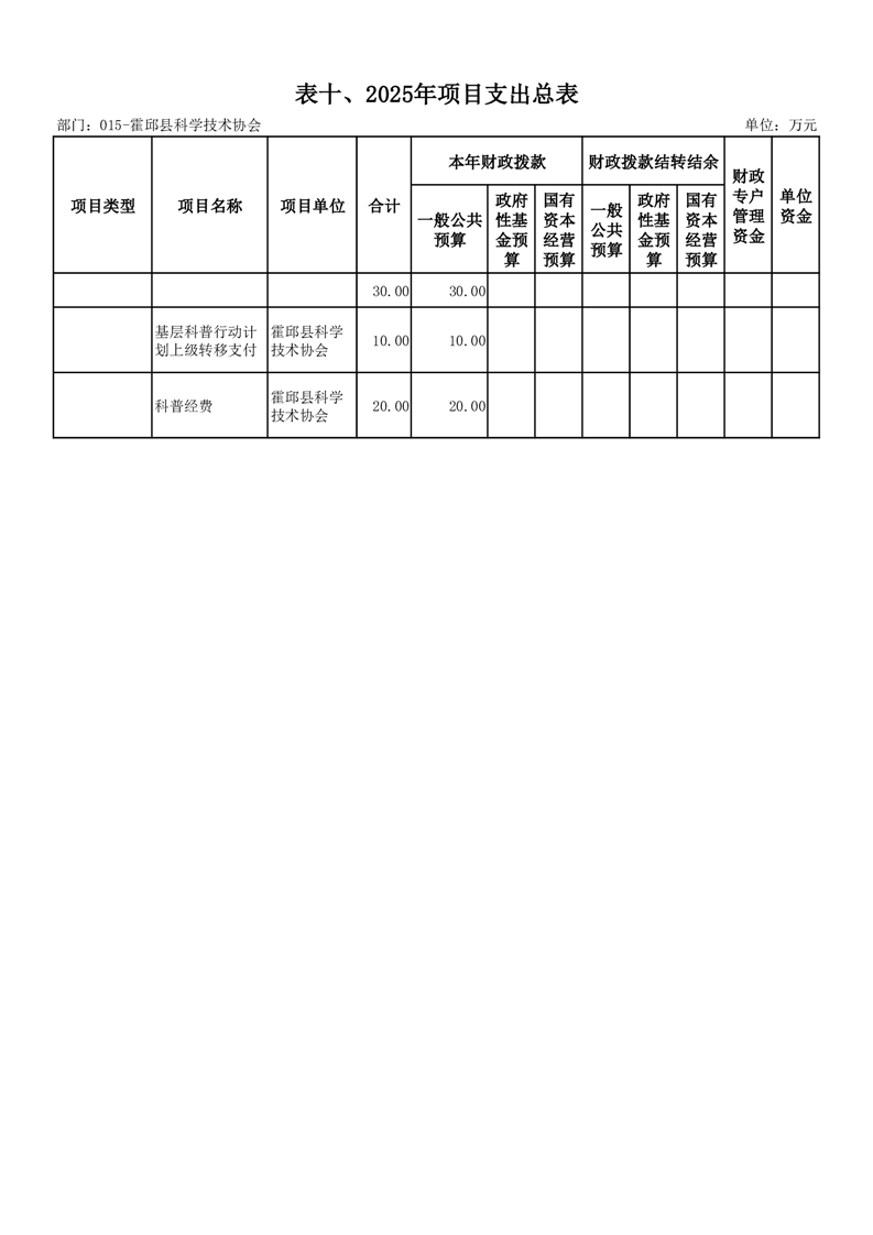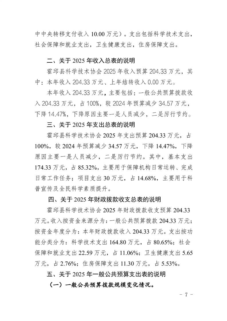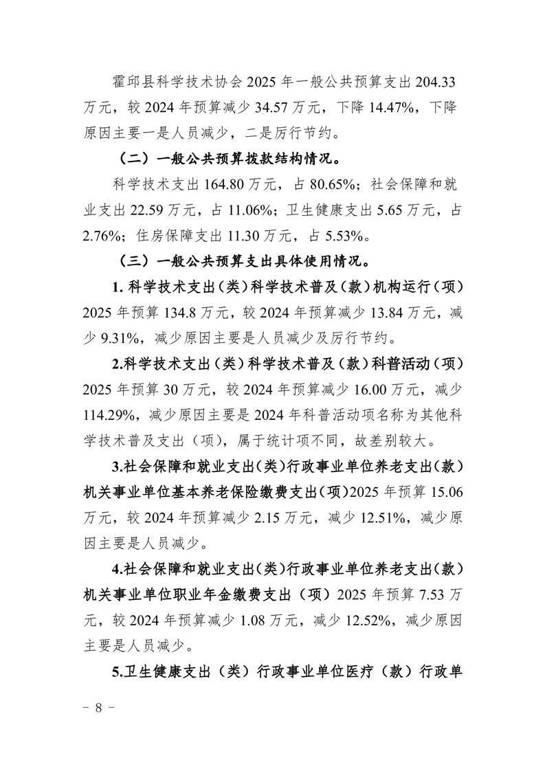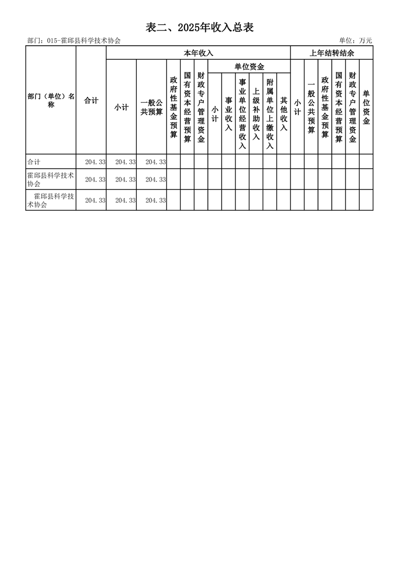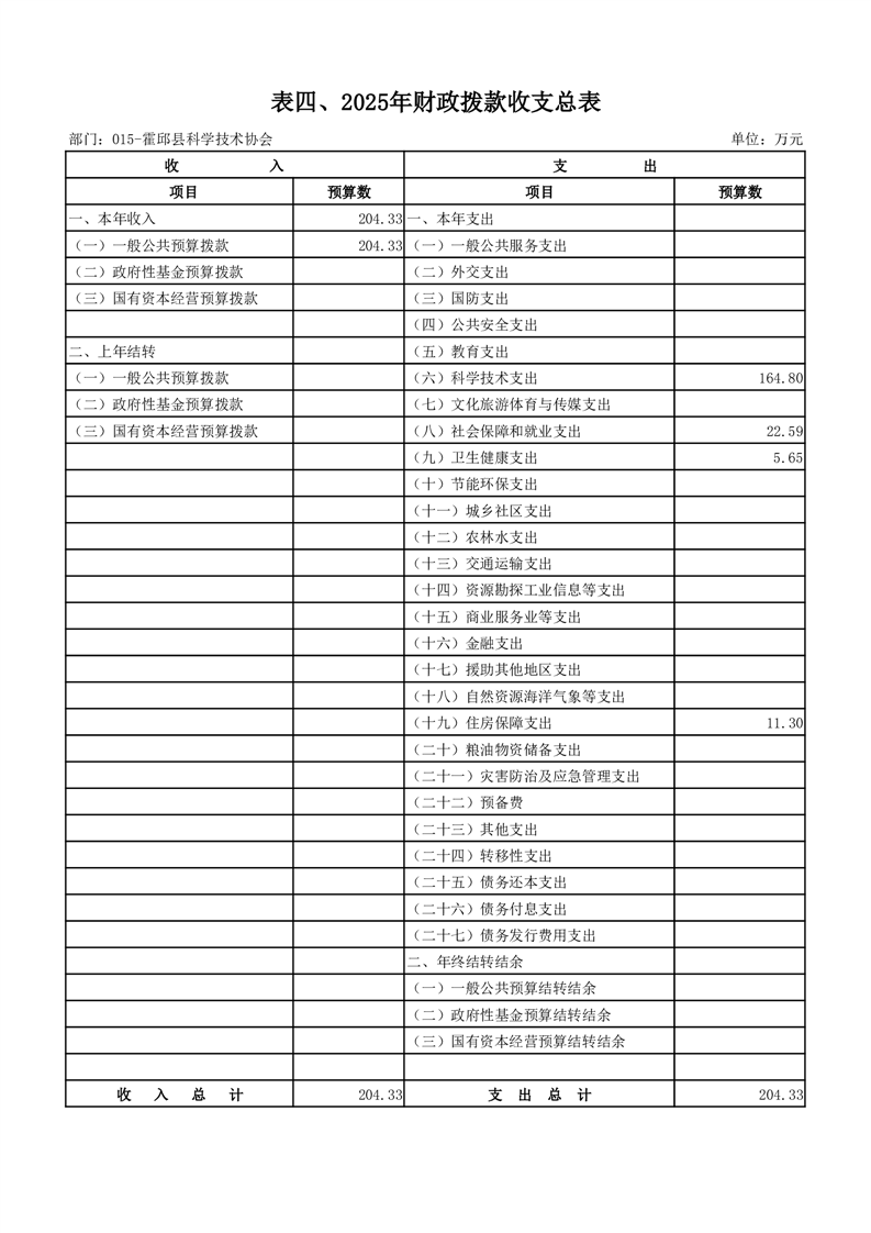 霍邱县科学技术协会2025年部门预算公开
