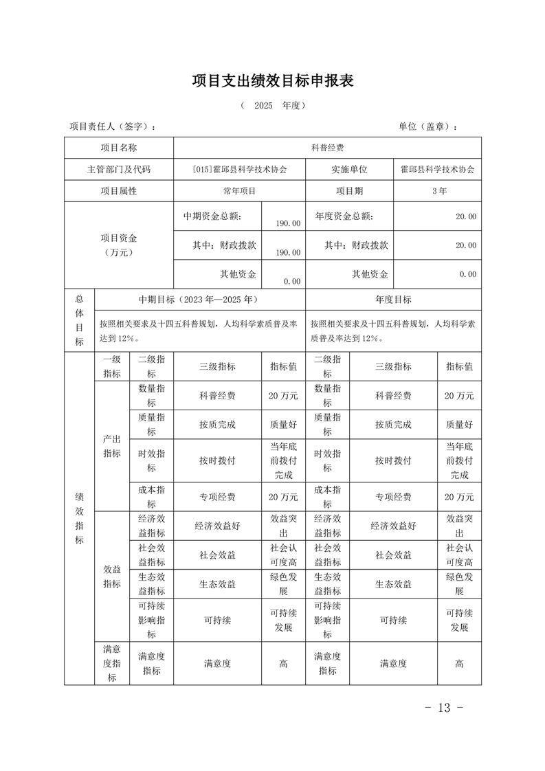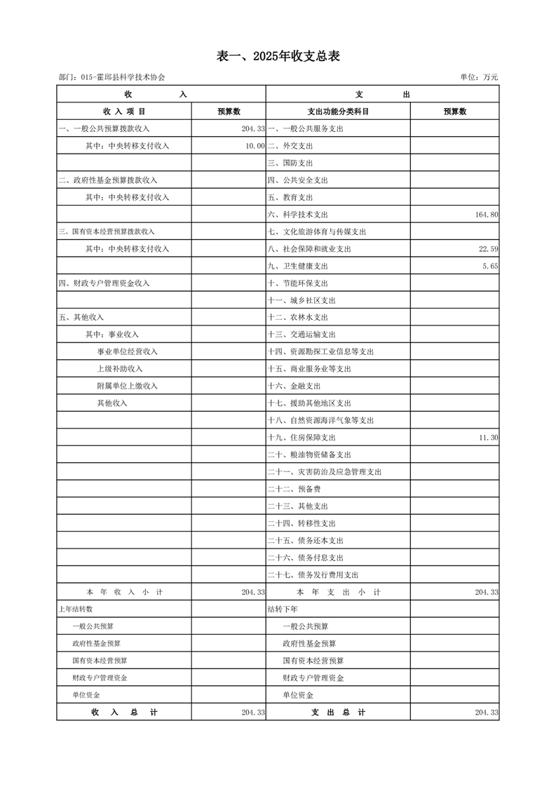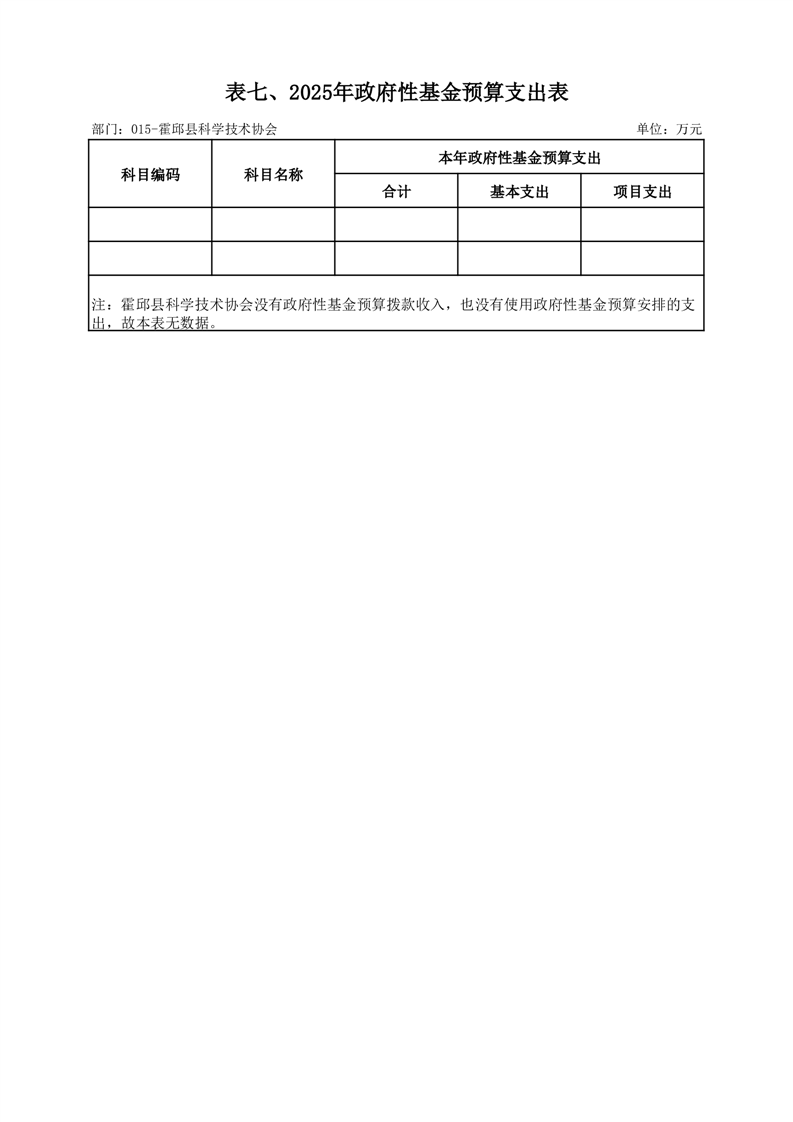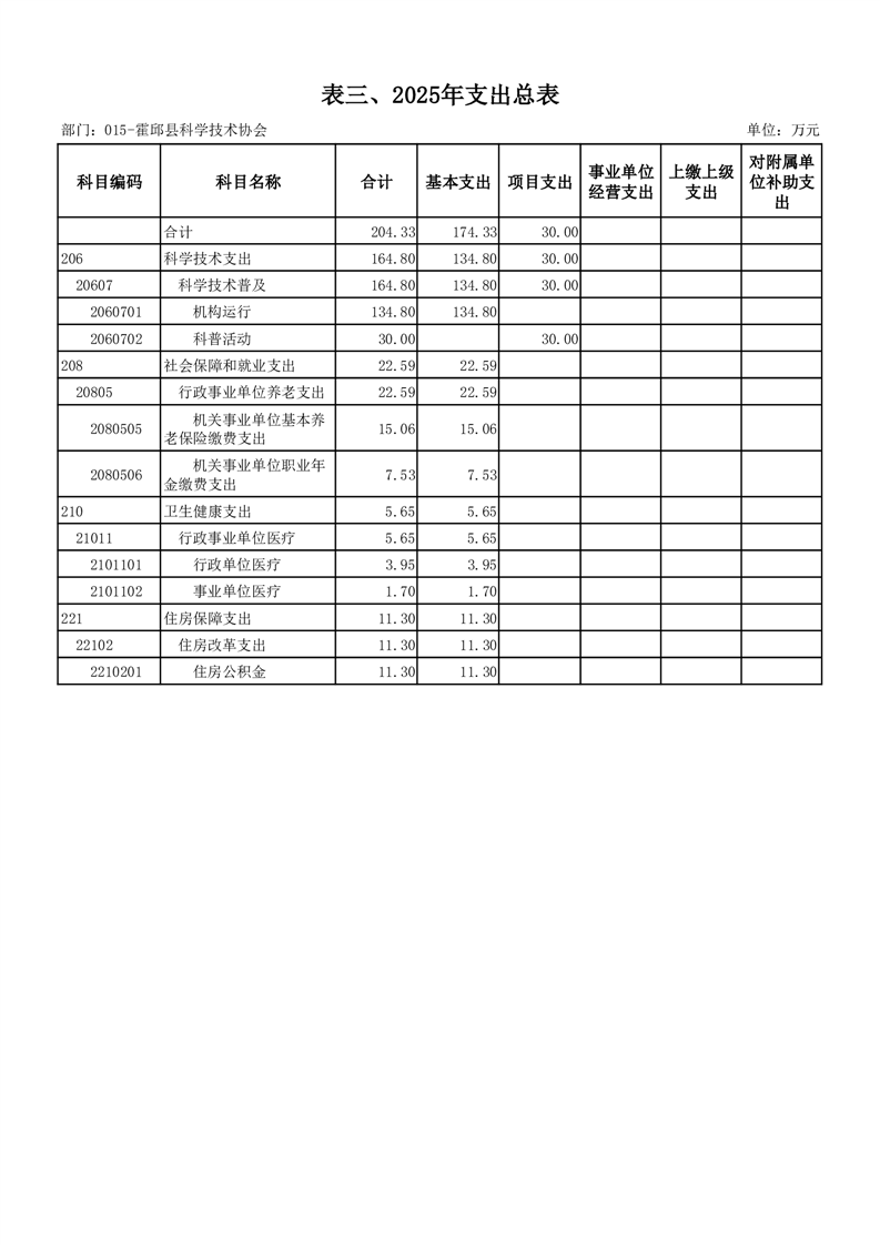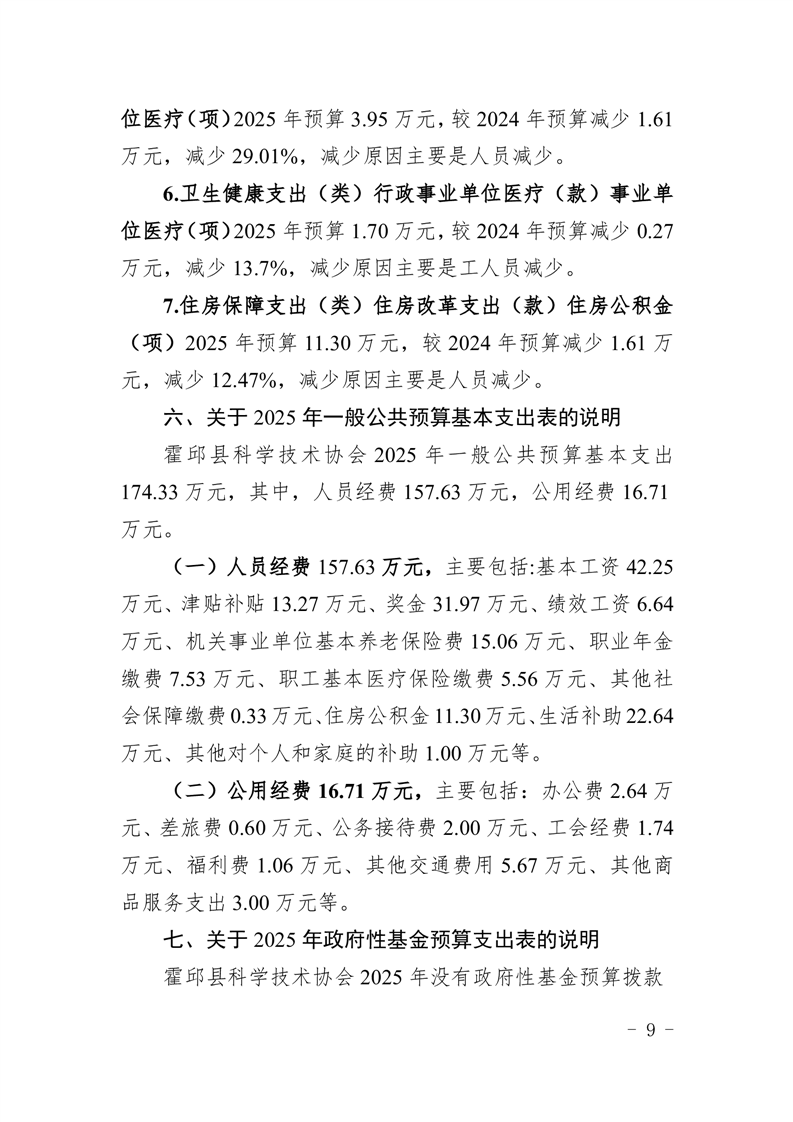 霍邱县科学技术协会2025年部门预算公开