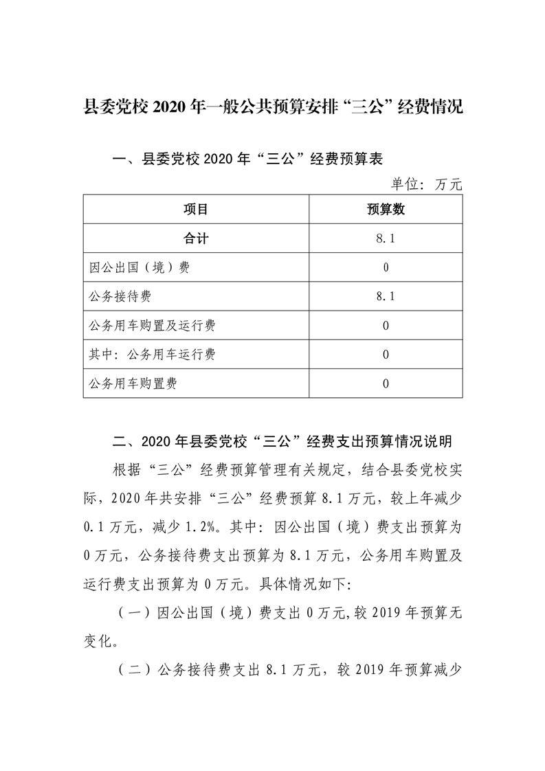 县委党校 2020 年一般公共预算安排“三公”经费情况