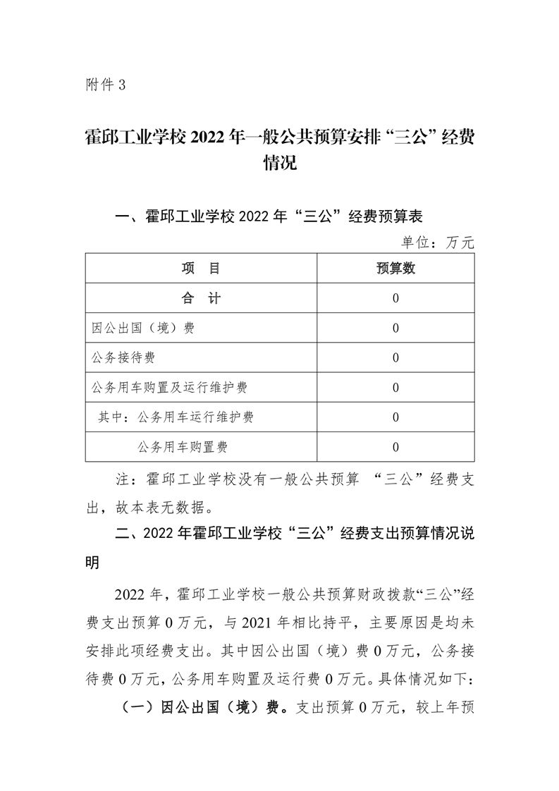 霍邱工业学校2022年一般公共预算安排“三公”经费情况