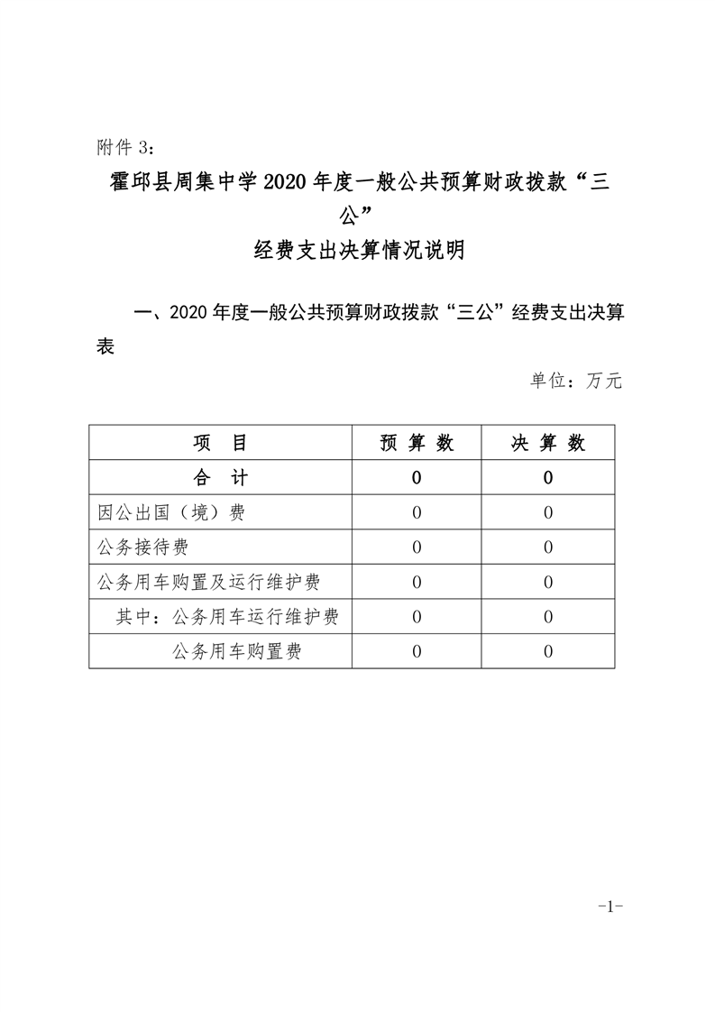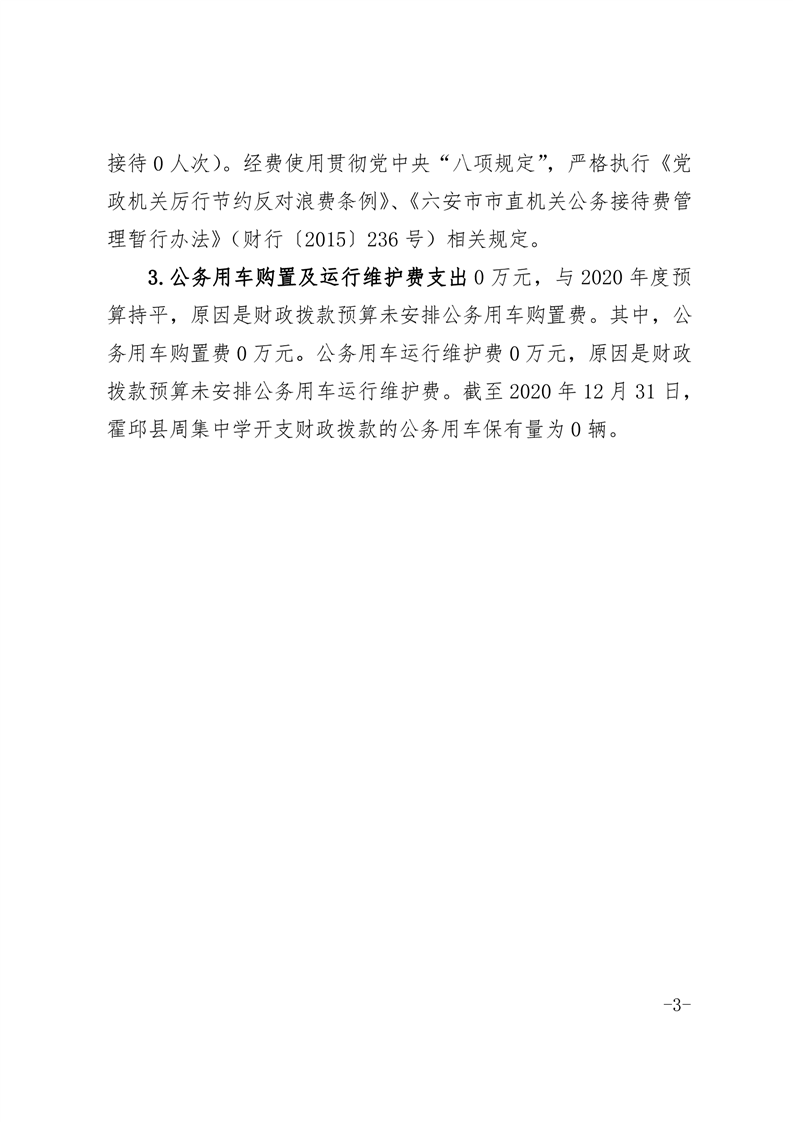 霍邱县周集中学2020年三公经费决算公开
