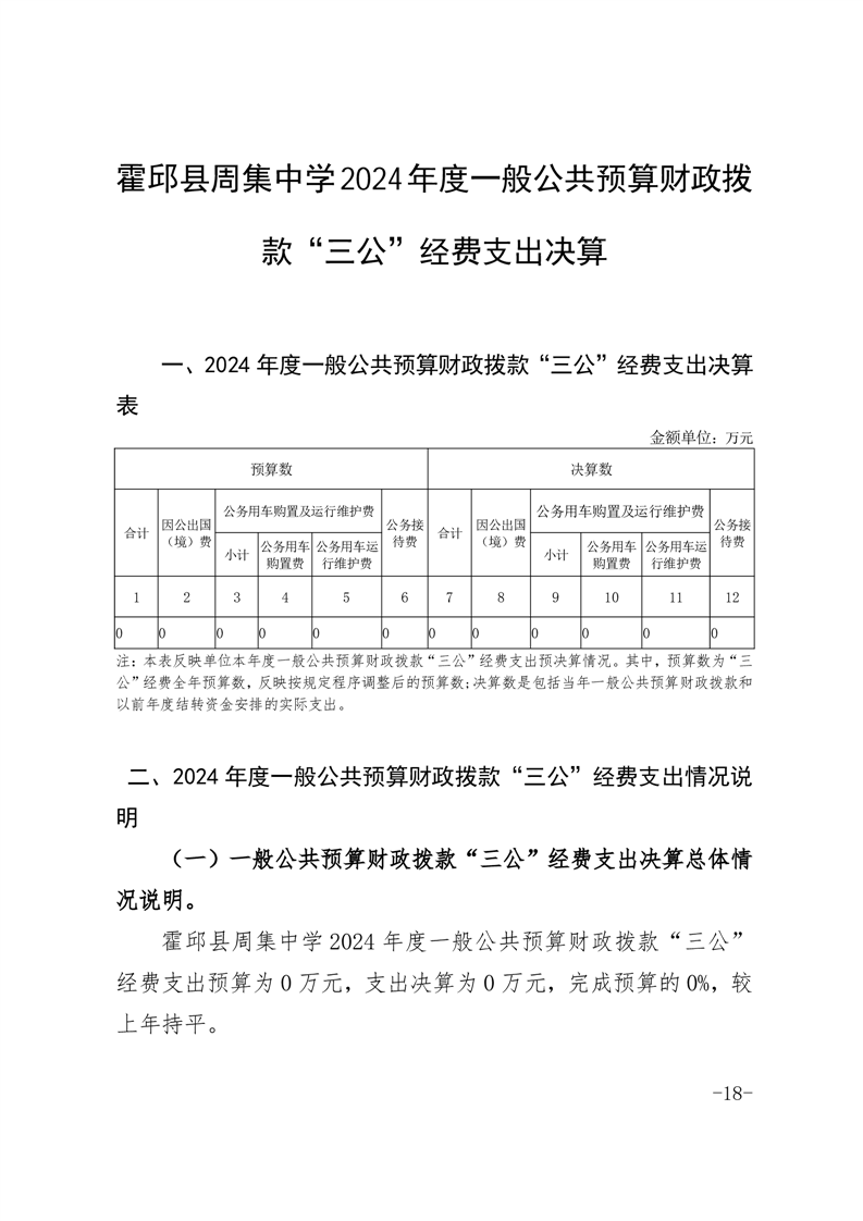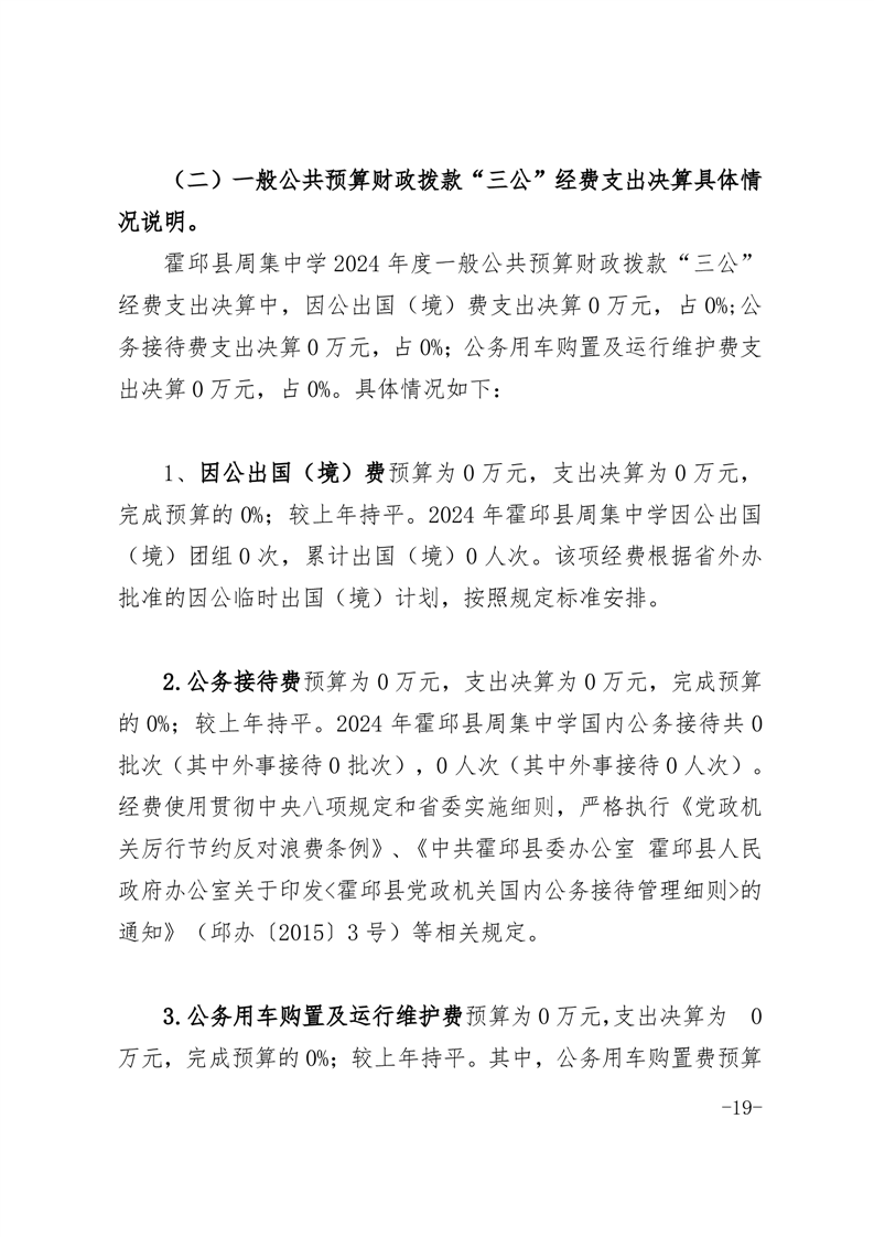霍邱县周集中学2024年度一般公共预算财政拨款“三公”经费支出决算