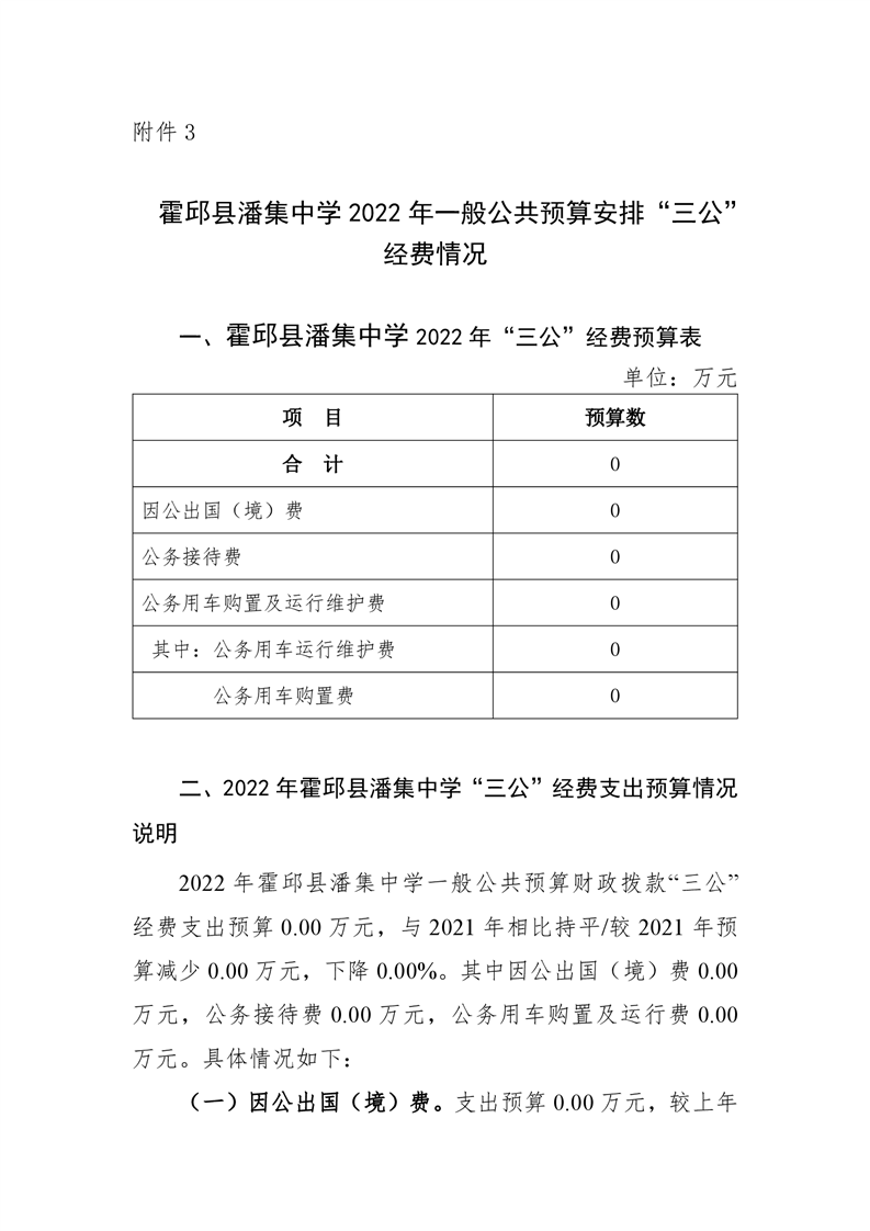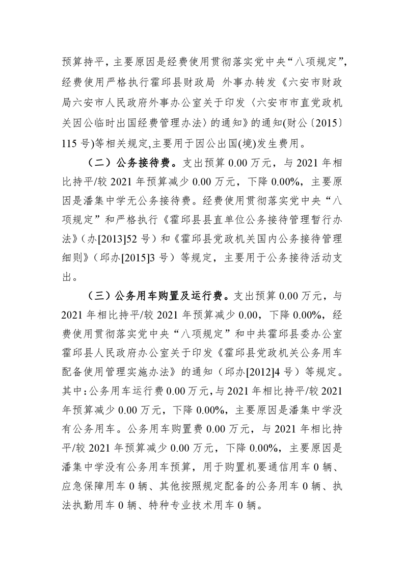 霍邱县潘集中学2022年部门单位一般公共预算安排“三公”经费情况公开