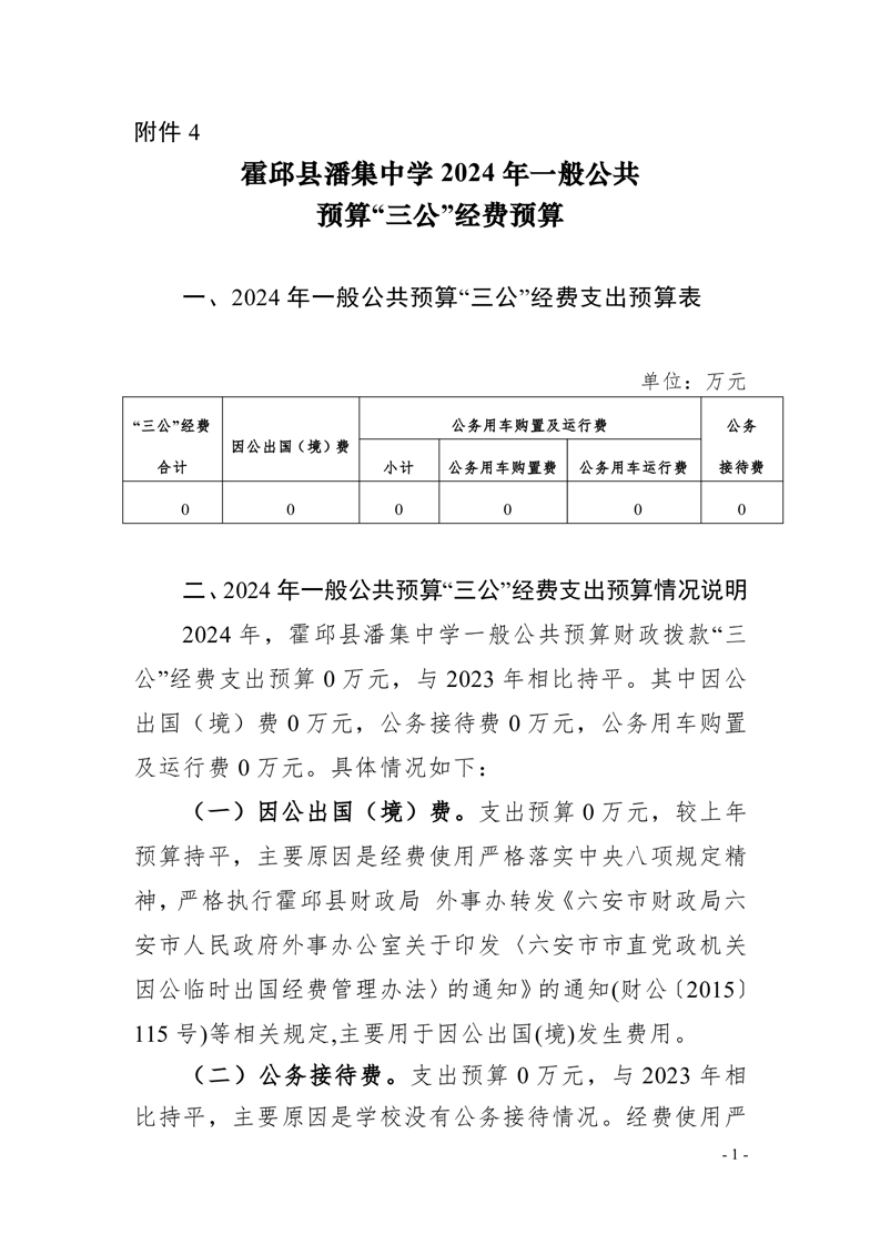 霍邱县潘集中学2024年三公经费预算公开
