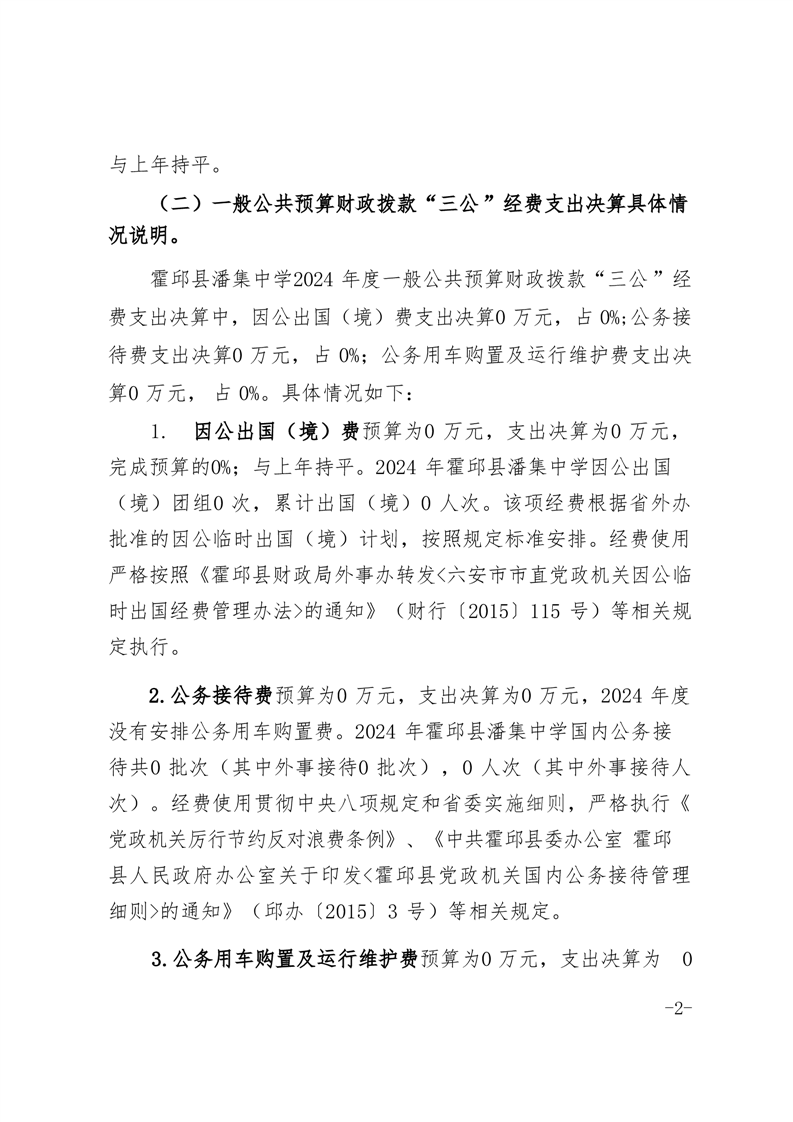 霍邱县潘集中学2024 年度一般公共预算财政拨款“三公”经费支出决算