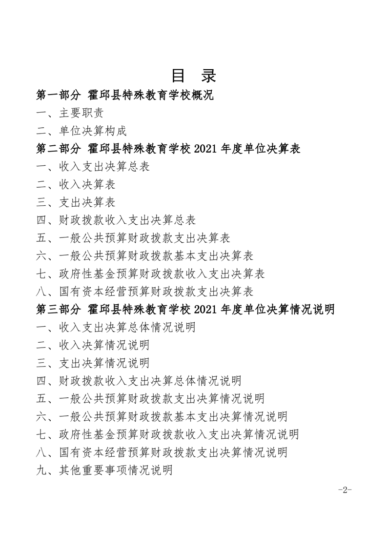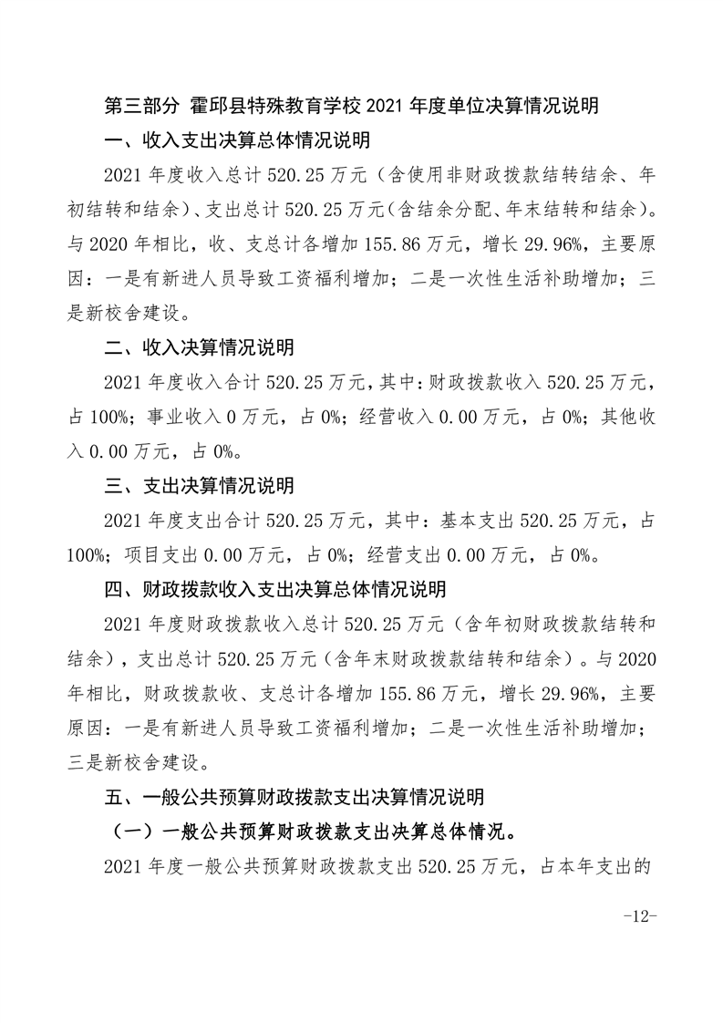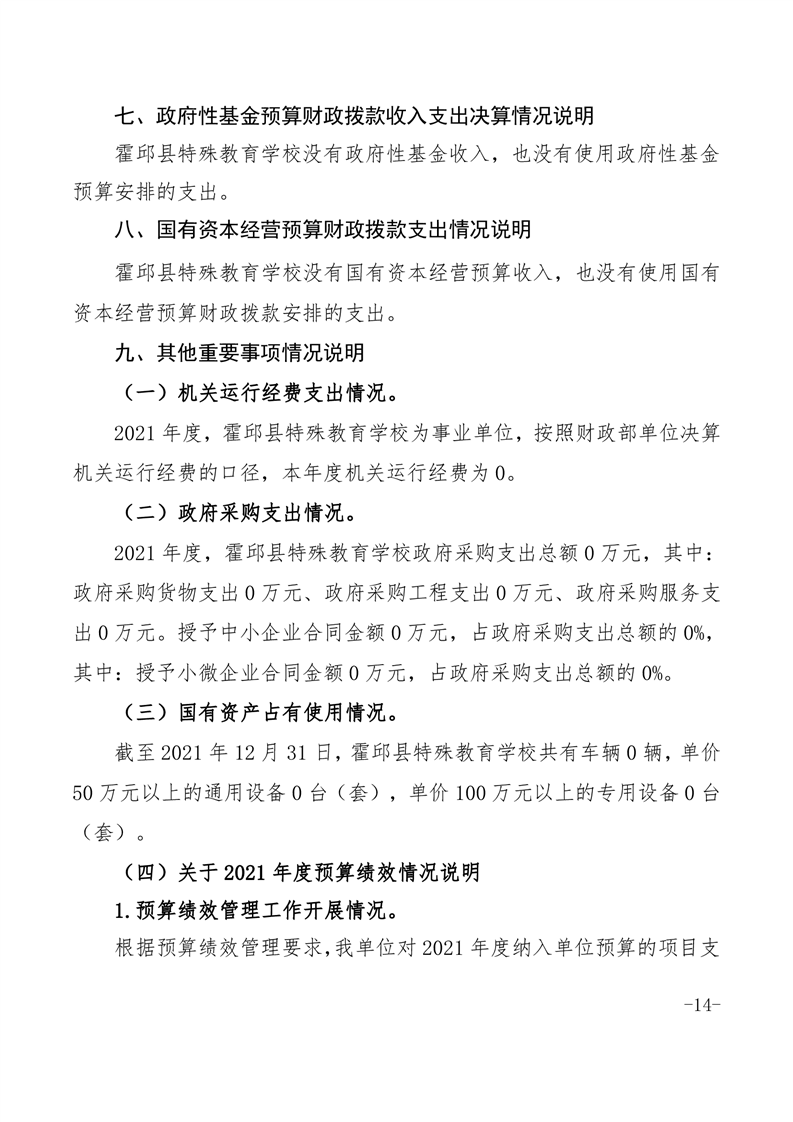 霍邱县特殊教育学校2021年度单位决算