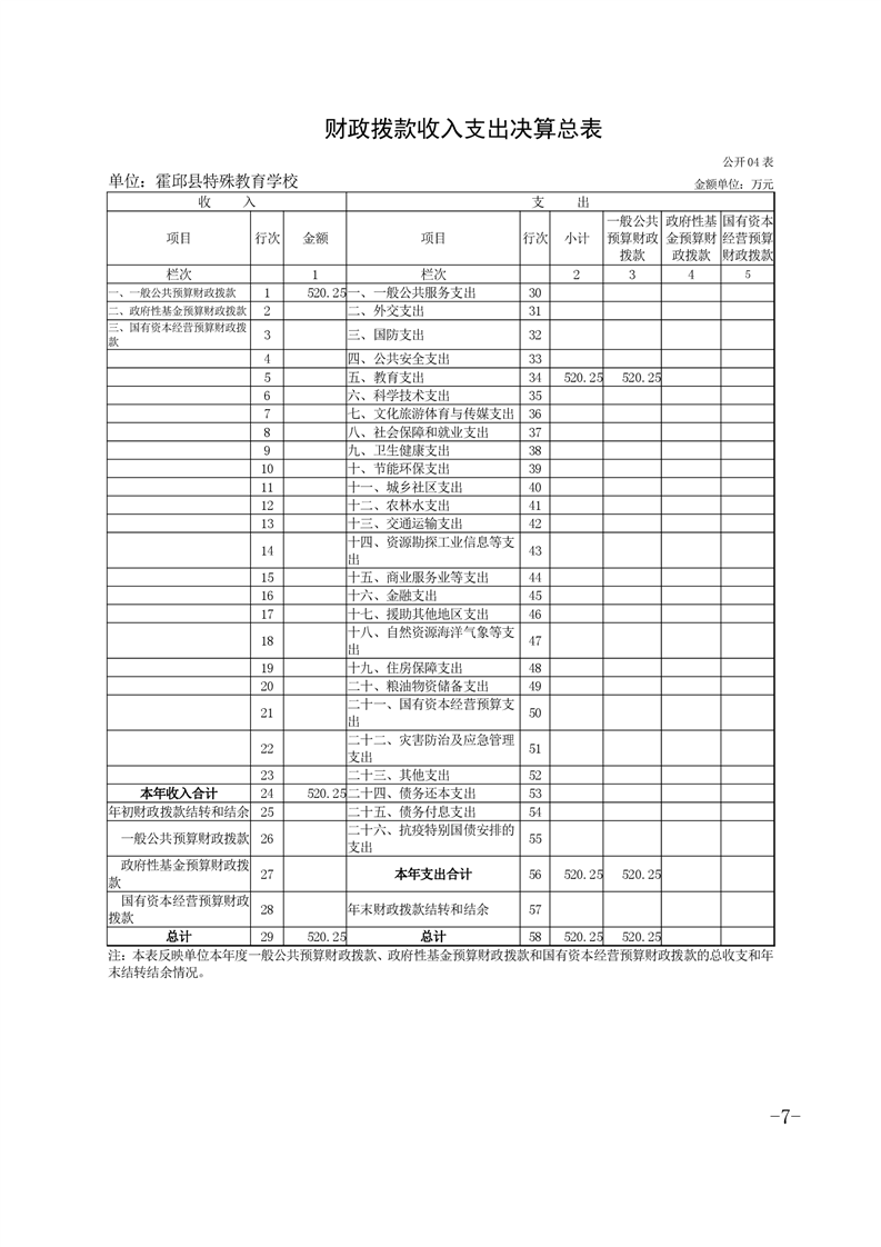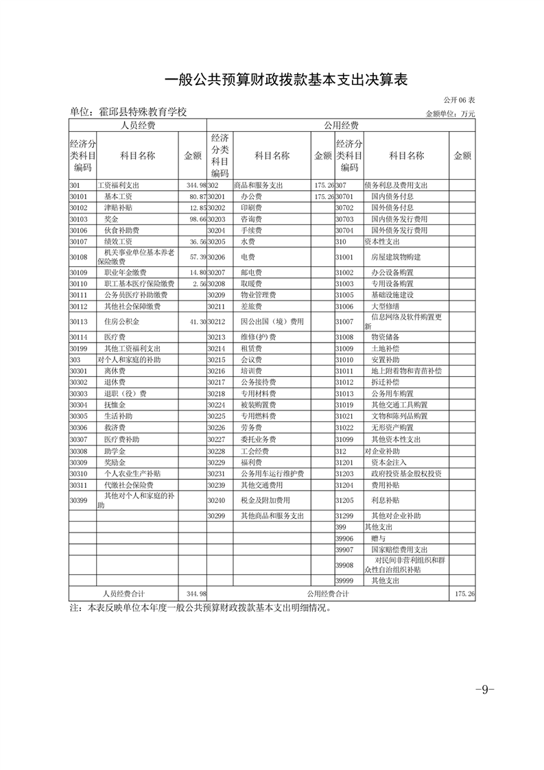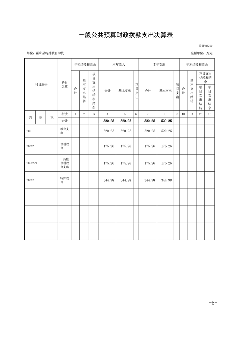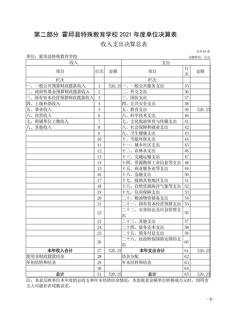 霍邱县特殊教育学校2021年度单位决算