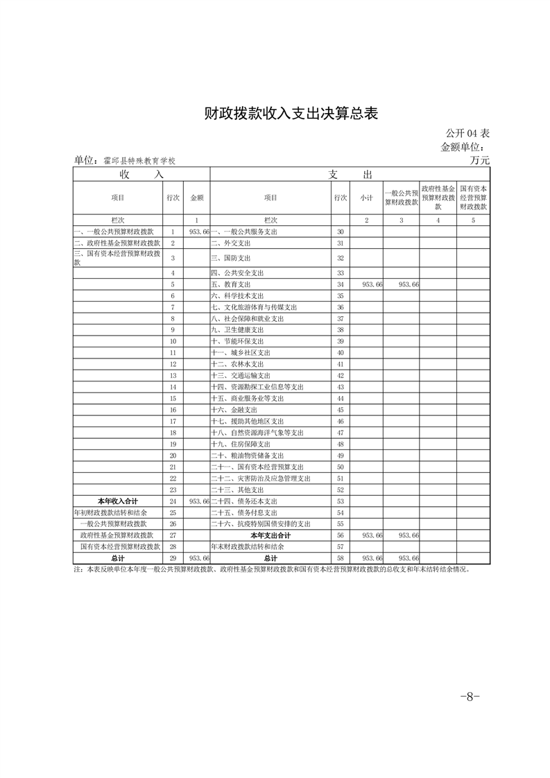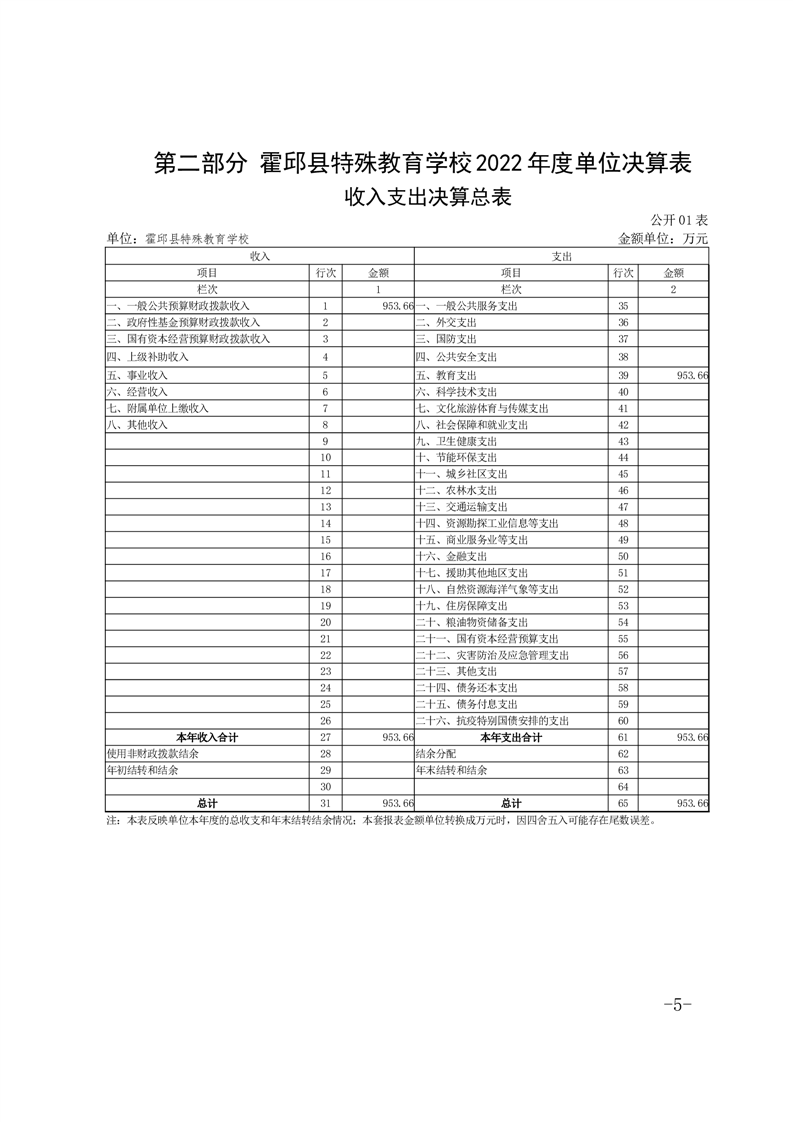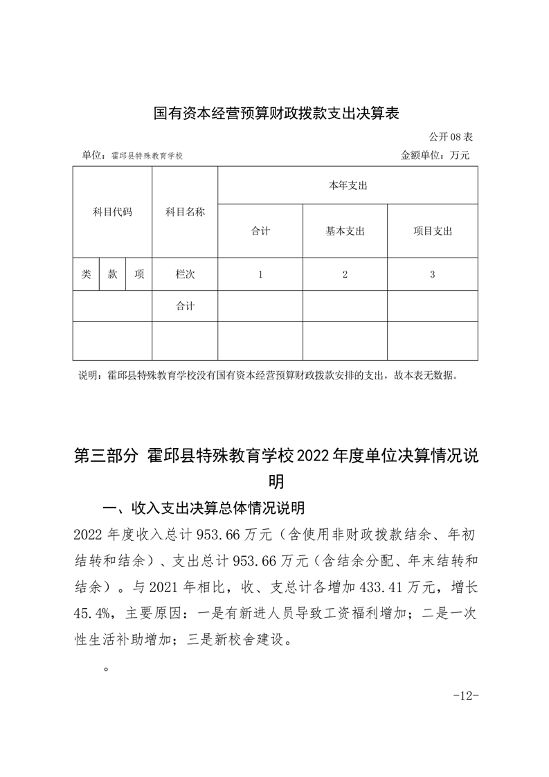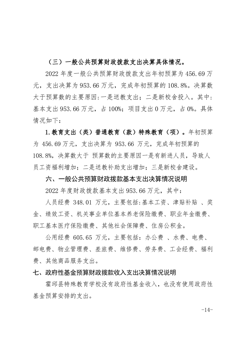 霍邱县特殊教育学校 2022 年度单位决算