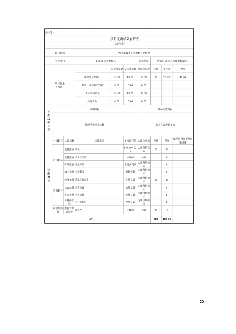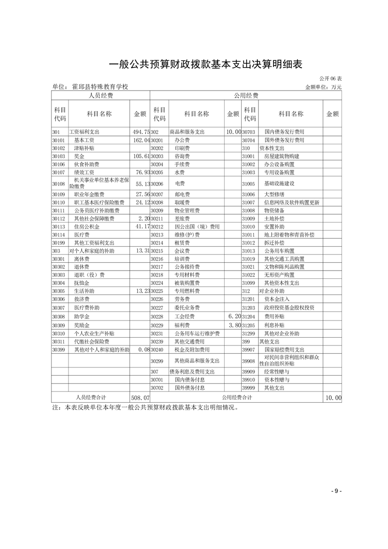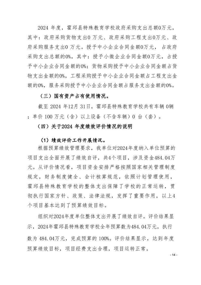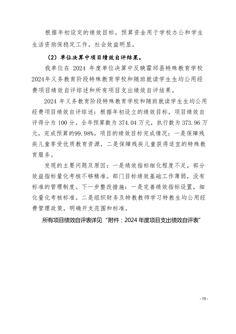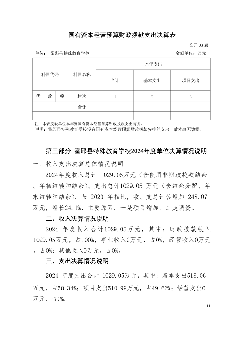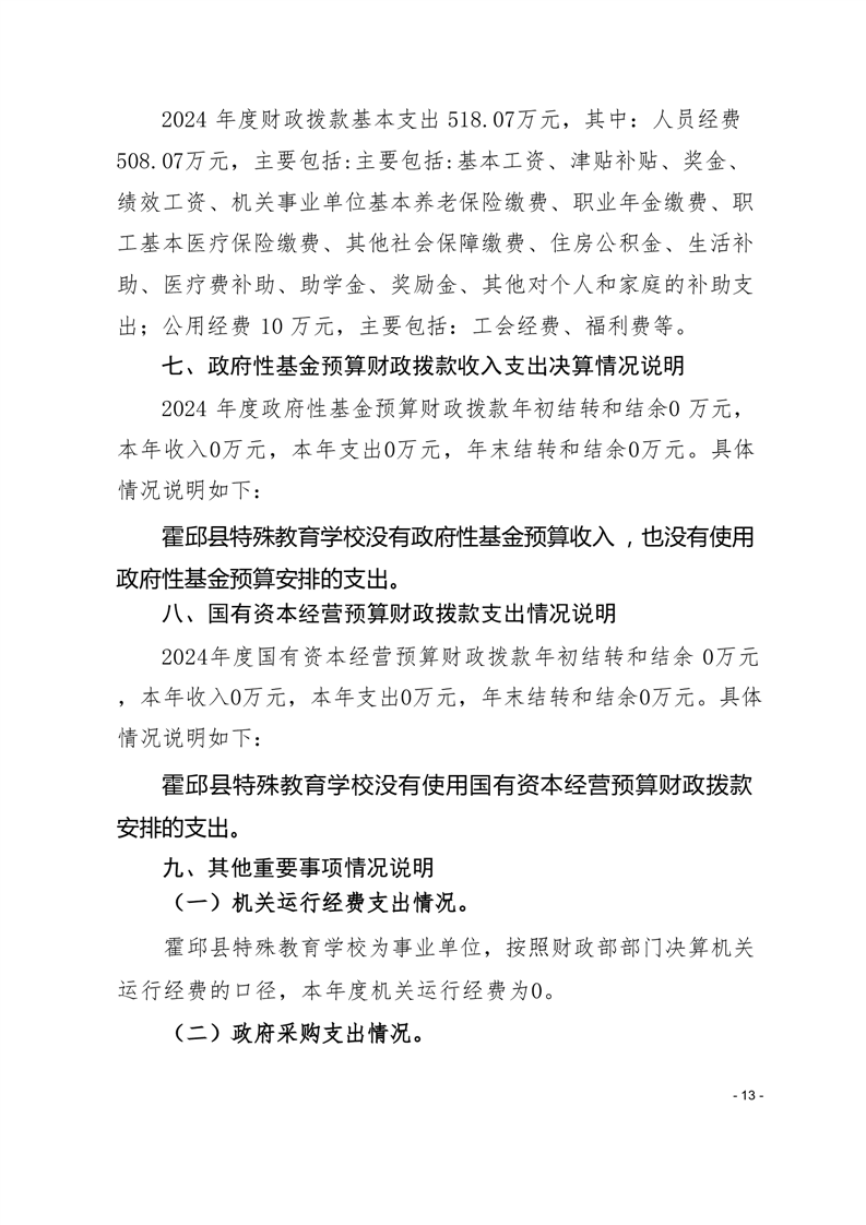 霍邱县特殊教育学校 2024 年度单位决算