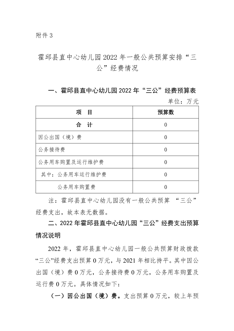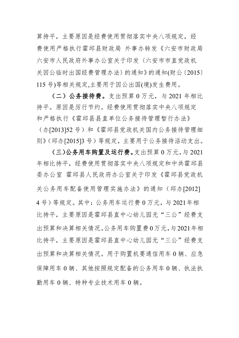 霍邱县直中心幼儿园2022年部门“三公”经费预算公开