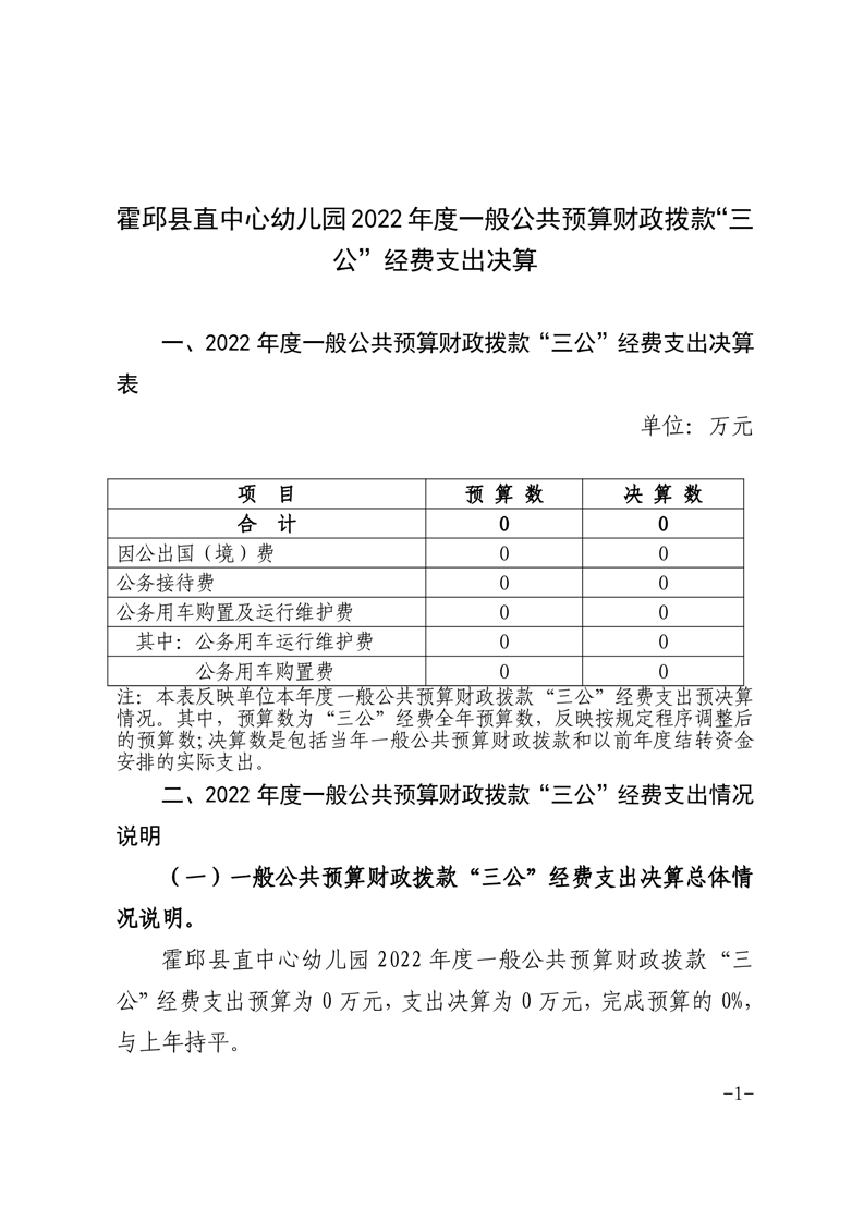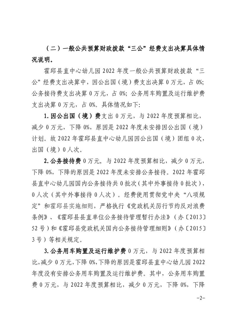霍邱县直中心幼儿园2022年度一般公共预算财政拨款“三