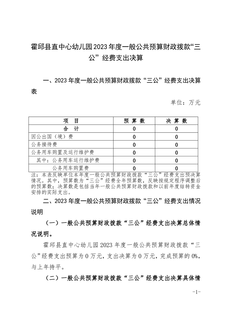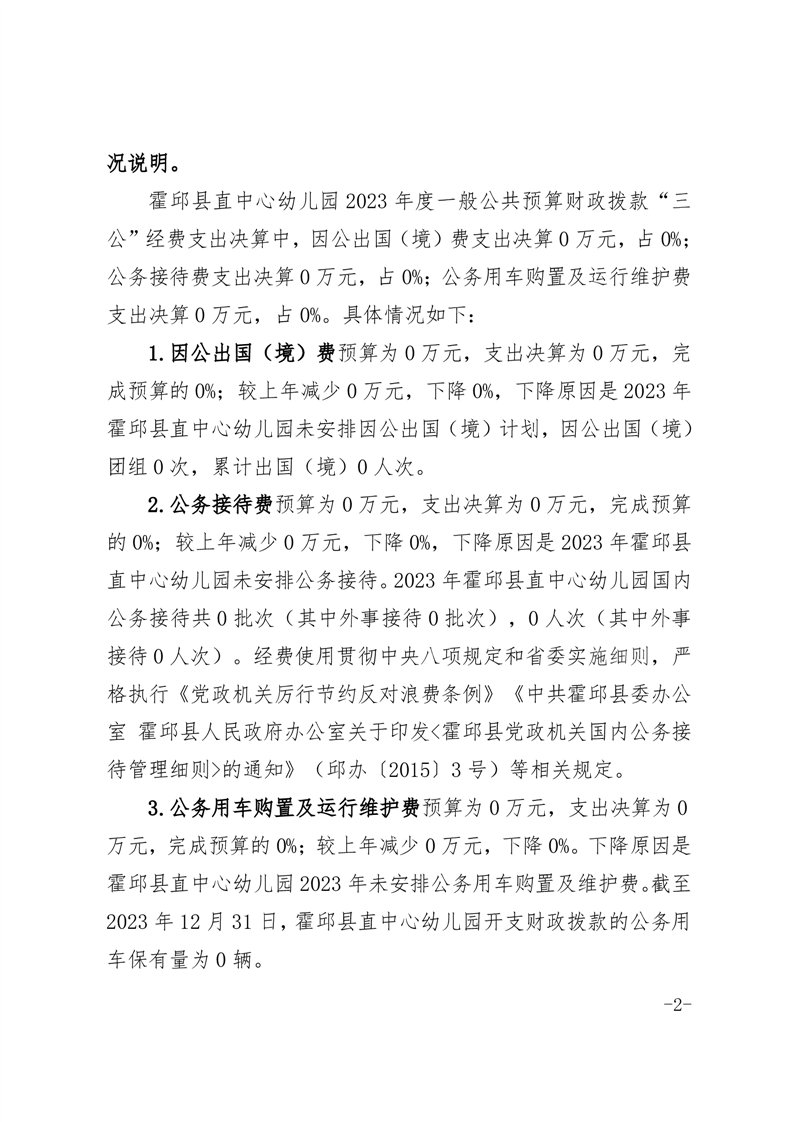霍邱县直中心幼儿园2023年度一般公共预算财政拨款“三公” 经费支出决算