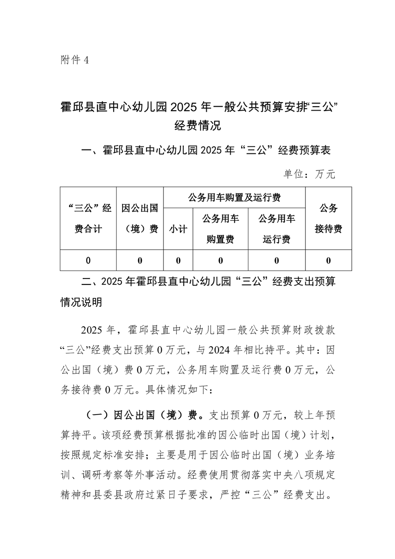 霍邱县直中心幼儿园 2025 年一般公共预算安排“三公”经费情况